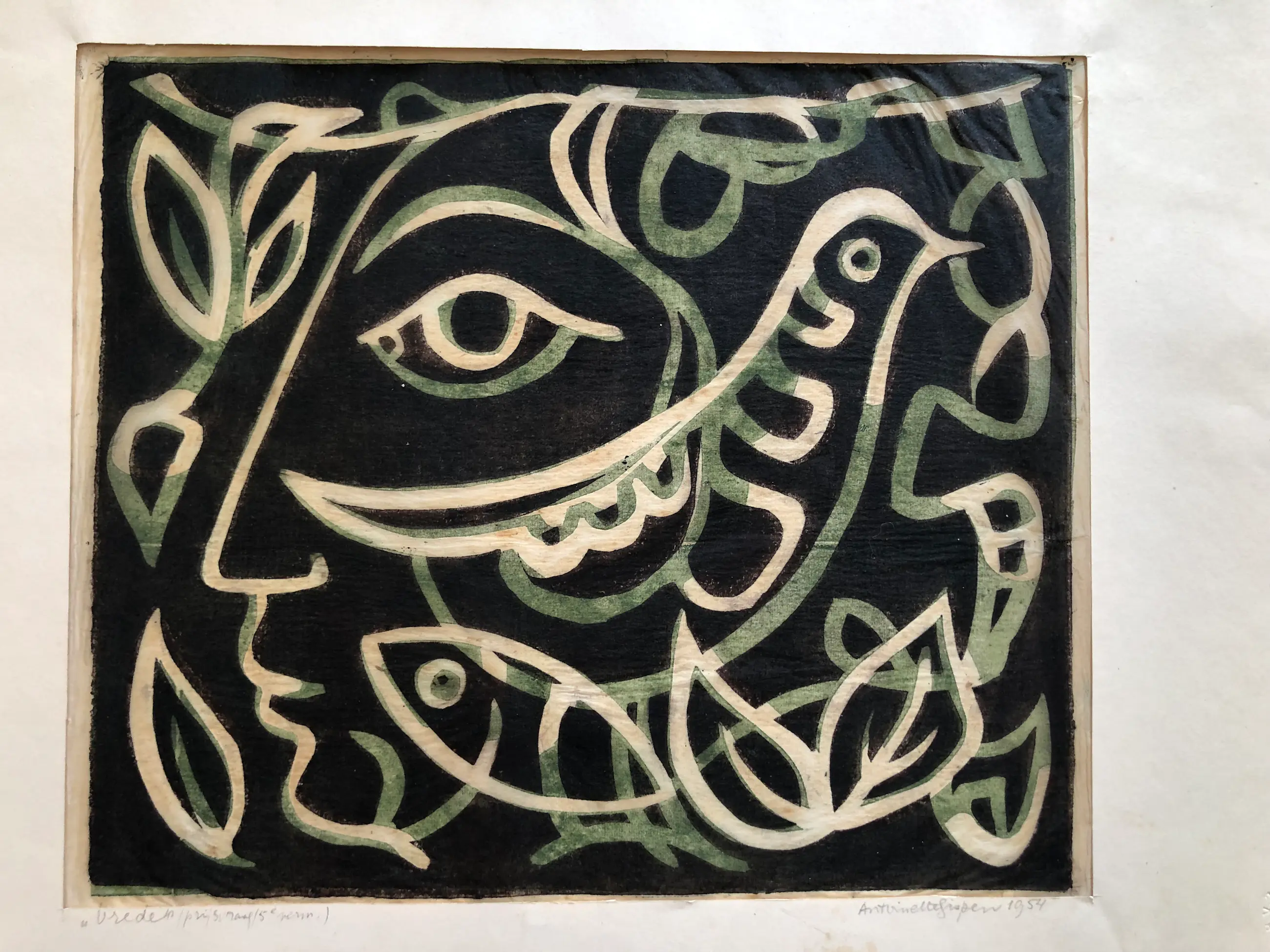 Niet bieden! Deze is per ongeluk aangeboden, maar niet meer in voorraad! Excuses! Bijzonder kleurrijk werk. Dochter van de beroemde meubelontwerper. U kunt het naar eigen smaak inlijsten.