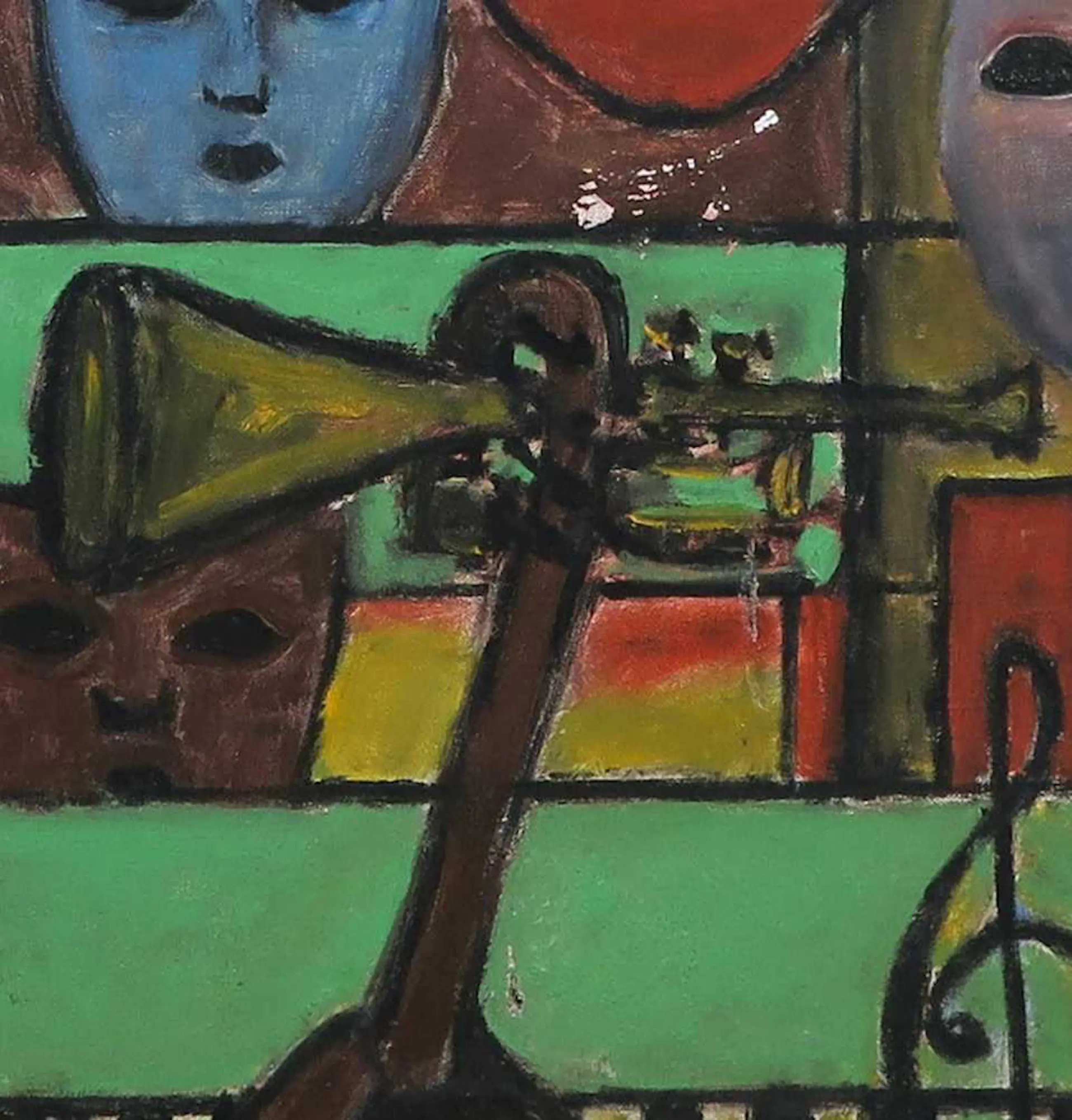 | Het werk heeft verfschade op meerdere plekken en enkele scheurtjes/gaatjes in het doek. | |