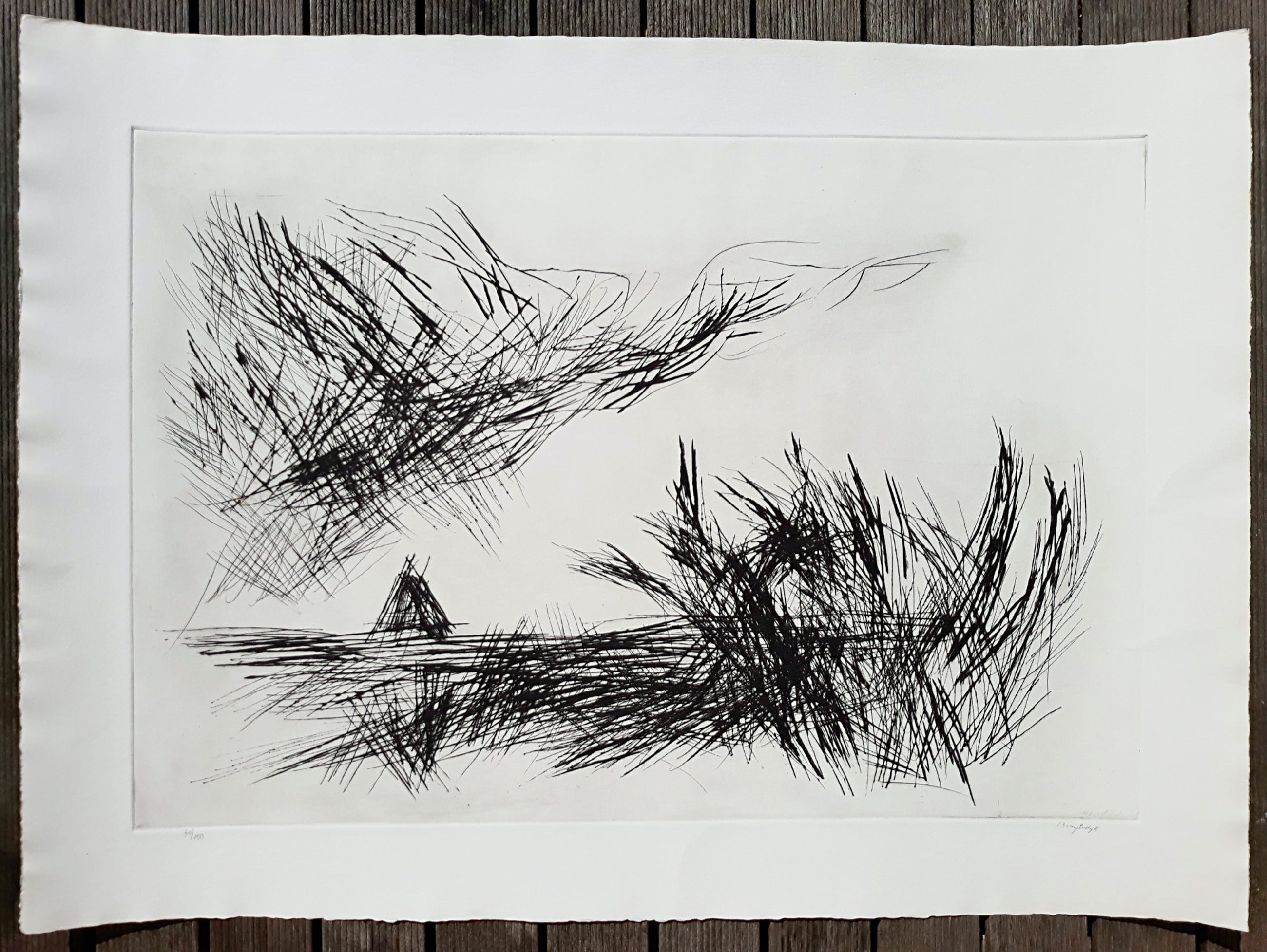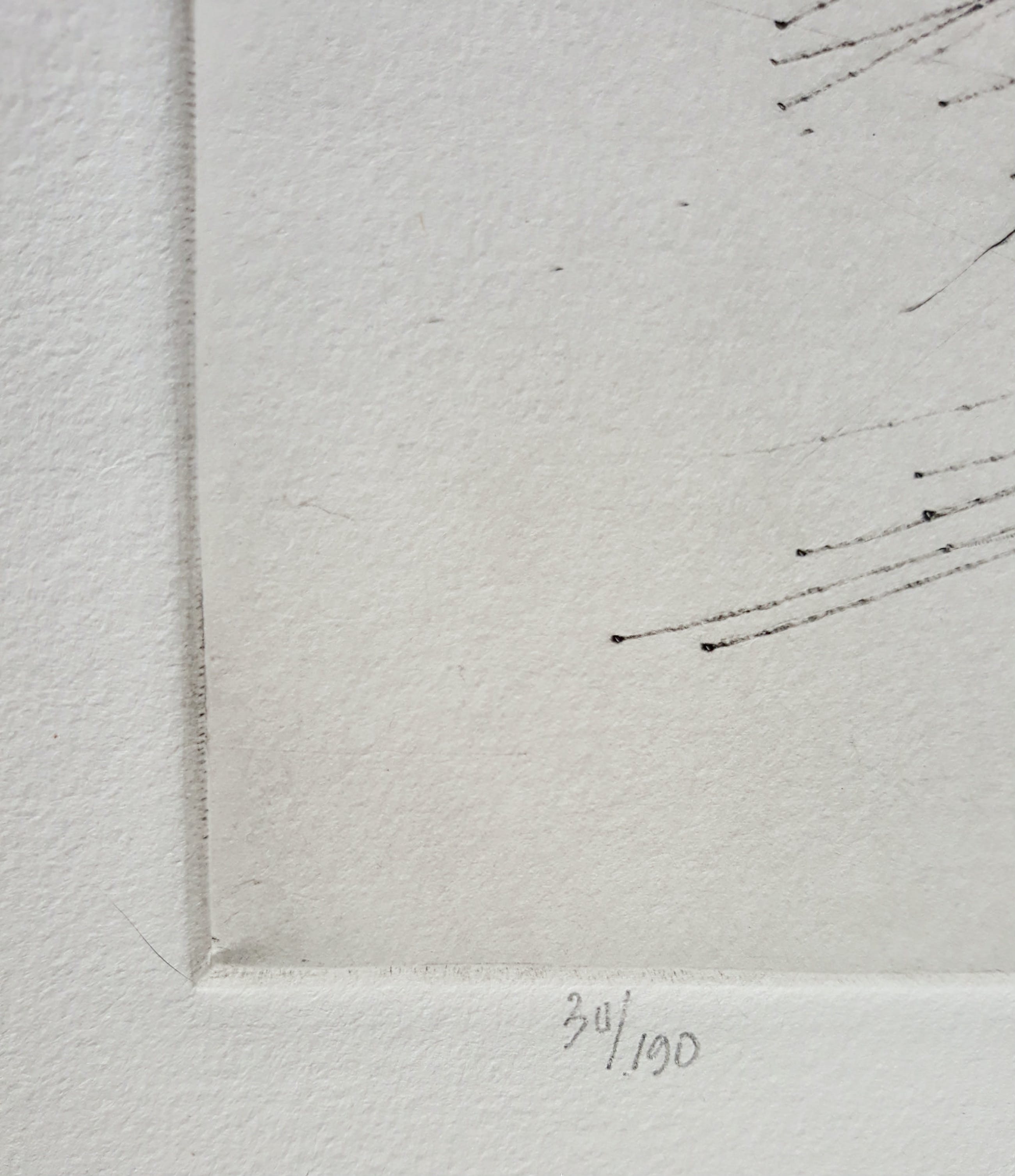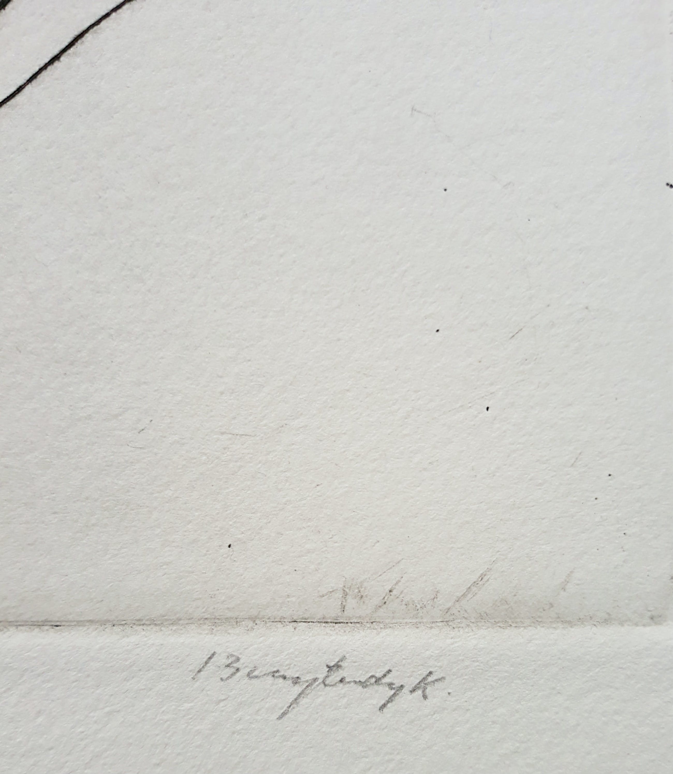 Krachtig werk van Anton Buytendijk, uitgegeven door Prent 190. Droge naald ets op geschept papier, met potlood gesigneerd en genummerd (30/190). In zeer goede conditie.