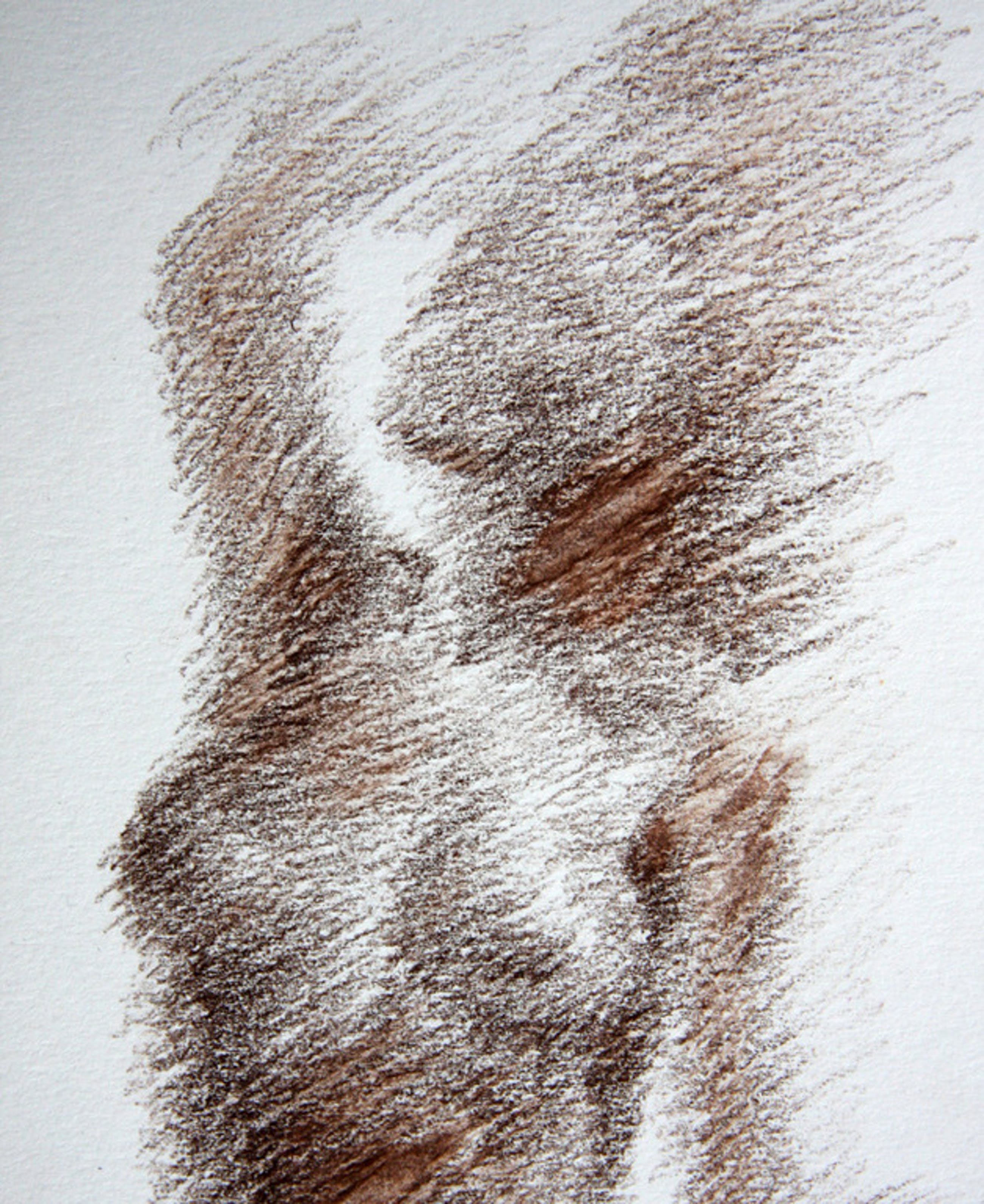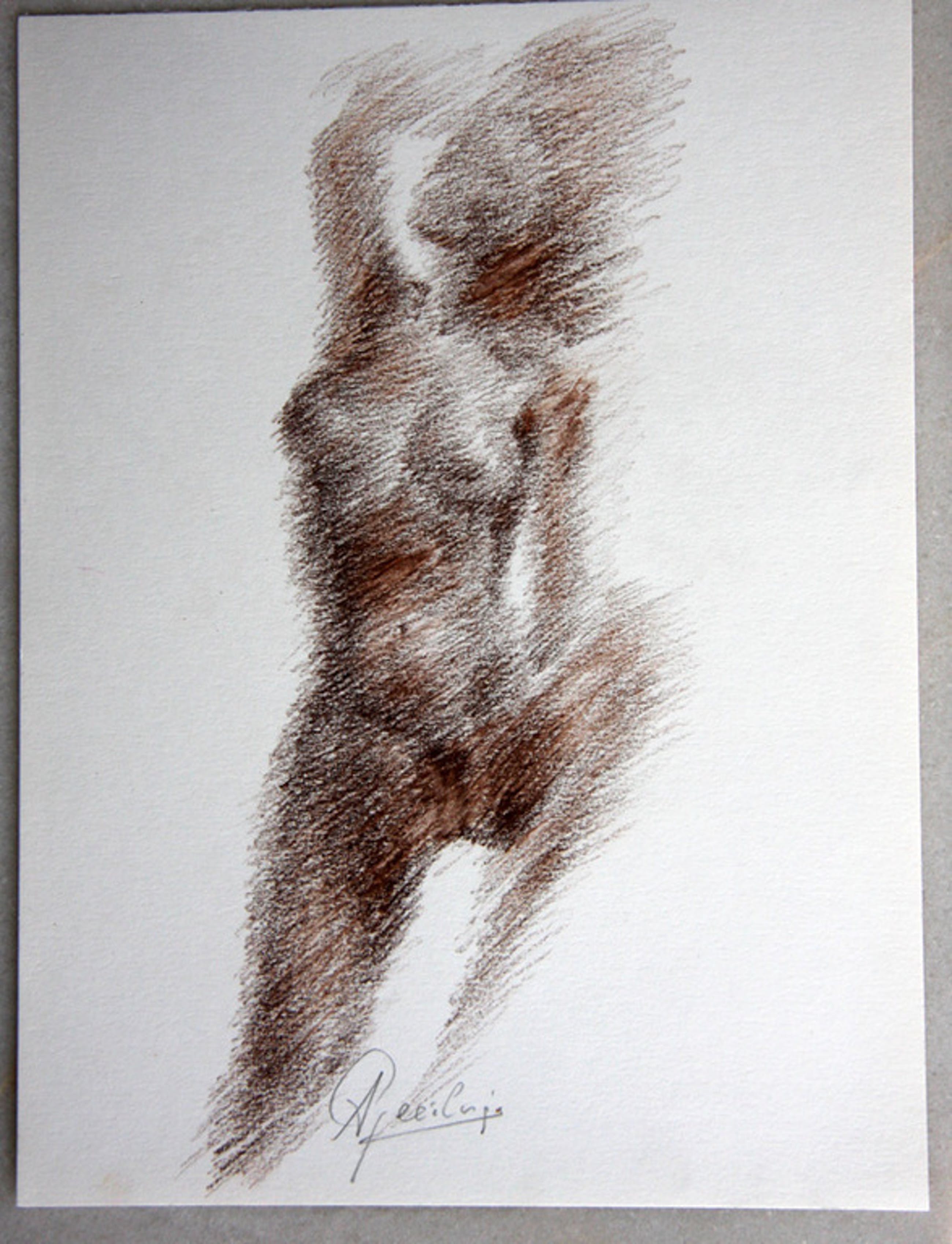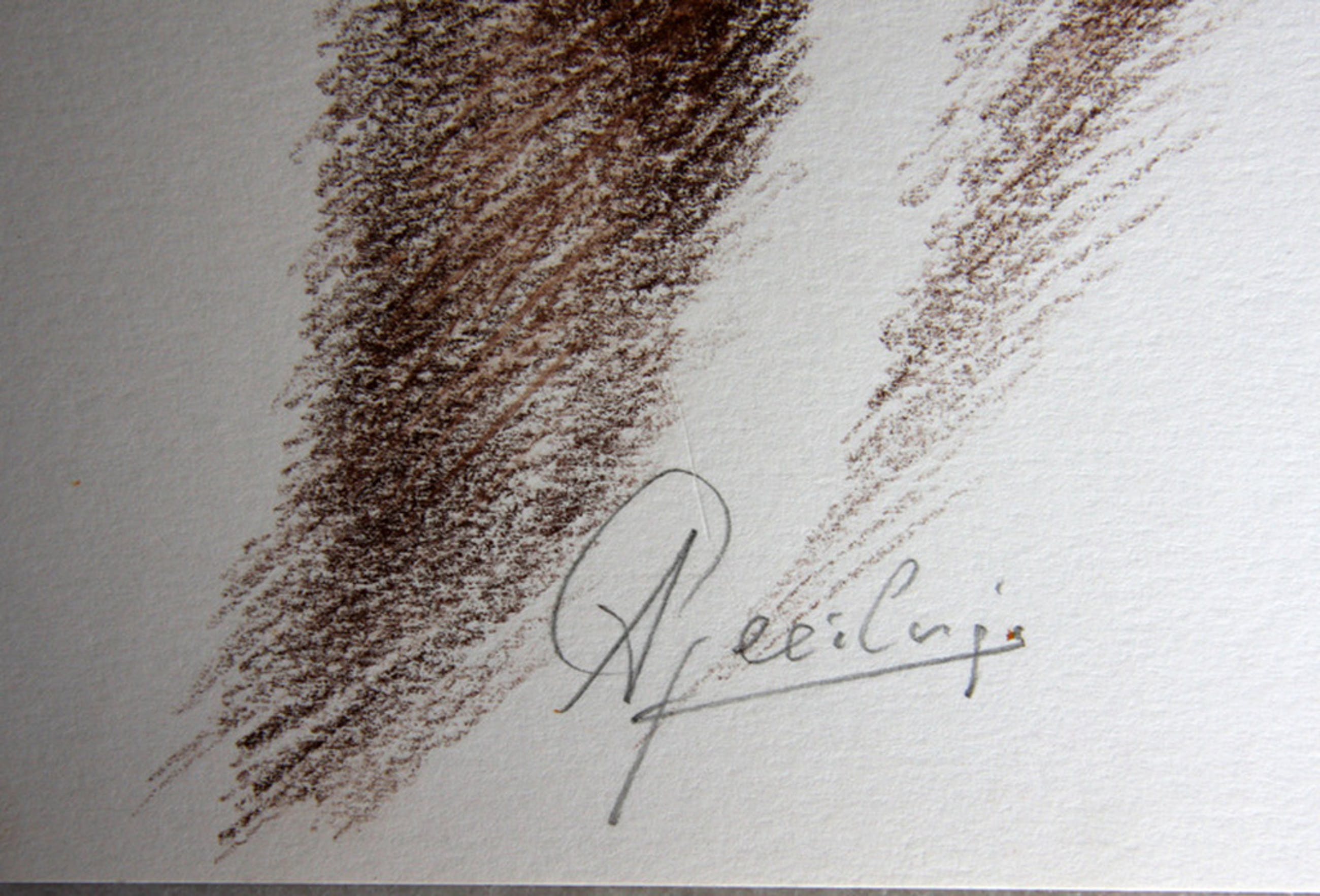 Origineel kunstwerk van Anton Geerlings, gemengde techniek in bruin pastel.