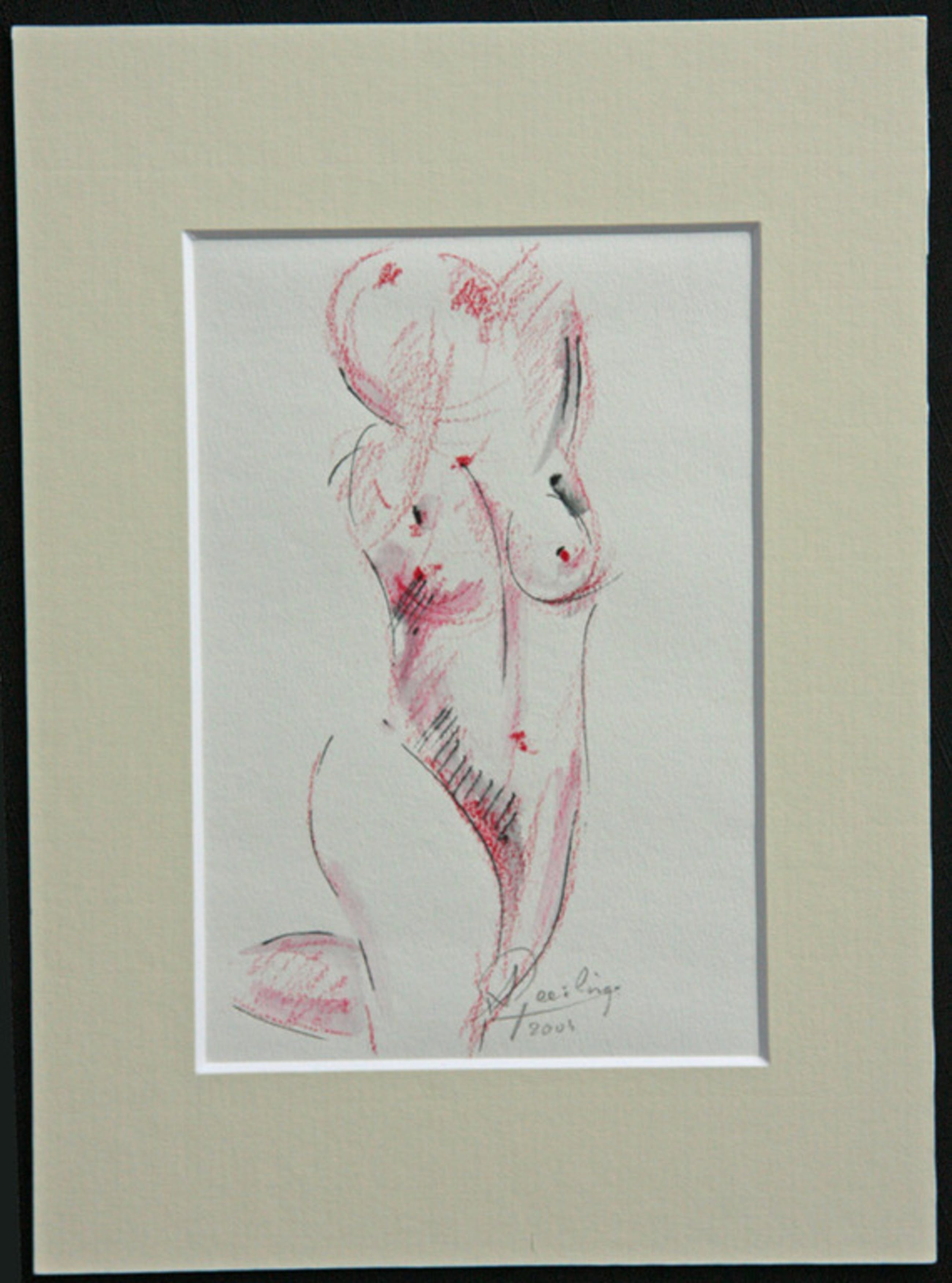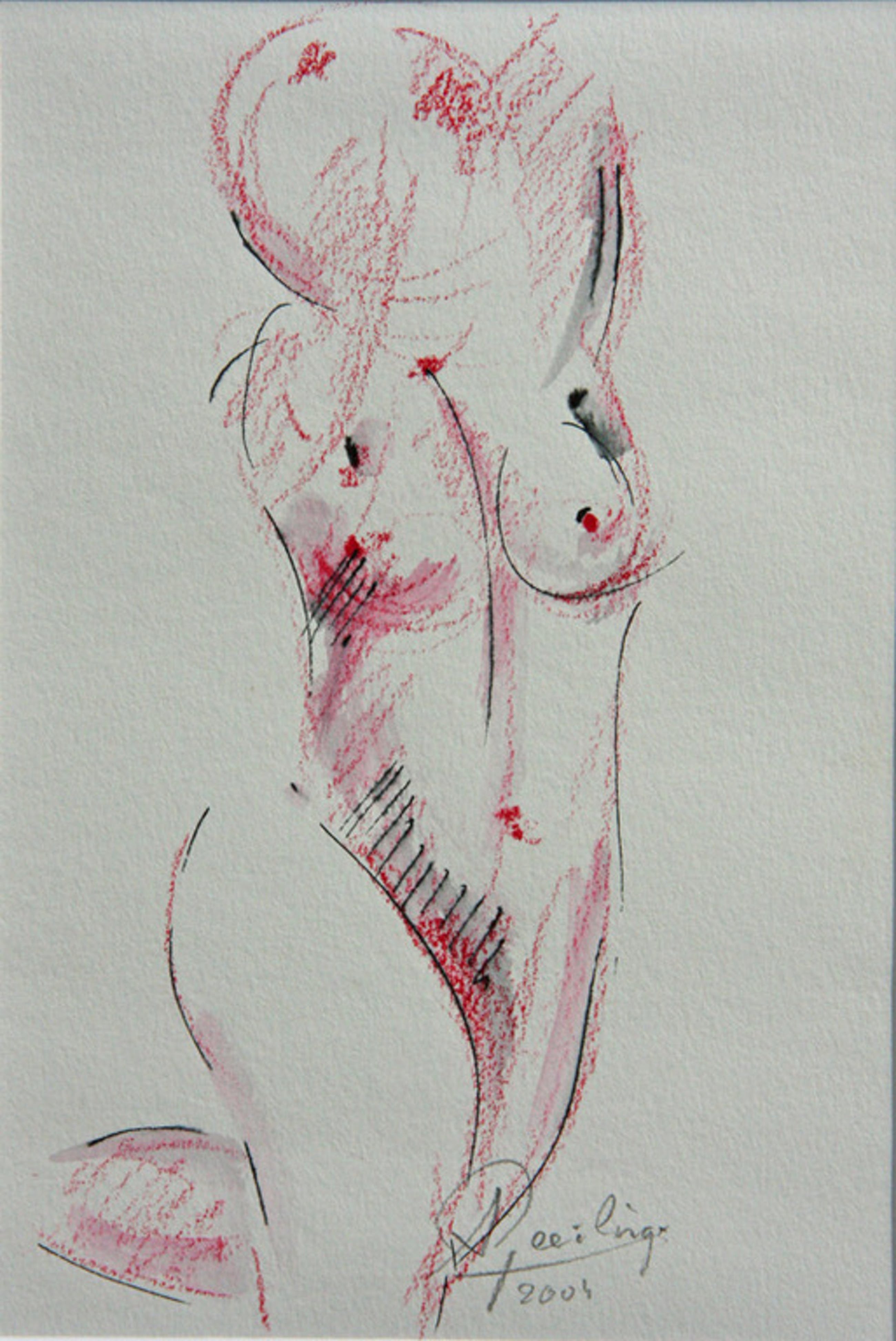 Origineel kunstwerkje van Geerlings uit 2004, in cremewitte passe partout afm. 26 x 19 cm, beeld 17 x 11,5 cm. Rechtsonder gesigneerd.