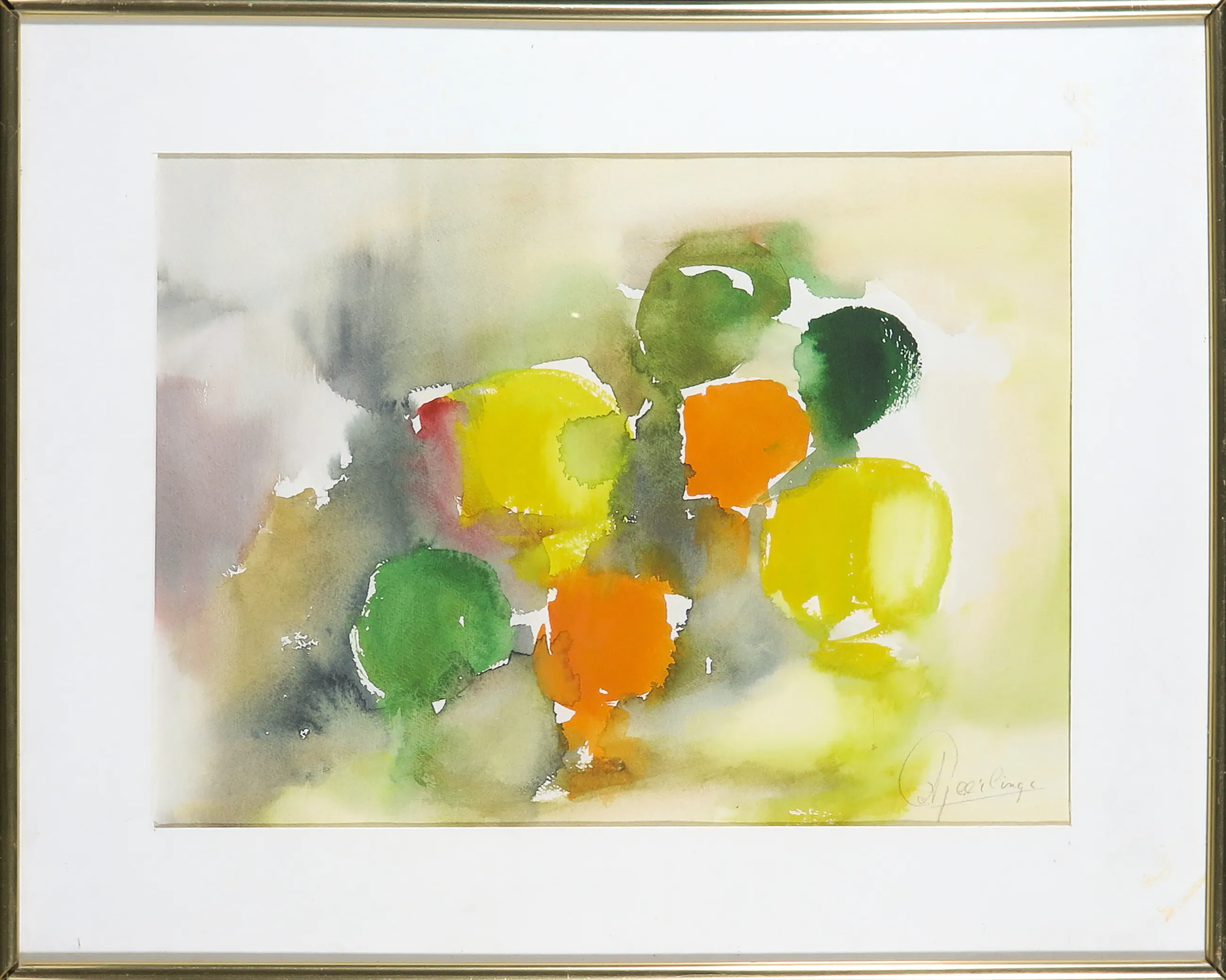 | De aquarel is in goede staat. Passe-partout is vlekkerig en aan vervanging toe.De lijst is aan vervanging toe. | |