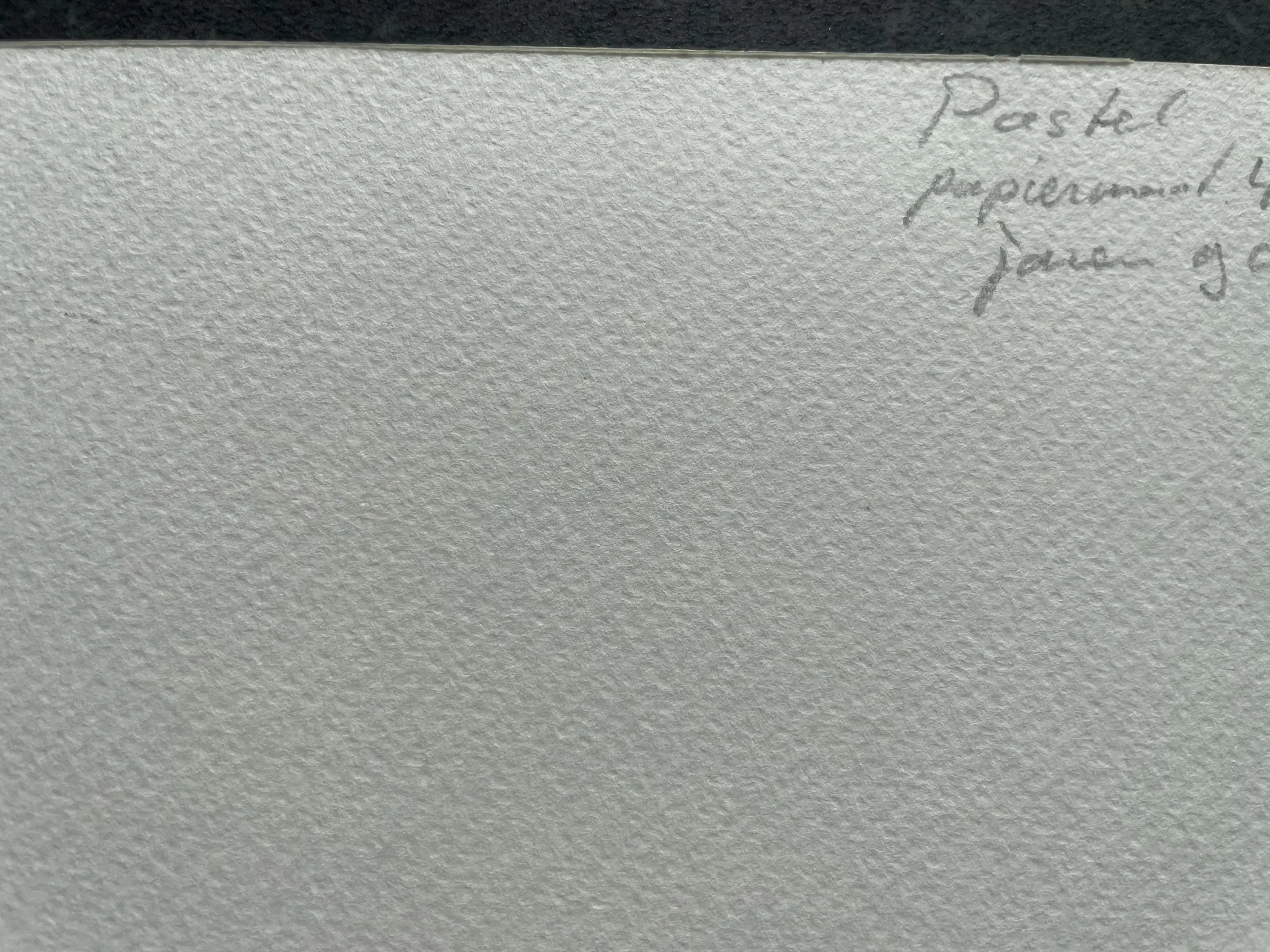 • Techniek: gemengde techniek (bijv. pastel en aquarel) op papier.
