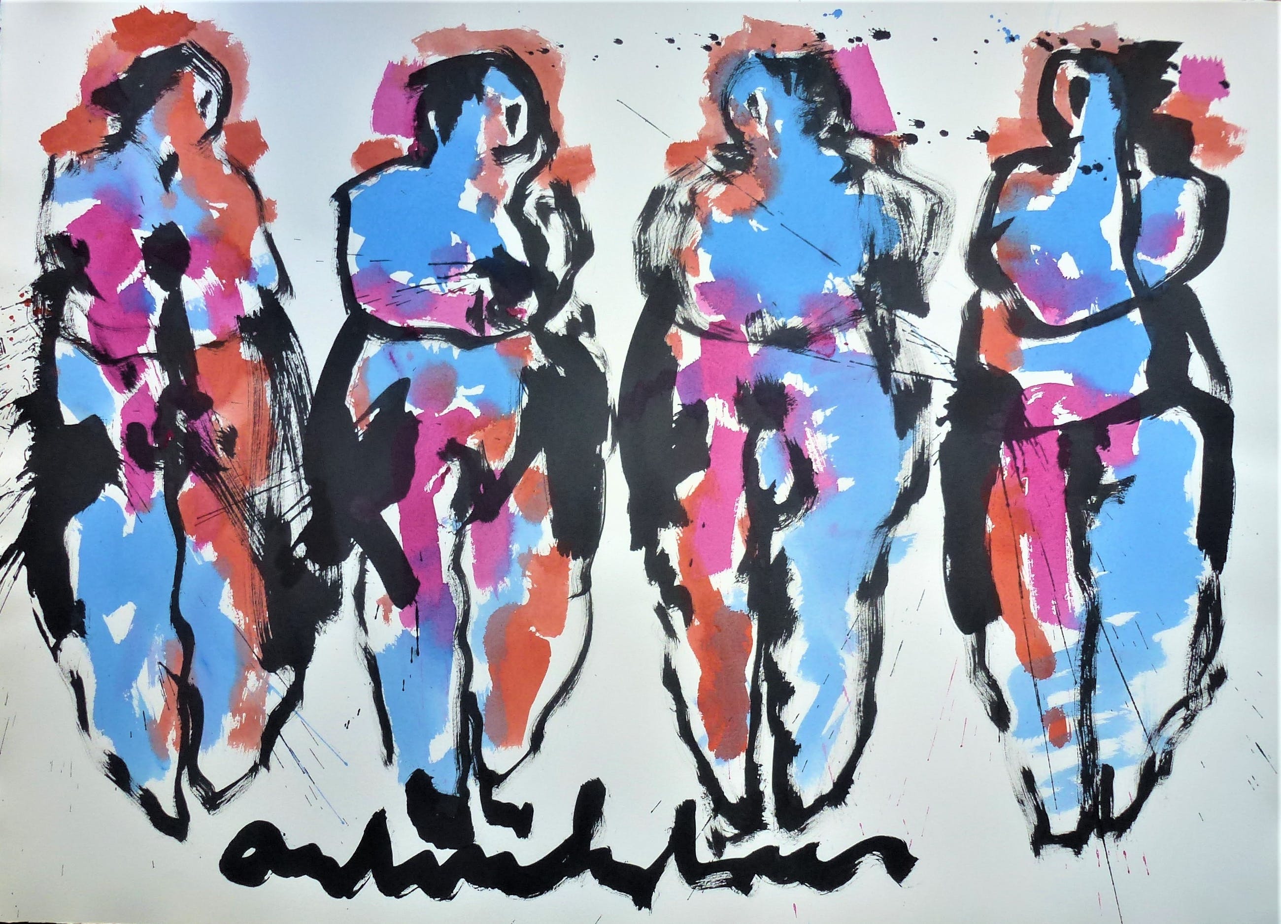 Geschilderd door Anton Heyboer in 1988 met acrylverf op Hahnemühle papier . Afmetingen : 78 cm x 108 cm . Vpprstelling : 4 vrouwen . Conditie : Zo goed als nieuw . Herkomst : Gekocht in 1988 van Anton Heyboer . Wordt aangetekend verzonden .