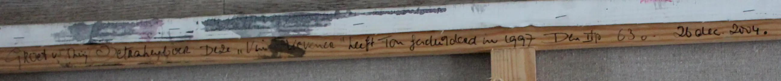 Lijsten: Beschadigingen aan lijsten worden niet beschreven. Indien een werk achter glas is ingelijsten het glas is kapot, zal dit wel vermeld worden. Bij foto's van ingelijste werken kan spiegeling zichtbaar zijn.