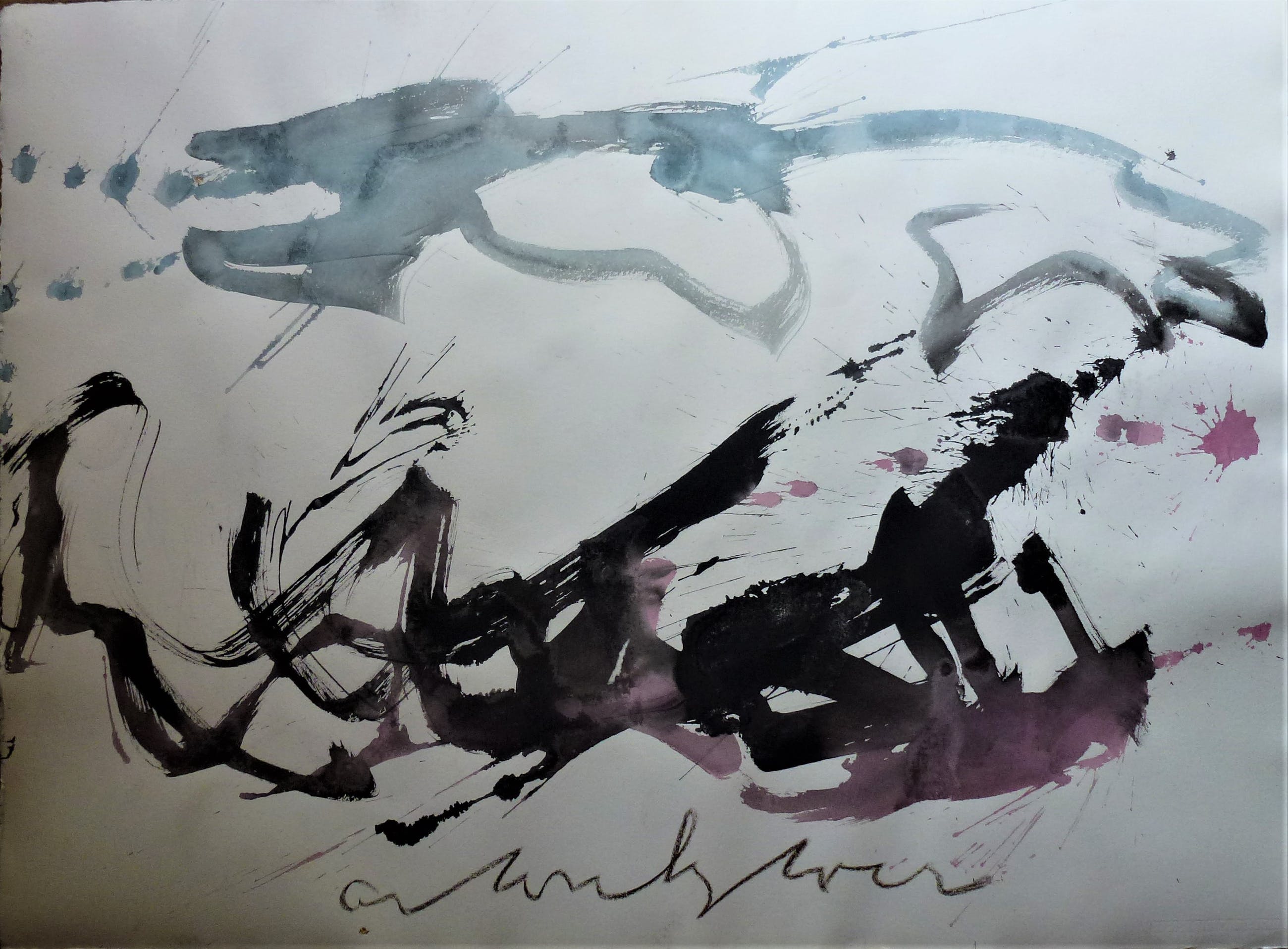 Geschilderd door Anton Heyboer in 1988 met acrylverf en oostindische inkt op Hahnemuhle papier . Afmetingen : 78 cm x 108 cm . Voorstelling : Abstracte compositie . Conditie : Zo goed als nieuw . Herkomst : Gekocht in 1988 van Anton Heyboer .