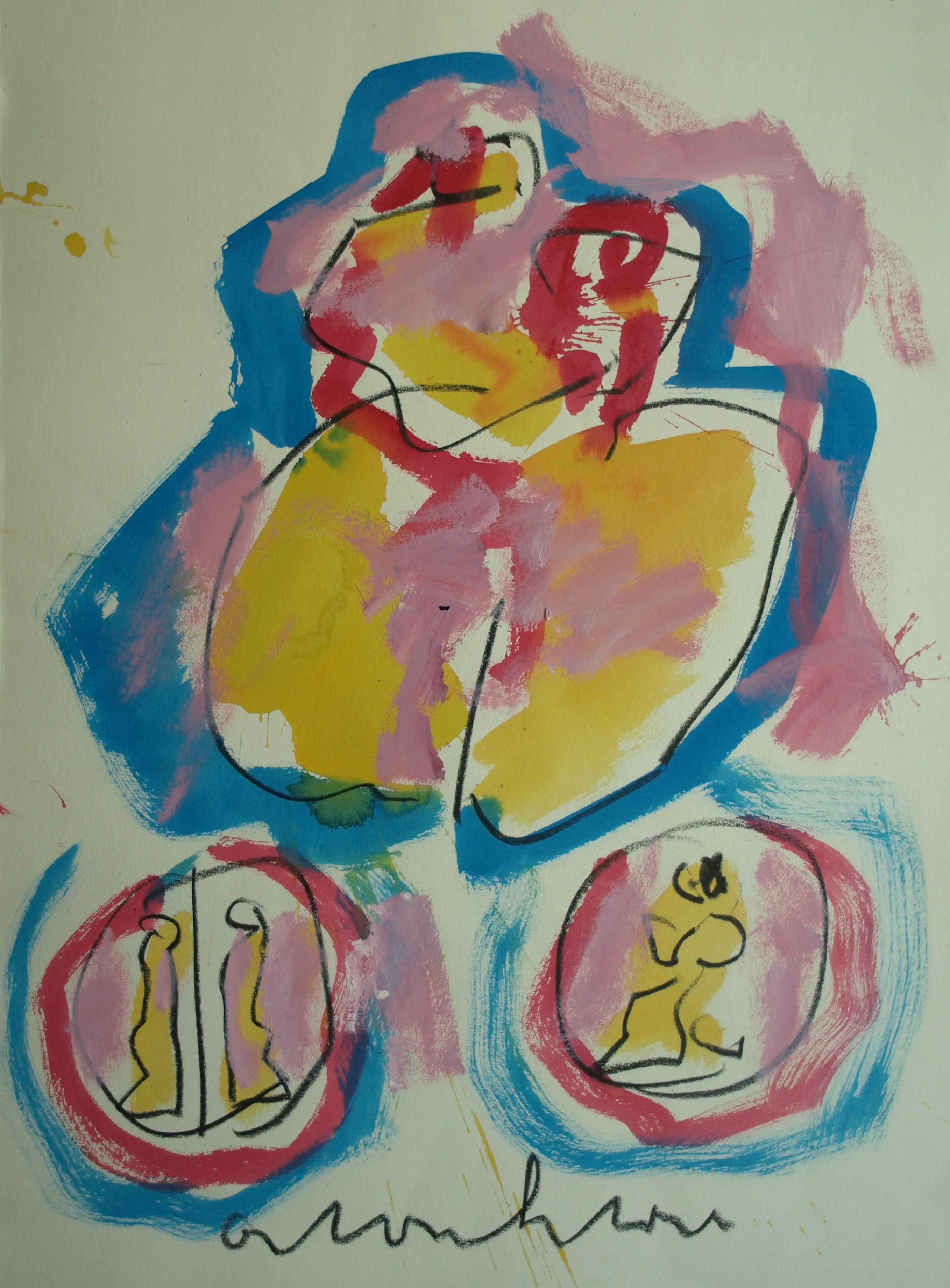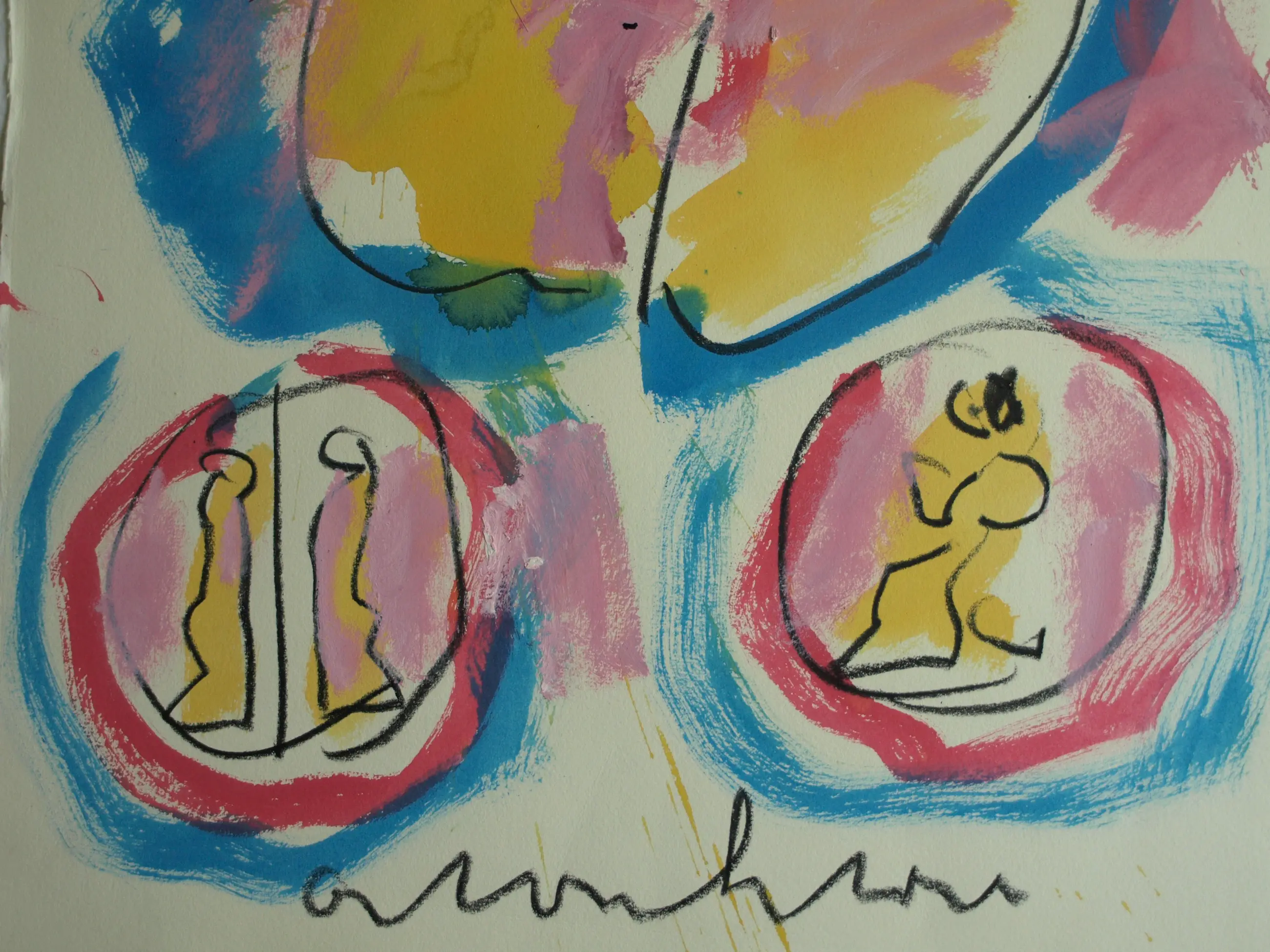 Een werk uit ca. 1985 van de Nederlandse kunstenaar Anton Heyboer (1924-2005). -Techniek: Acrylverf en pastelkrijt op Hahnemühle-papier. -Gesigneerd middenonder. -Niet ingelijst en ook nooit ingelijst geweest. -Afmetingen: Blad, 79 x 53½ cm. -Herkomst: Uit een nalatenschap. Het werk is destijds verkregen via de kunstenaar. -Conditie: In zeer goede staat. Zie ook de foto’s voor een eigen indruk.