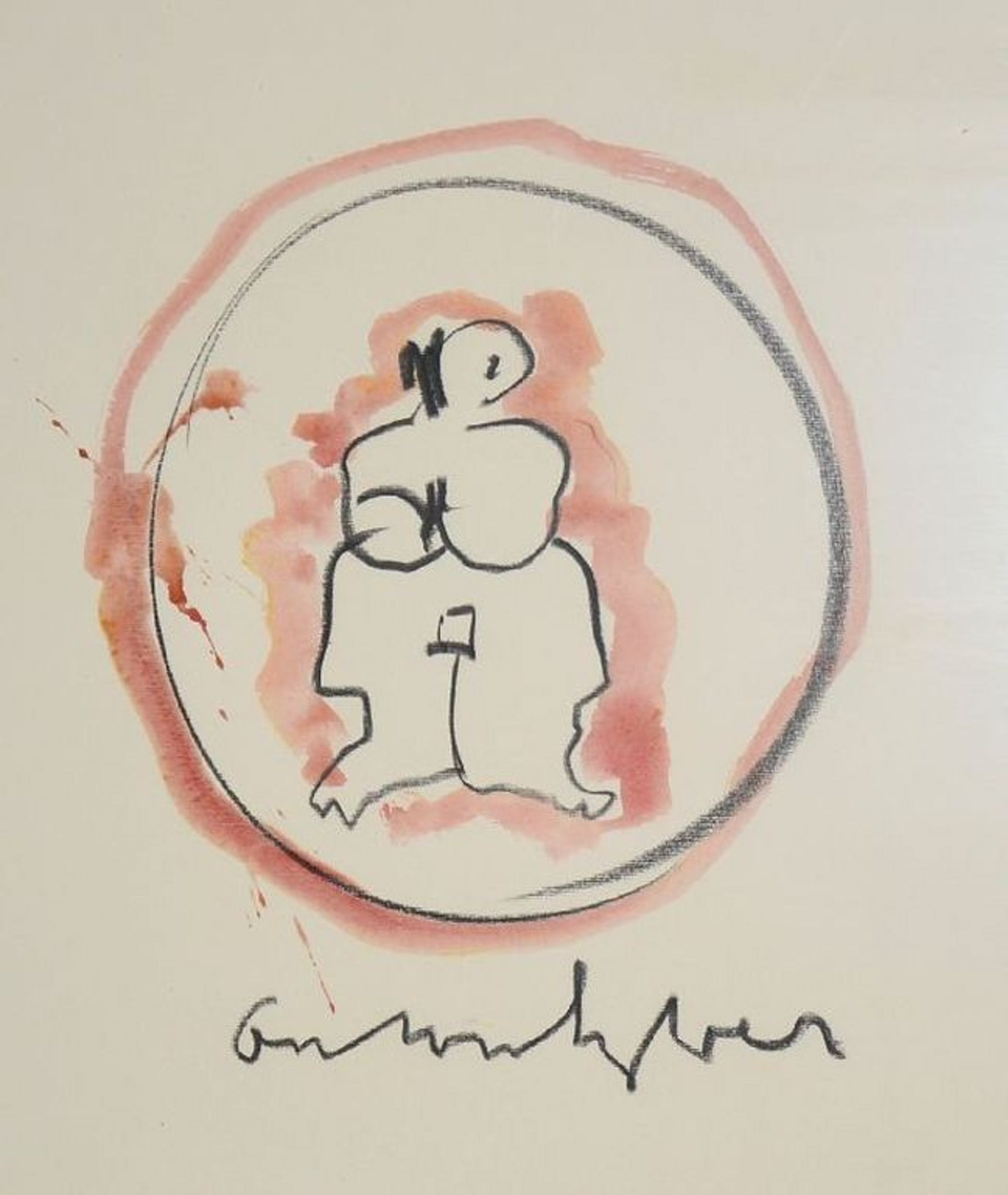 Originele aquarel / krijt tekening van Anton Heyboer. Ingelijst, kan direct aan de muur.
