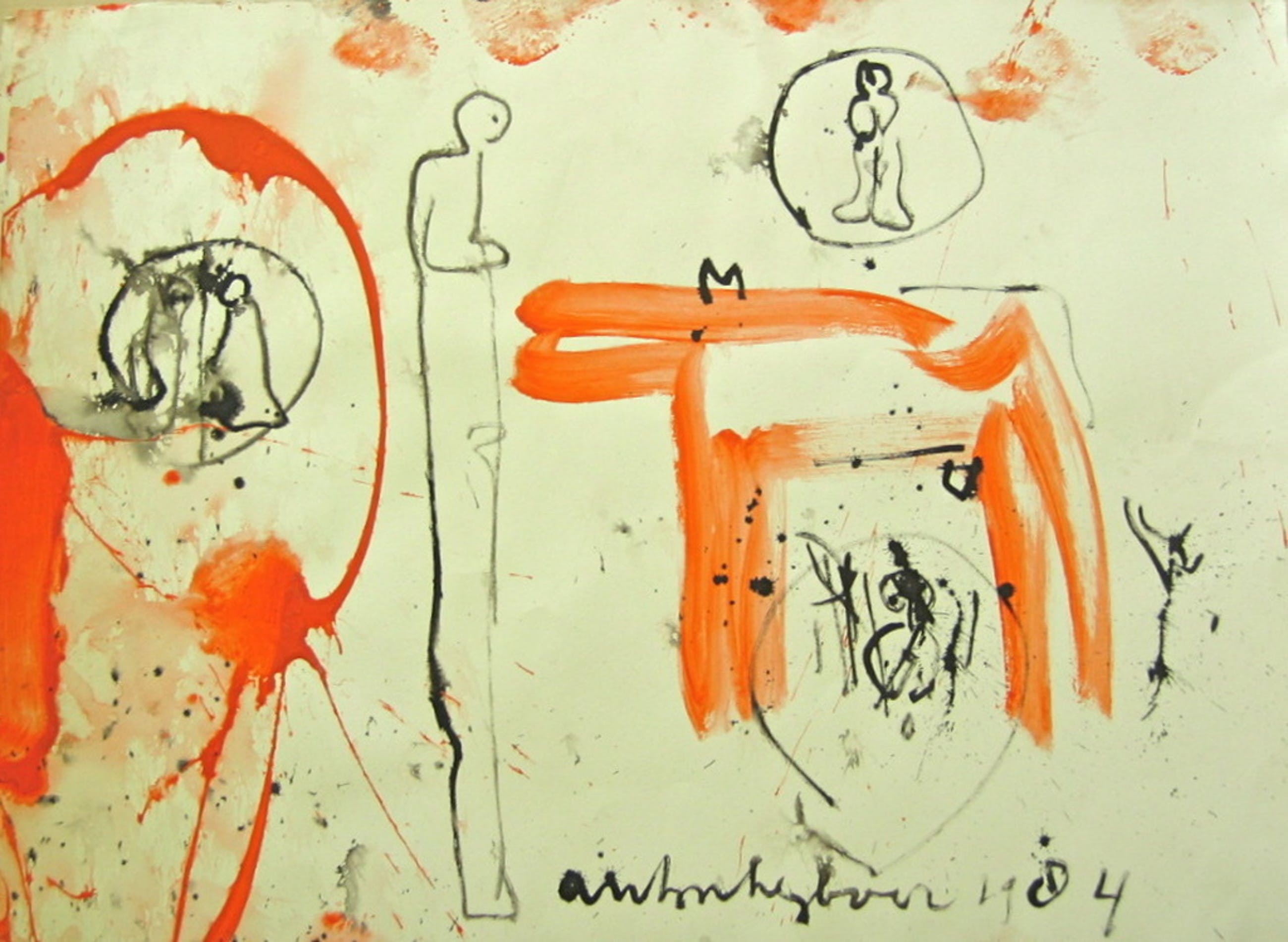 2 x een gouache Anton Heyboer , gesigneerd Anton heyboer 1984, achter glas gelijst. Maat van het werk is 70X100cm