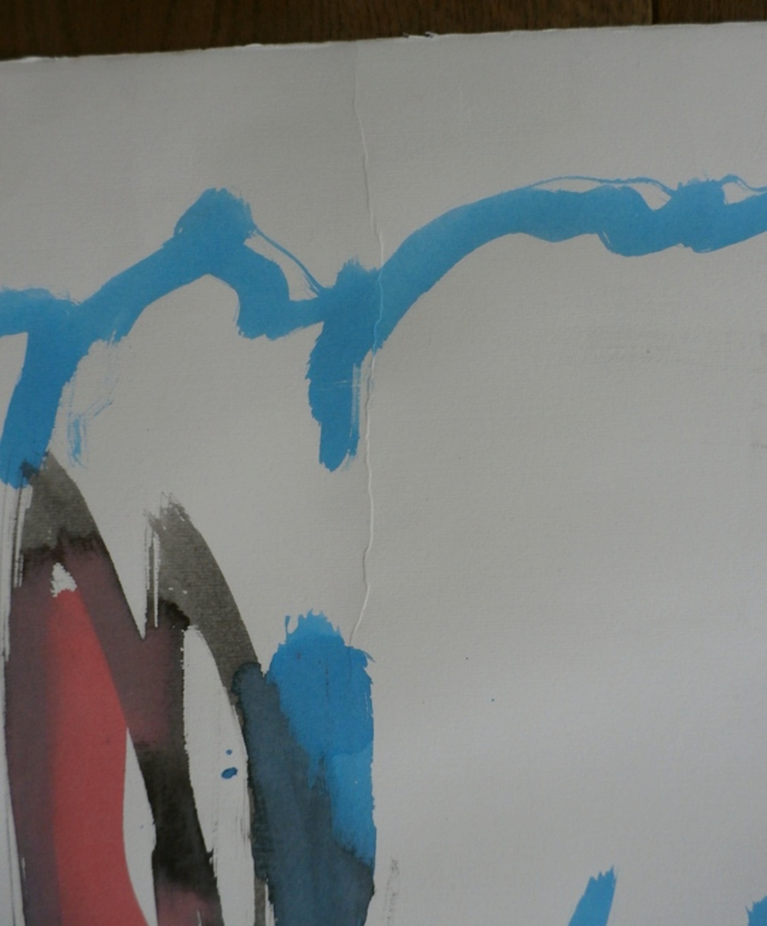 Conditie: langs de randen wat gekreukt. Dit valt onder passe - partout volledig weg. In het miden zit een verdikking in het papier. Zie foto 3 en 4.