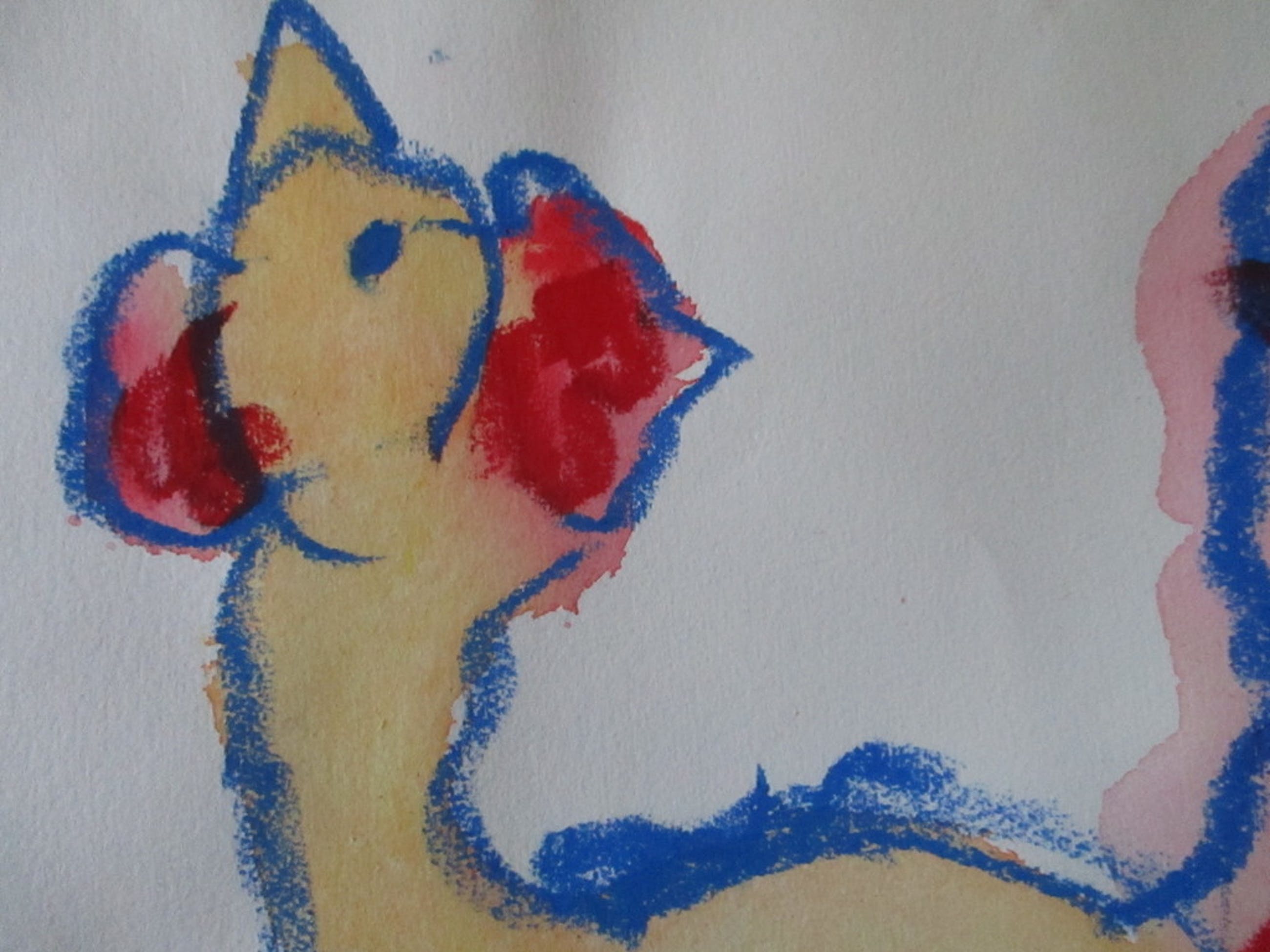 Spetterkip, waterverf (aquarel en crayon) op molenpapier. Afmetingen: 35.5cm x 38cm. Gesigneerd Anton Heyboer.