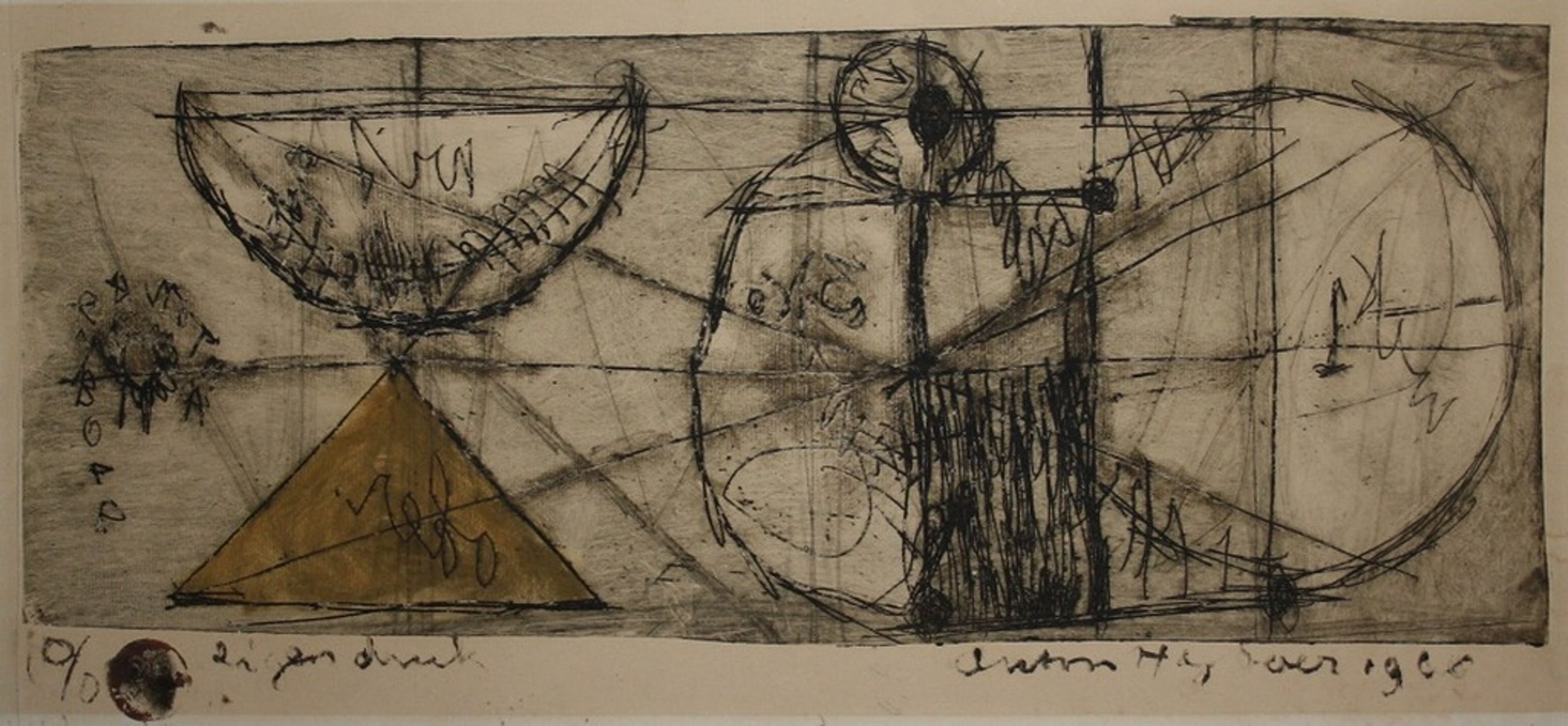 Titel : Abstracte compositie met cirkels en systeem / YvonneGesigneerd Voluit en gedateed 1960 - Eigen druk in inktstickDeze Ets is een 0/0 druk d.w.z. deze Ets komt uit Anton Heyboer zijn eigen collectie Zeer zeldzaam en zal niet of nooit op de markt komenAfmeting 51 x 31 cm