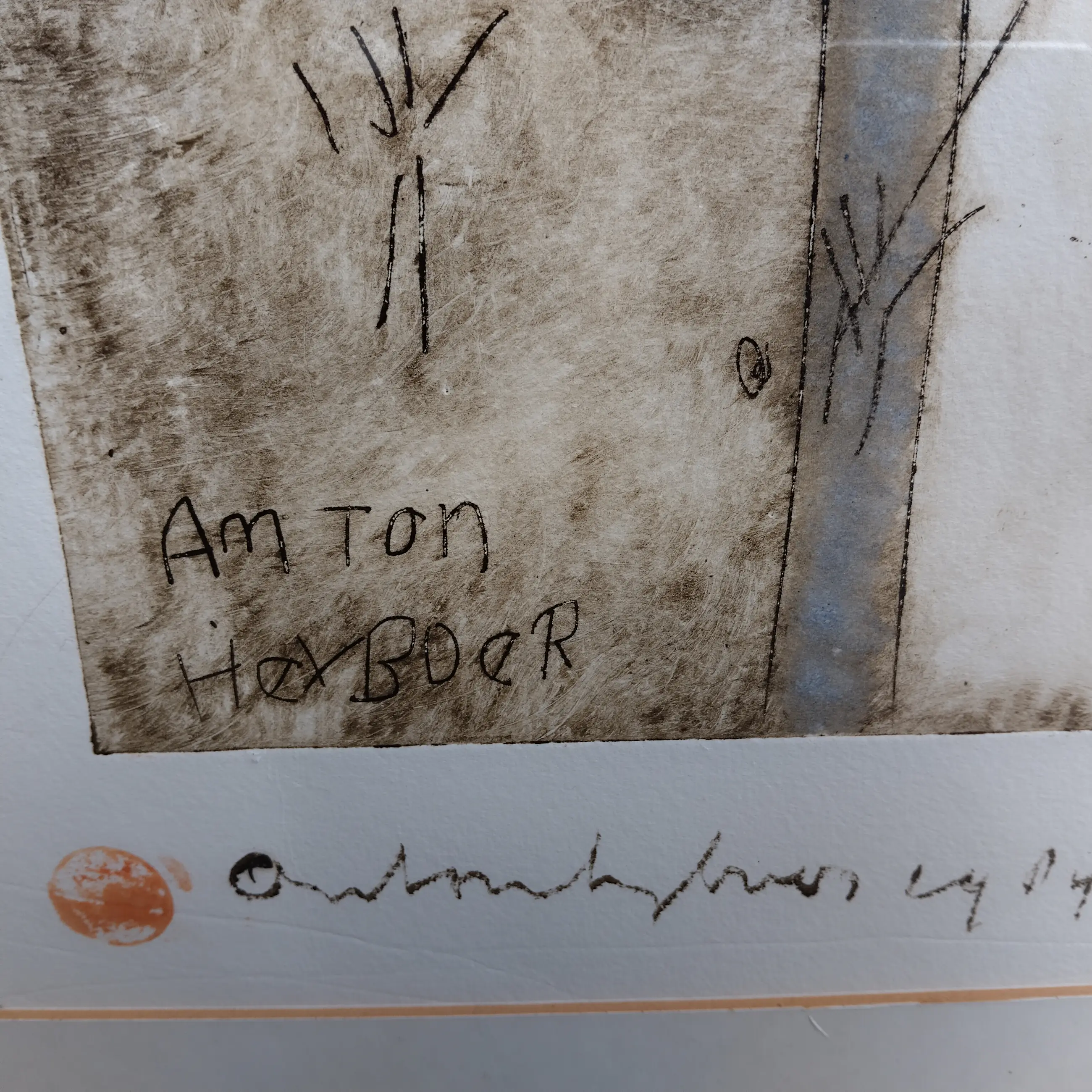 mooie ets van anton heyboer, gemaakt in 1984 en gedrukt in 1989. mooi van kleur ....