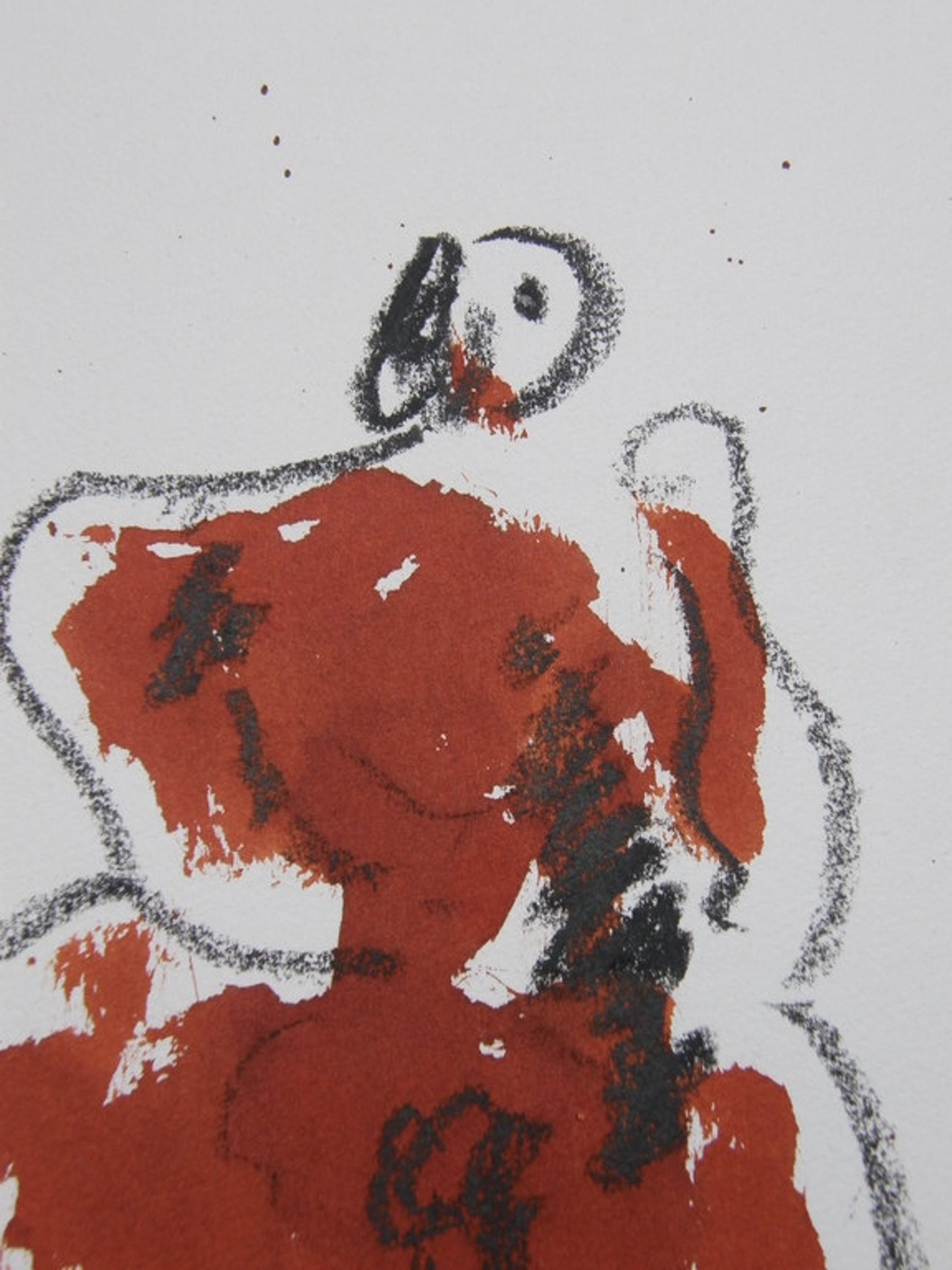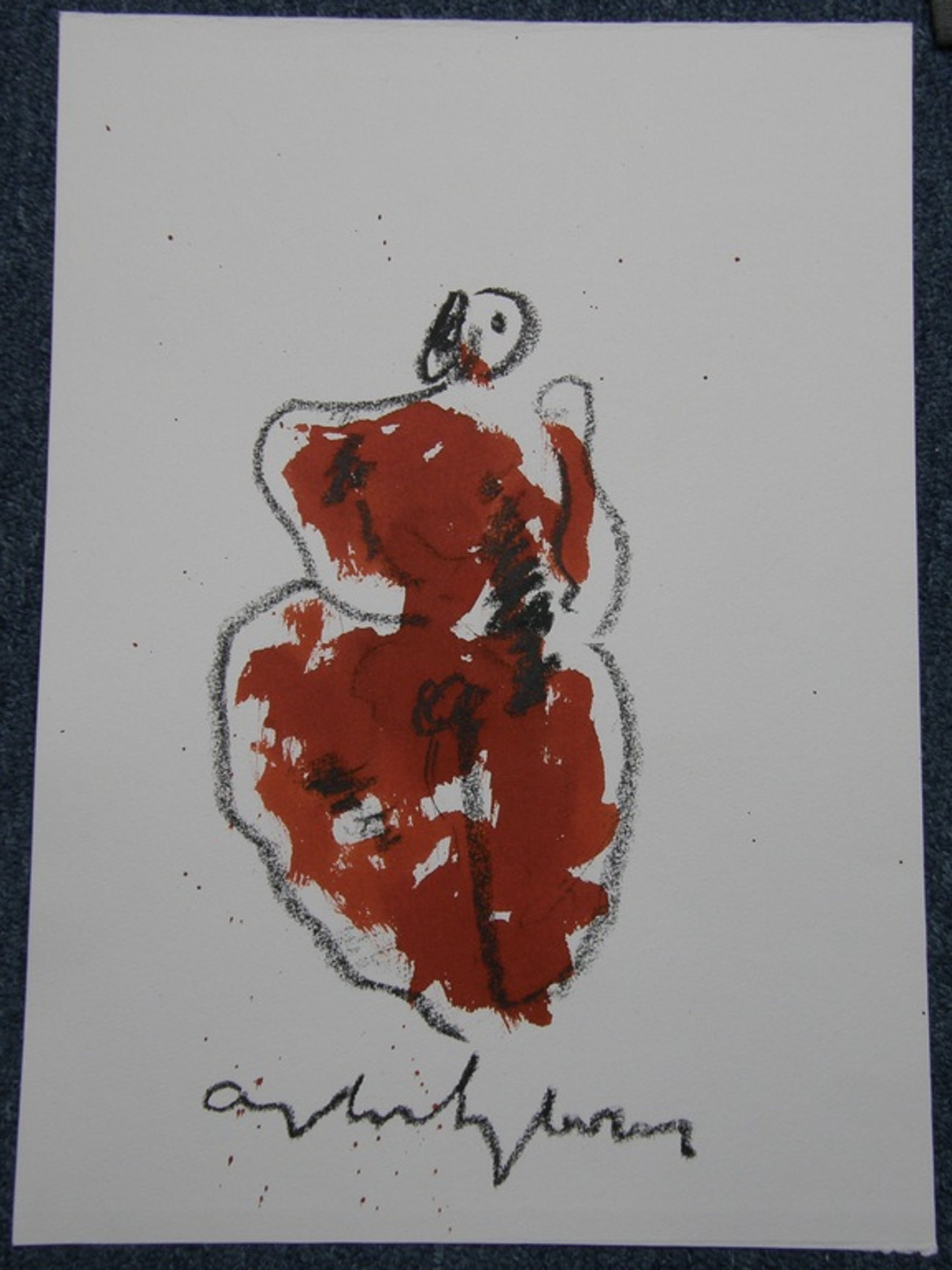 Fraaie gemengde techniek van Anton Heyboer, vrouw met kind, in zeer goede staat.