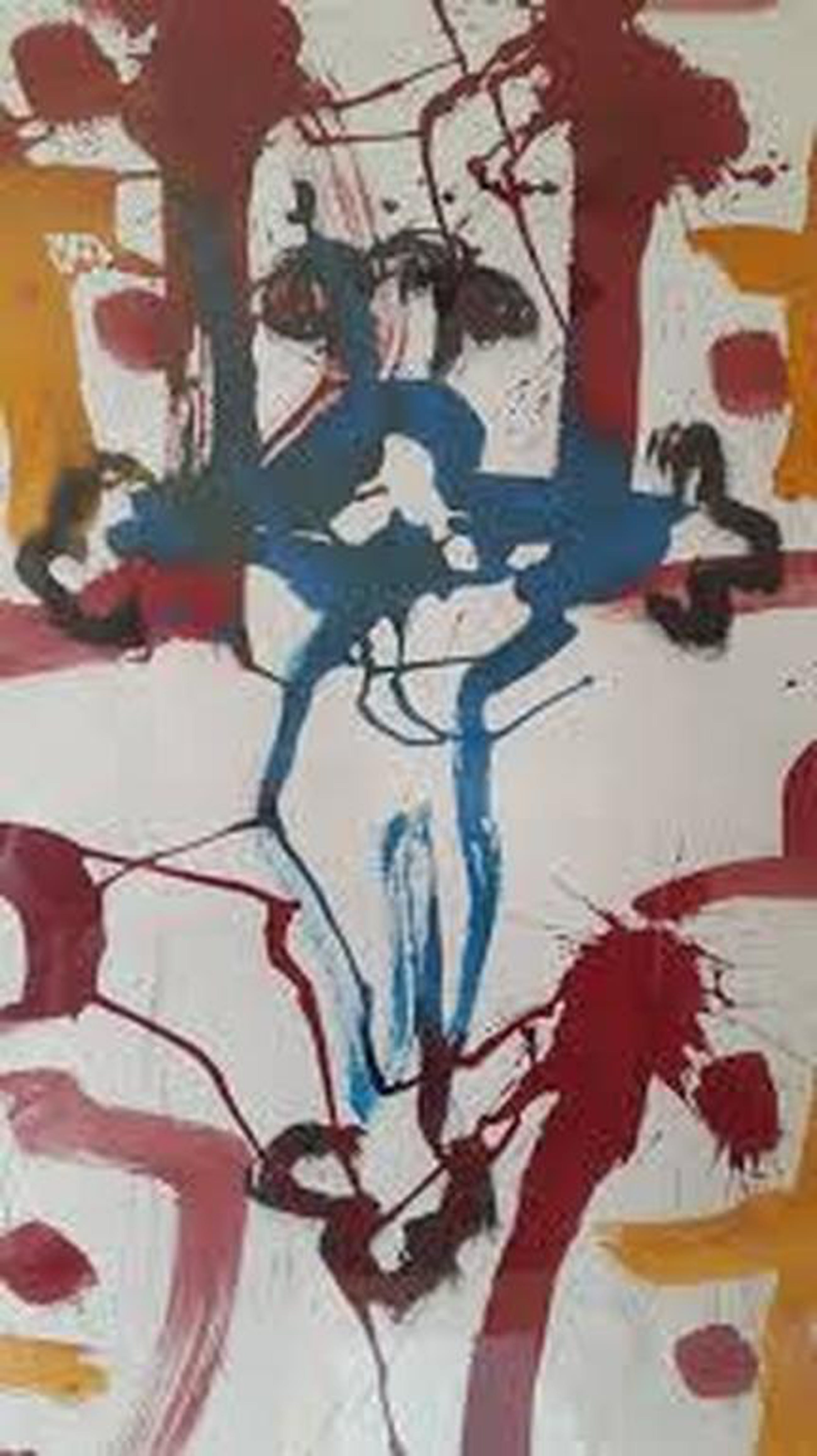 Anton Heyboer zelf centraal afgebeeld aan het kruis met zijn 4 vrouwen rond hem.
