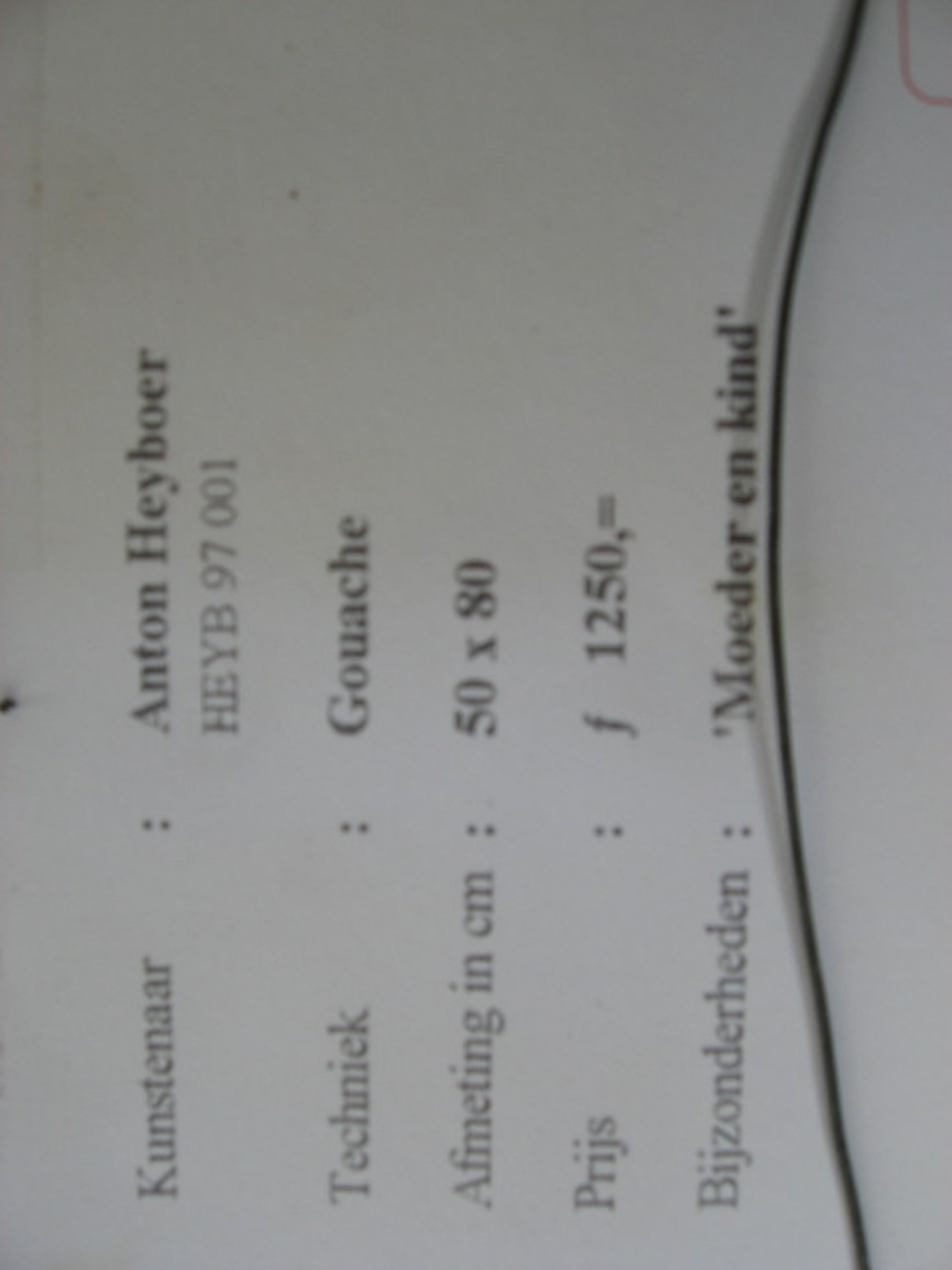 Prachtige gouache op geschept papier van Heyboer uit 1989. De contouren van moeder en kind zijn verdikt met acryl.