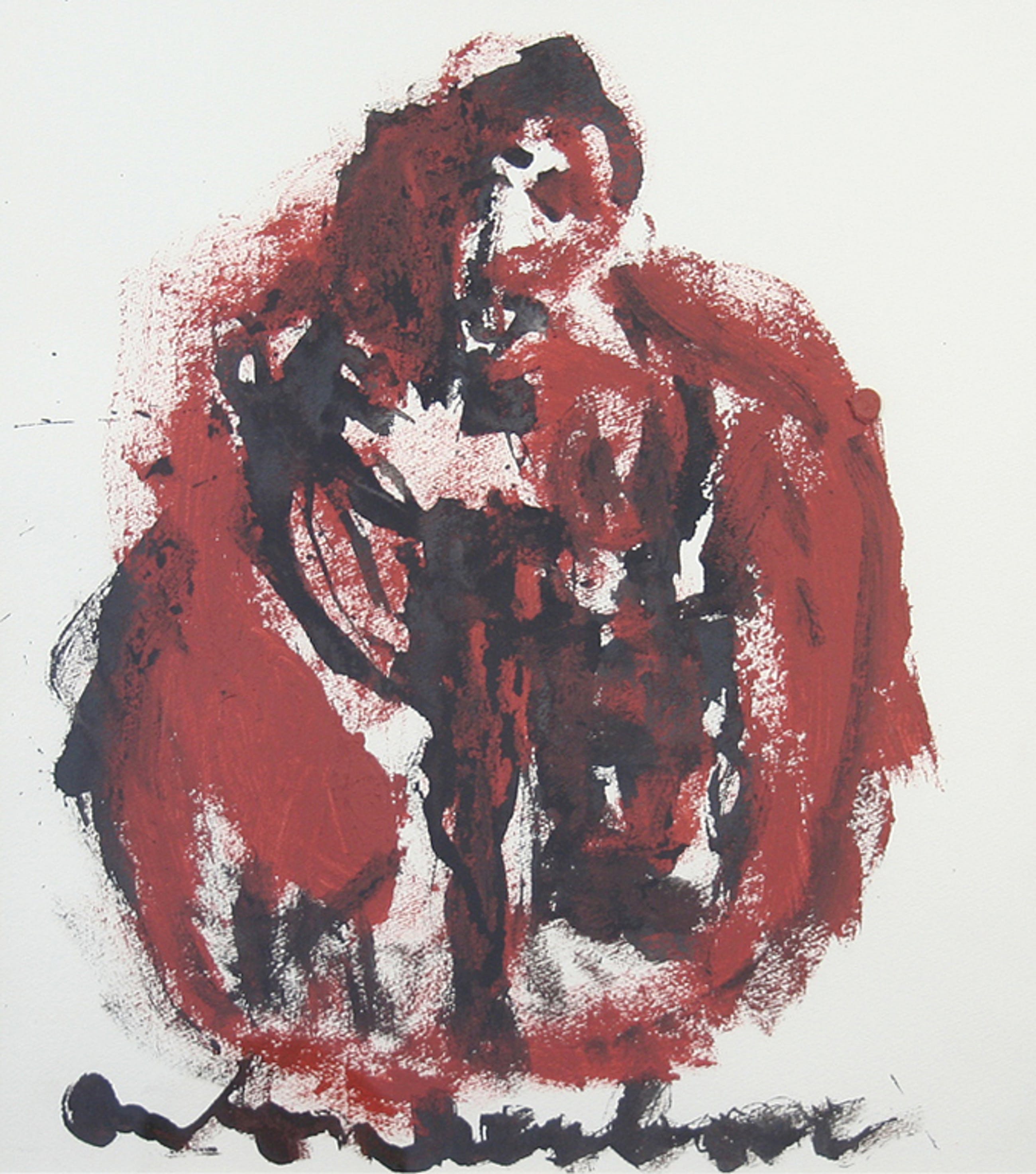 Werk op papier van Anton Heyboer uit 1997. Gesigneerd. Afm.: 39 x 34,5 binnen passe partout.