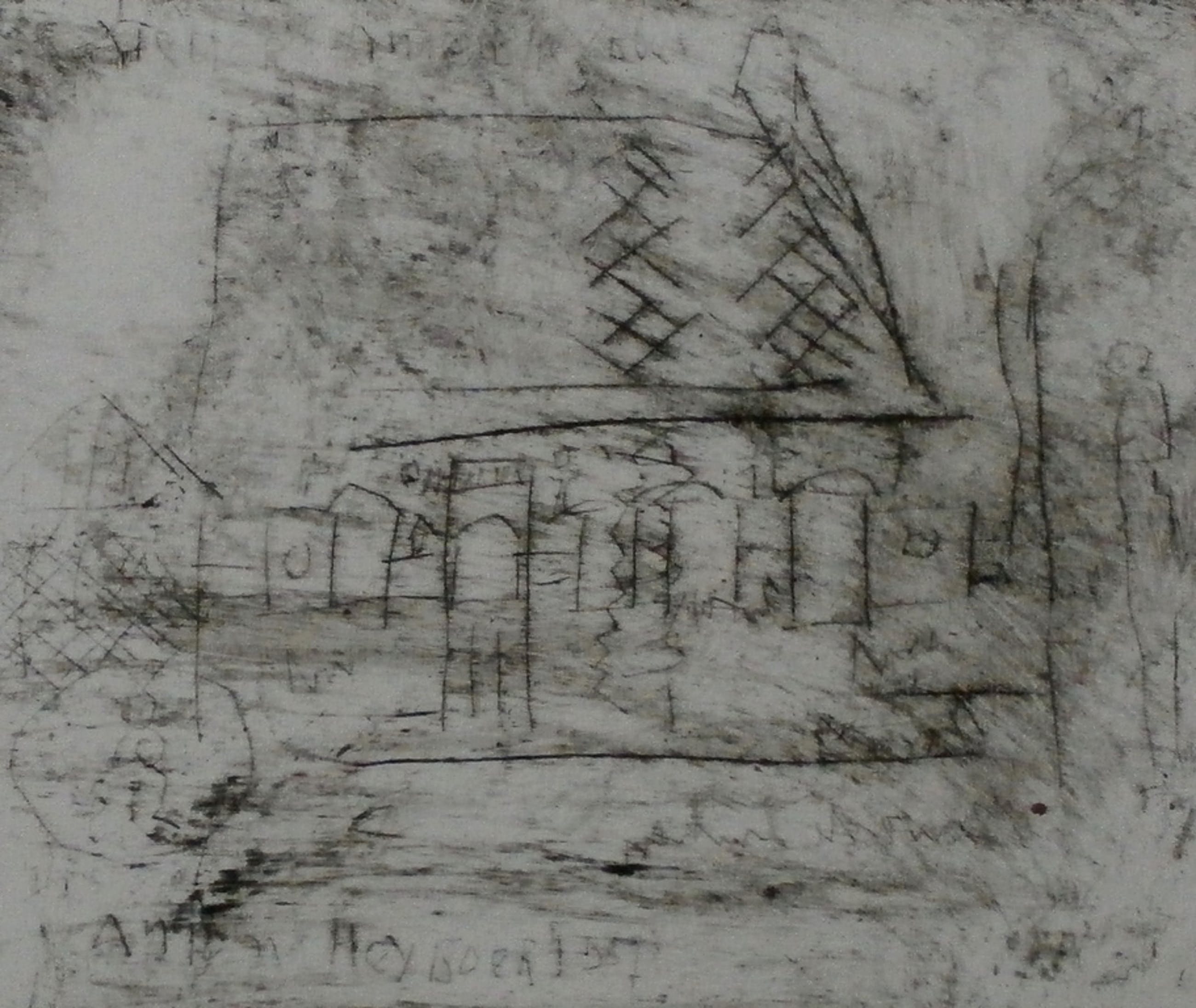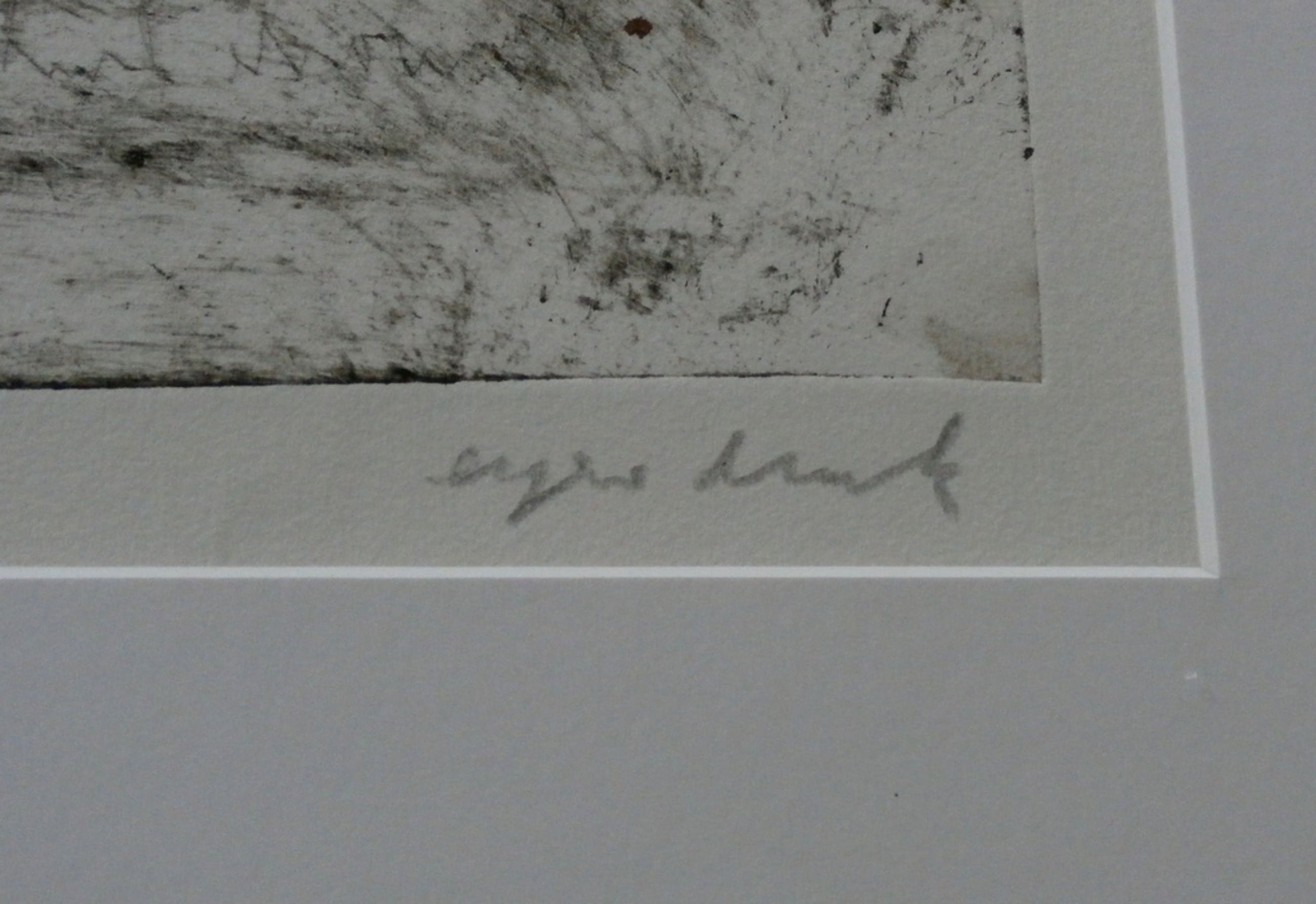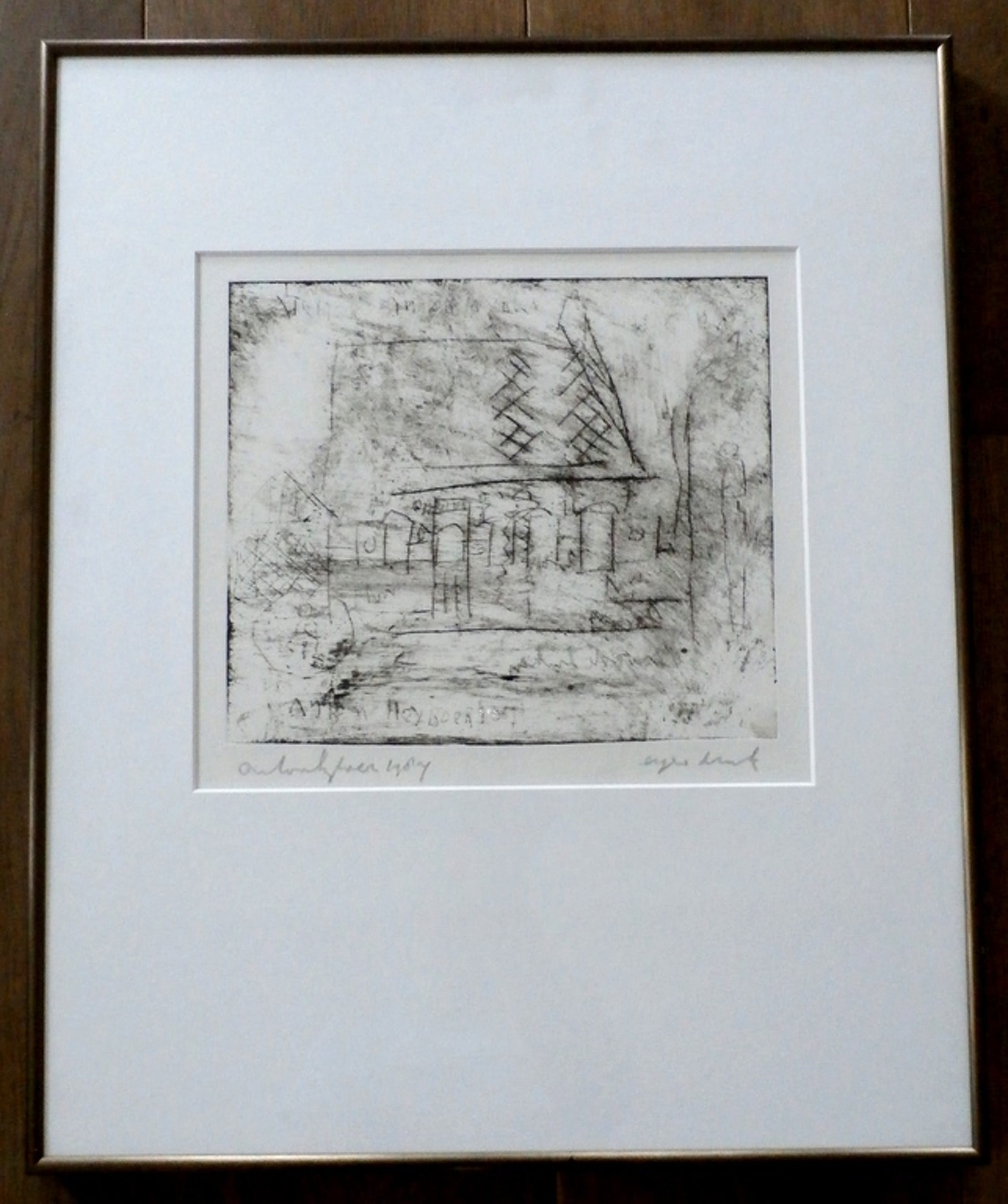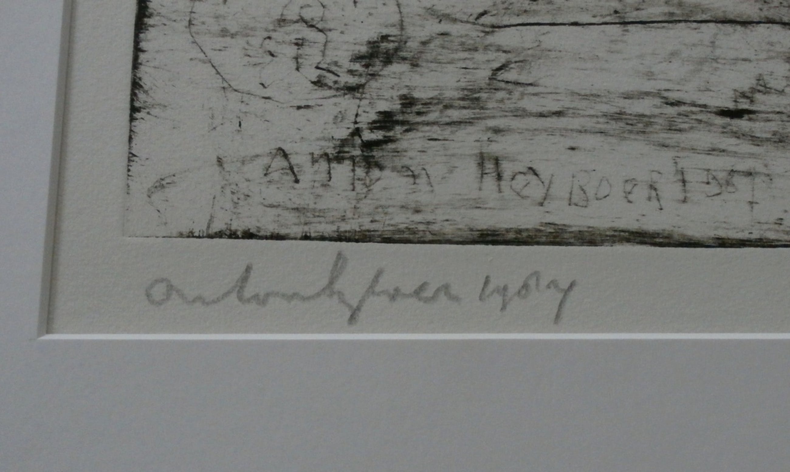 Ingelijste ets van Anton Heyboer.Op dit moment is er een grote tentoonstelling van deze kunstenaar in het Gemeentemuseum in Den Haag.