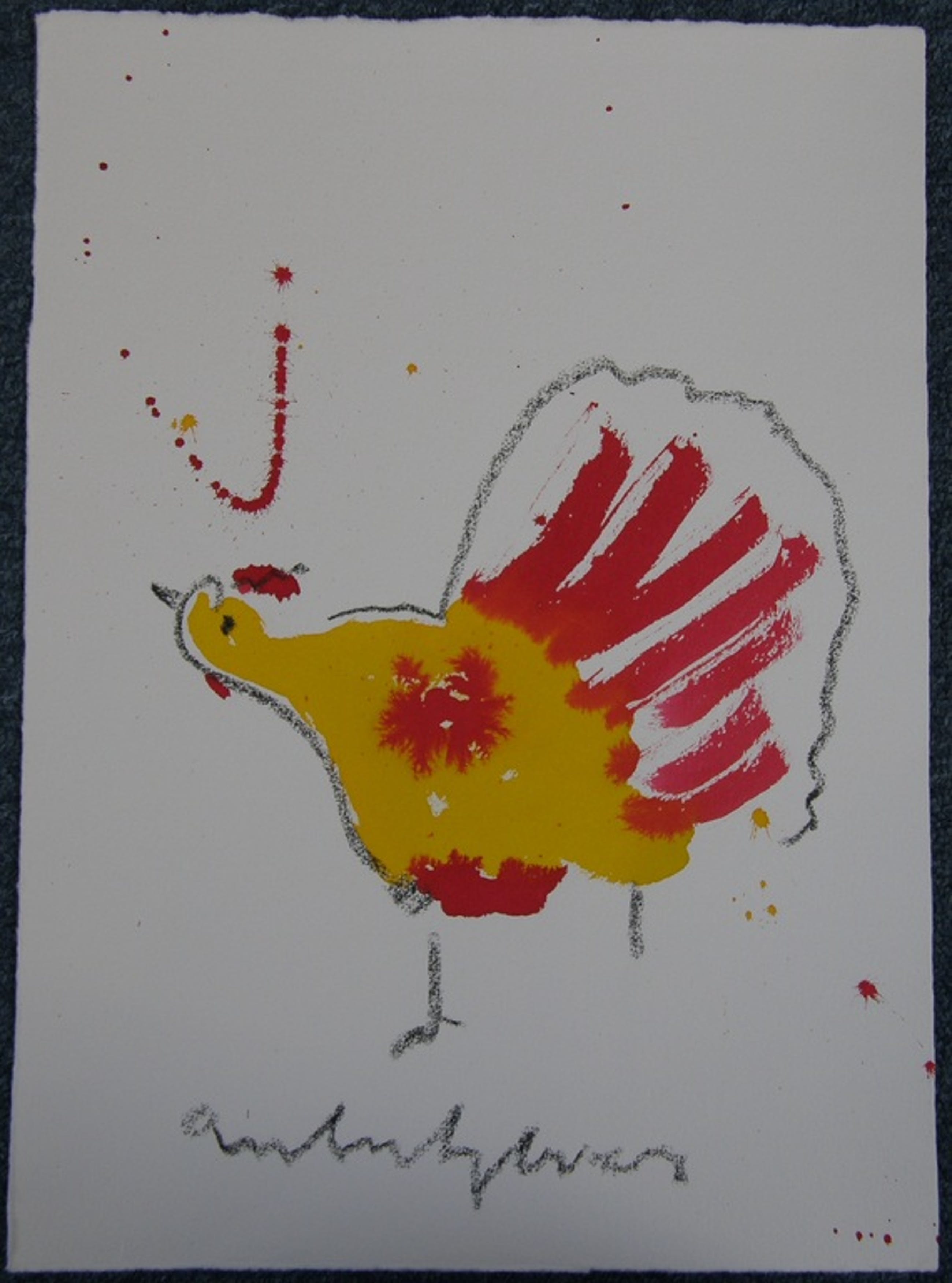Fraaie gemengde techniek van Anton Heyboer, het werk is in zeer goede en ongeschonden staat. Op geschept papier.