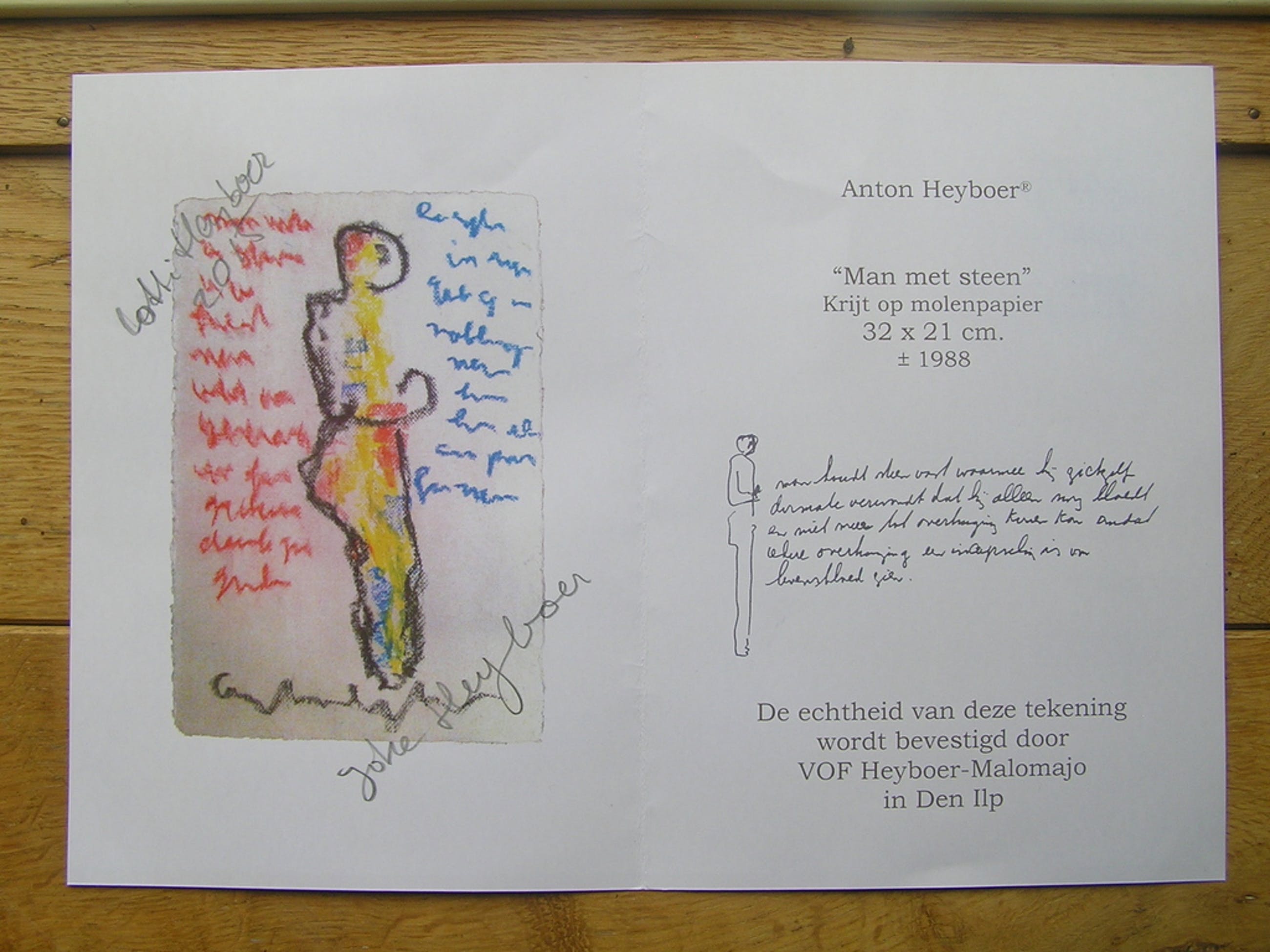 Gemaakt met krijt op molenpapier uit het jaar 1988.