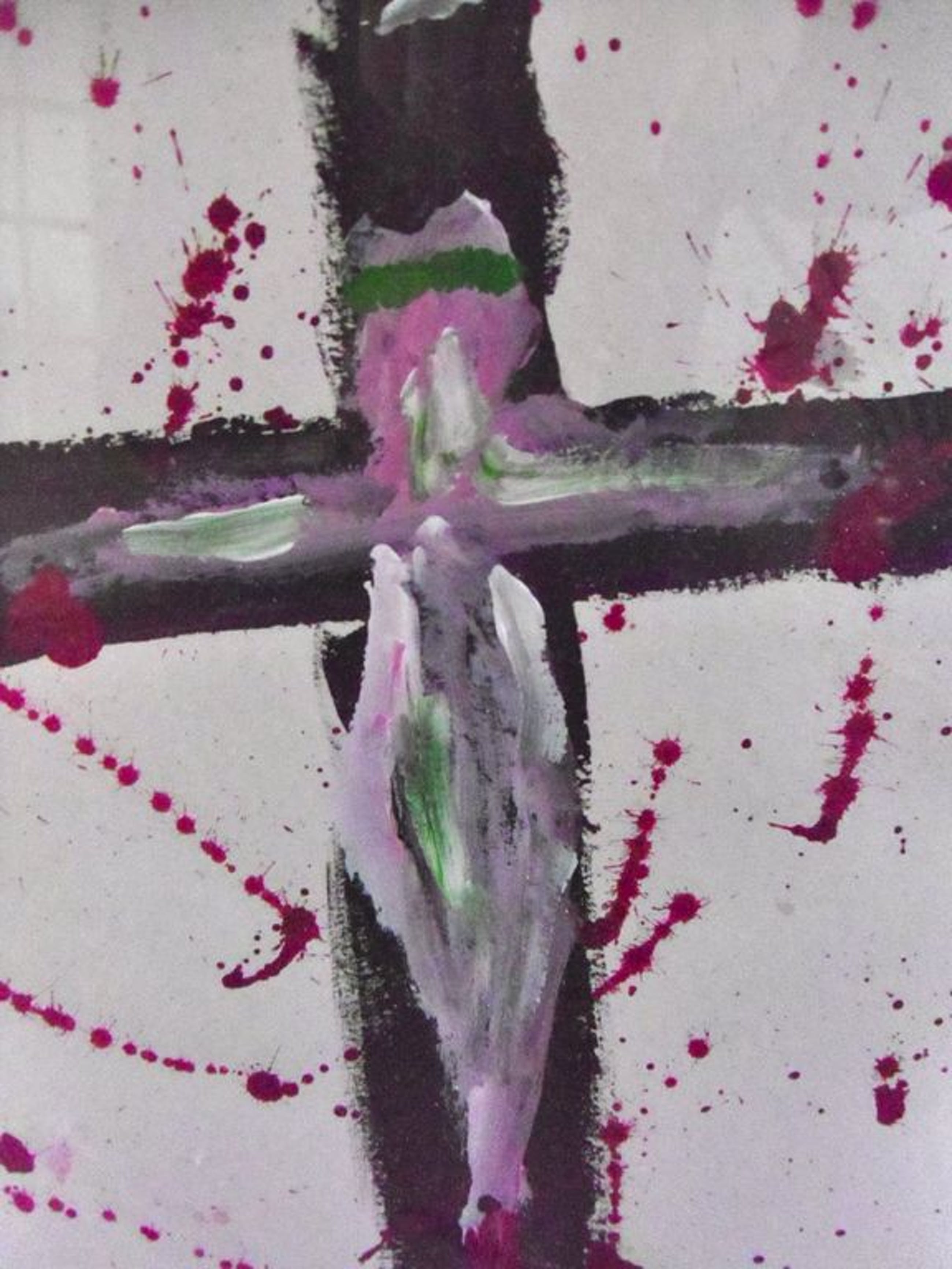 Naast de vele kippen en vrouwen die hij schilderde, waren de Christus en de crucifix sacrale gegevens van zijn schilderwerk. Ook in zijn leefgemeenschap stond het Christusmotief sterk centraal. Het schilderij ‘Crucifix’ refereert aan Heyboers fascinatie voor religie. Het is een kruisbeeldvorm waarbij het lichaam van de gekruisigde Christus op een kruis is bevestigd om de lijdensweg van Jezus te benadrukken. Het is dezelfde lijdensweg die Heyboer voor zichzelf en voor zijn vrouwen zag. Nadat hij ‘schoon’ was geworden en de antipsychiatrie had omarmd moesten ook zijn vrouwen ´schoon’ worden; dat kon alleen door hen mentaal af te breken en hen als een nieuw mens op te bouwen.