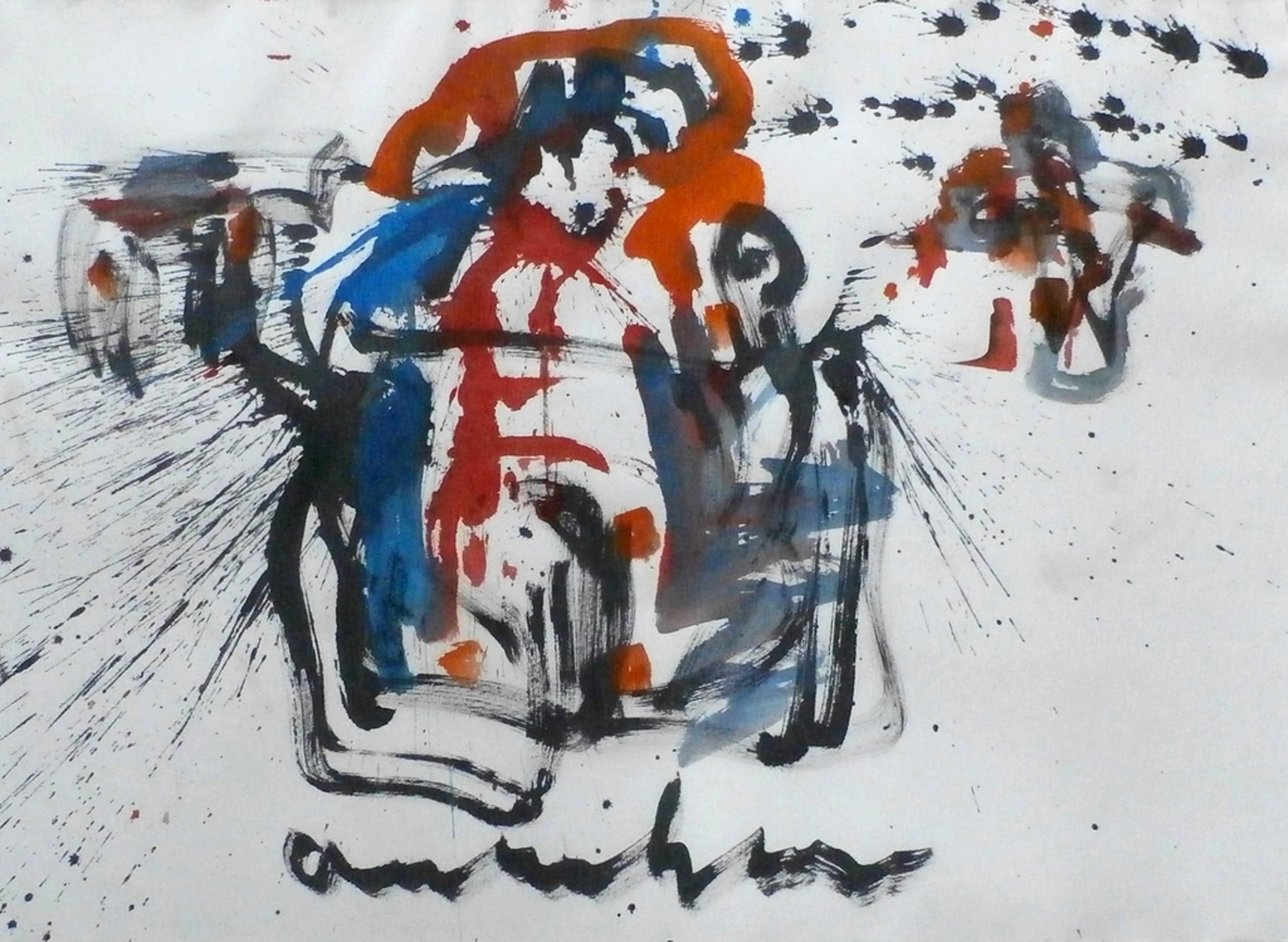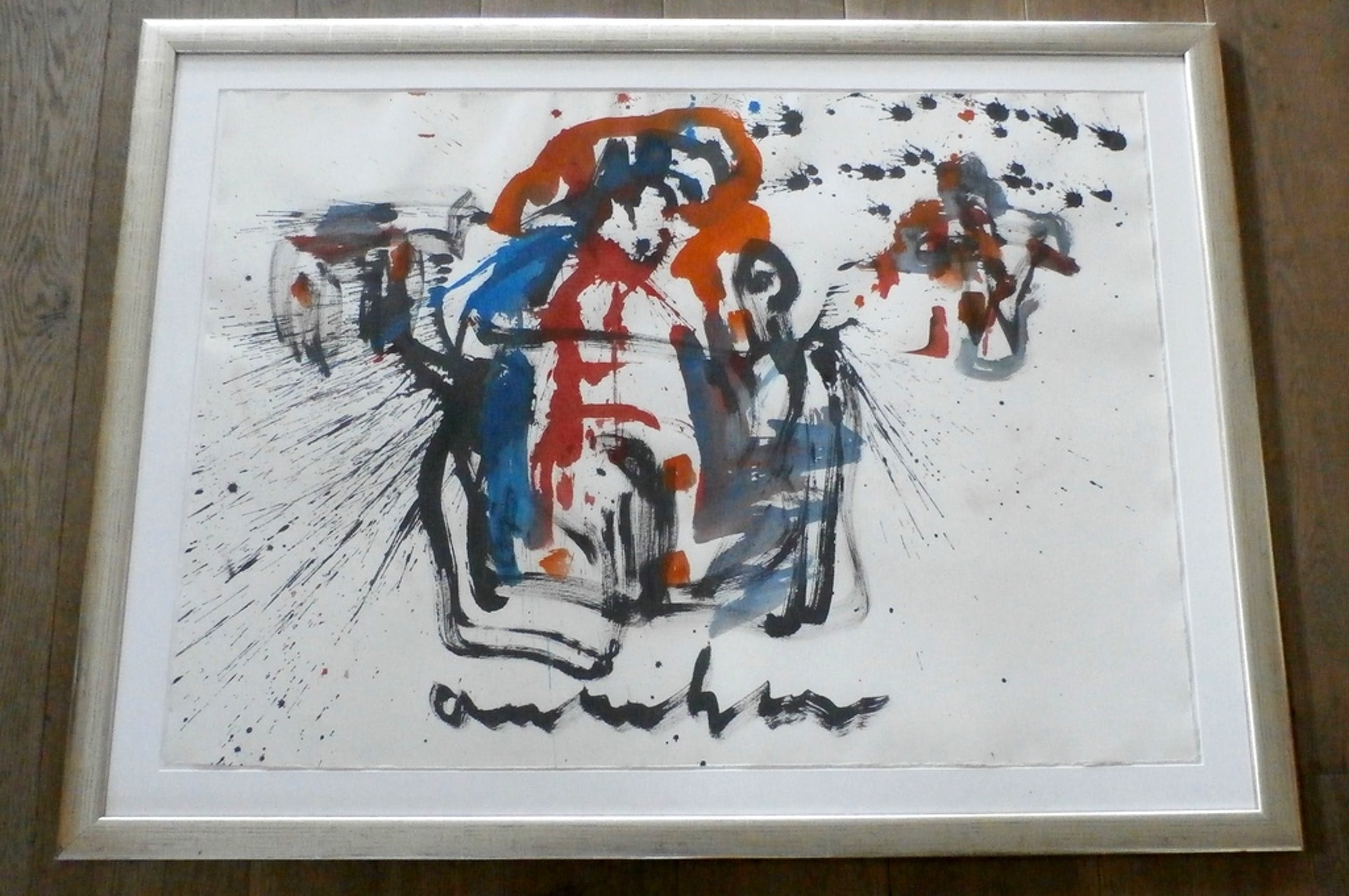 Anton Heyboer- aquarel: Moeder En Kind; middenonder gesigneerd door de kunstenaar; afm incl. lijst.: h97 x b128 cm; afm. voorstelling: h78 x b108 cm; herkomst: rechtstreeks bij Anton Heyboer zelf gekocht; werk "Abstract" wat ook wordt aangeboden, is op dezelfde dag gemaakt. Ga ook eens in het Gemeentemuseum, in Den Haag, kijken, waar op dit moment een mooie tentoonstelling te zien is van deze kunstenaar!!