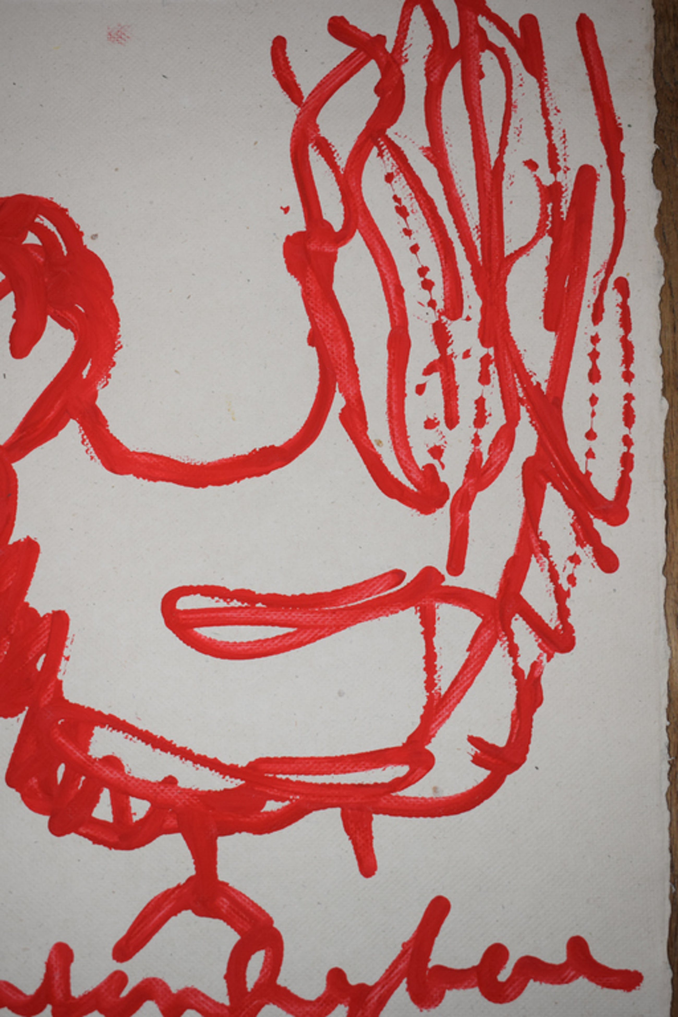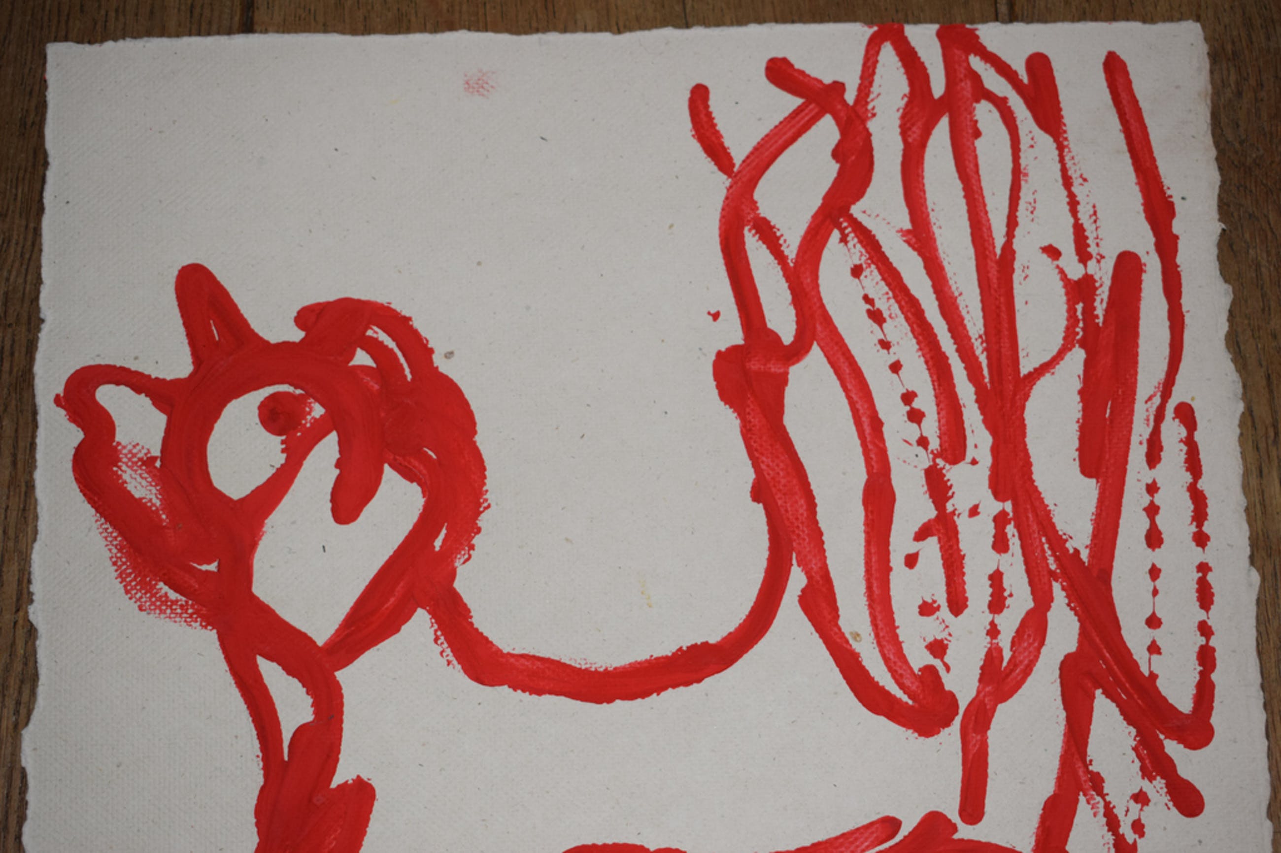 Anton Heyboer schilderde vaak onorthodox. Een voorbeeld hiervan is de techniek om te schilderen via de tube van de verf.