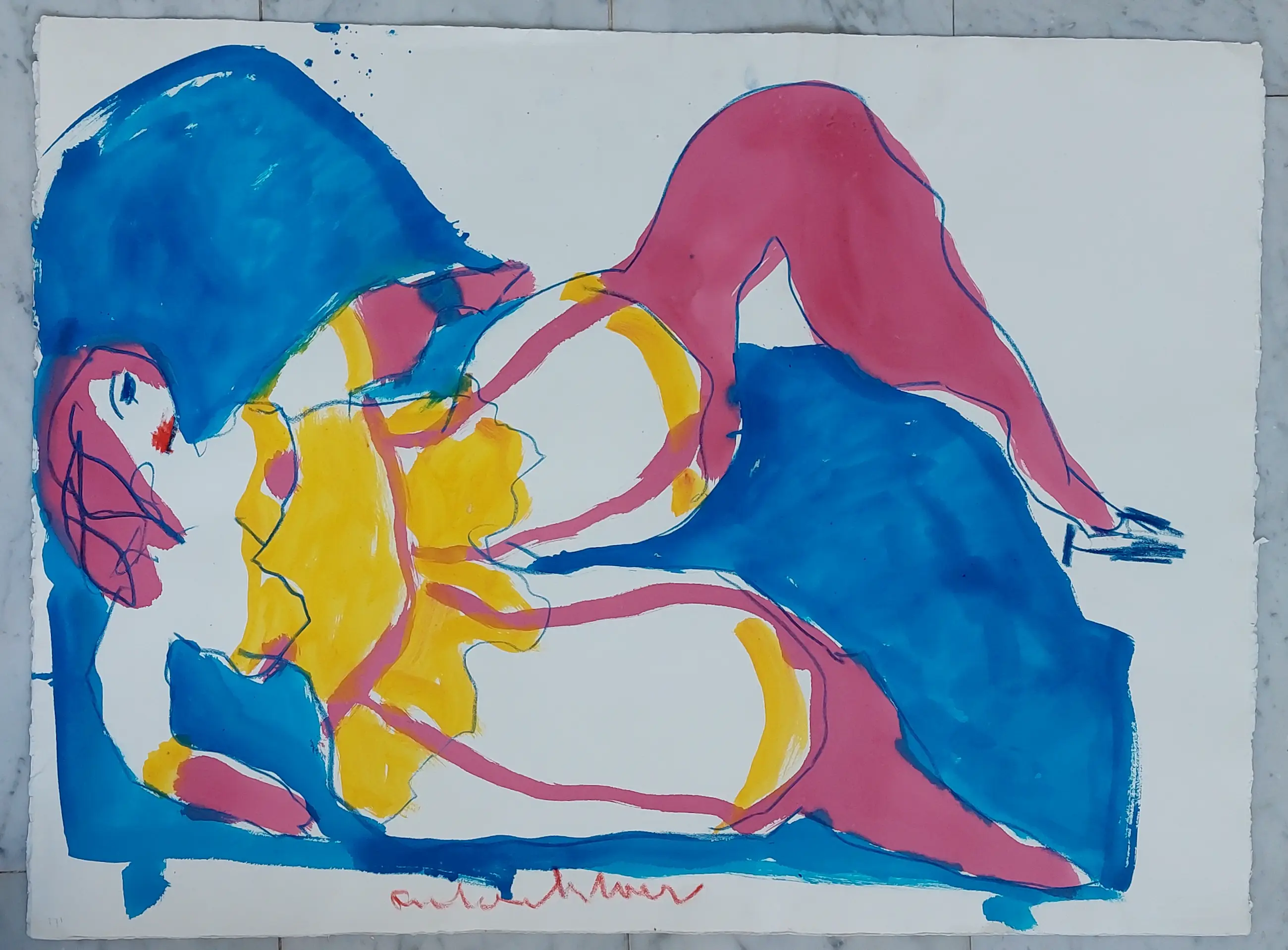 Gouache op dik papier Afmeting bij benadering Gesigneerd