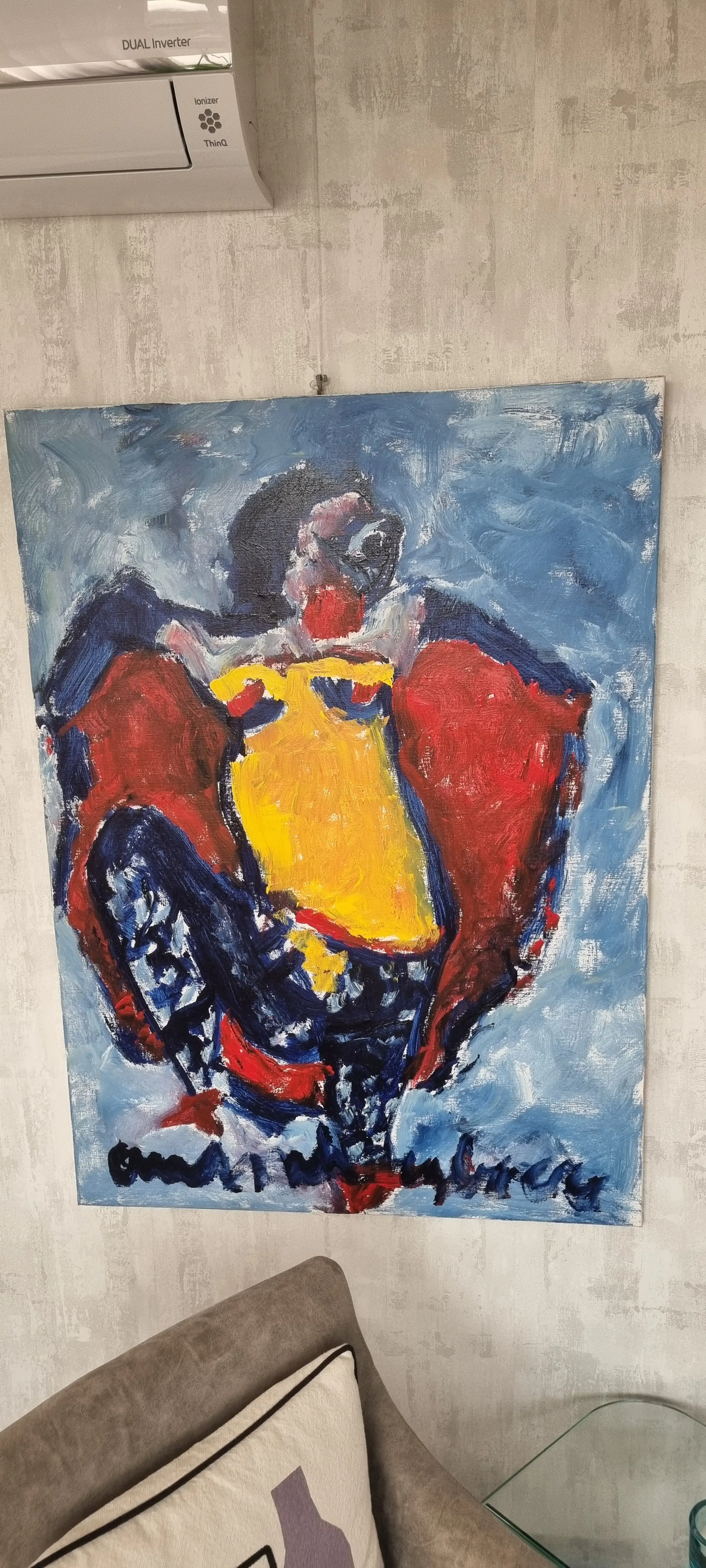Mooi kleurig acryl op linnen schilderij , met ook aande achterzijde abstract beschilderd. Zelf gehaald bij Petra in den Ilp.