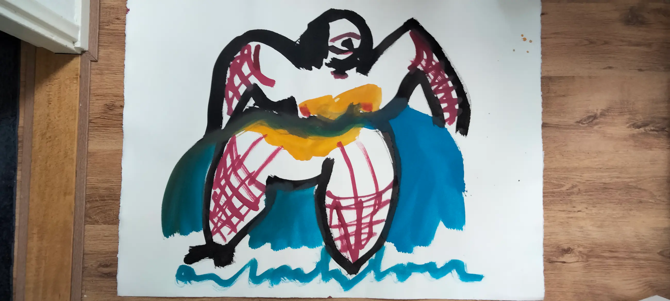 Groot kleurrijk schilderij van Anton Heyboer op hahnemule papier. Uiteraard handgesigneerd door Heyboer. Werk verkeerd in nieuwstaat. Afhalen kan. Bij verzending wordt het werk zorgvuldig opgerold in een beschermende koker.