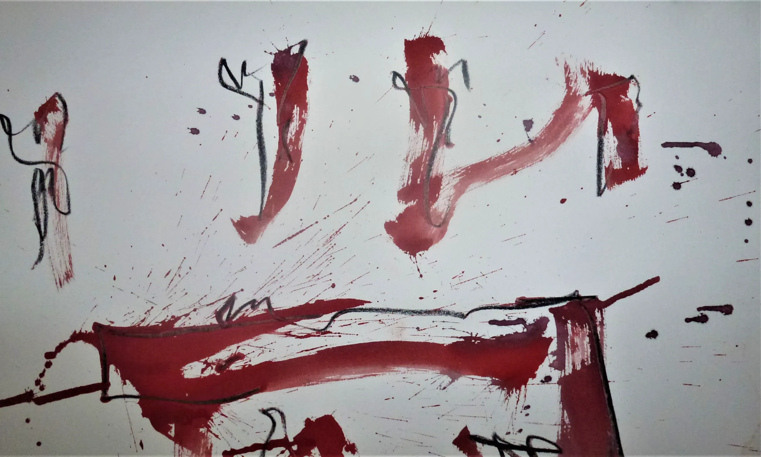 Geschilderd door Anton Heyboer in 1988 met acrylverf en getekend met wasco op Hahnemühle papier . Afmetingen : 78 cm x 108 cm . Voorstelling : Confrontatie tussen de mens het dier en de natuur . Conditie : Zo goed als nieuw. Herkomst : Gekocht in 1988 van Anton Heyboer . Wordt aangetekend verzonden .