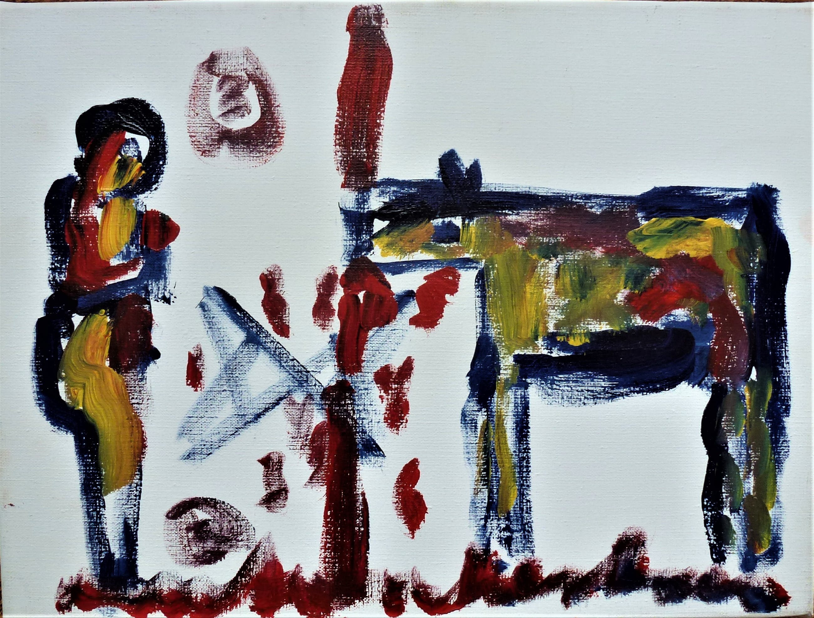 Geschilderd door Anton Heyboer in 1988 met acrylverf op canvas doek , Afmetingen : 30 cm x 40 cm . Voorstelling : Confrontatie Mens Dier en het Heyboer Systeem . Conditie : Zo goed als nieuw . Herkomst : Gekocht in 1988 van Anton Heyboer . Wordt aangetekend verzonden .