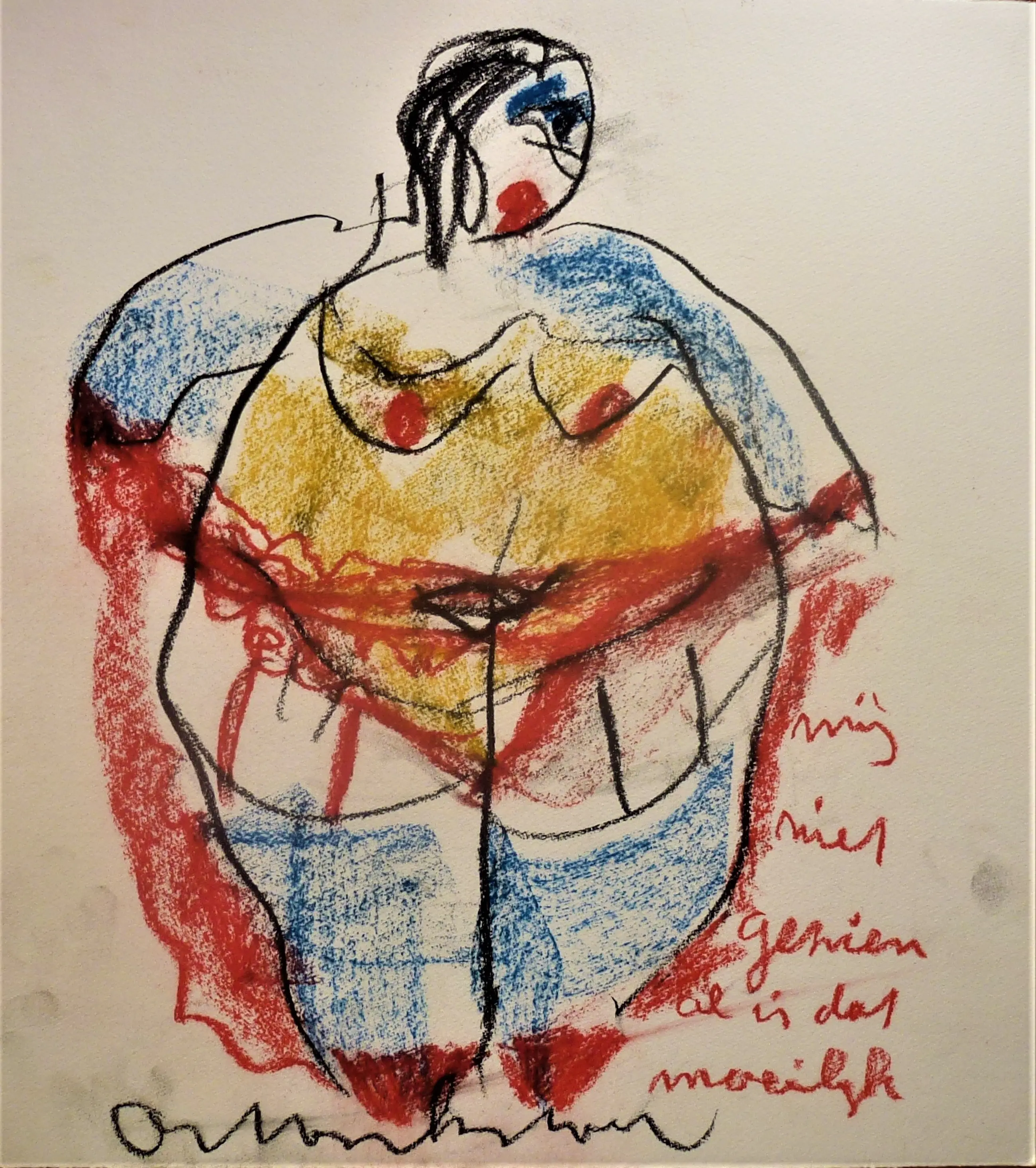 Getekend door Anton Heyboer in 1992 met paastel op Hanemühle papier . Afmetingen : 39,5 cm x 35,5 cm . Voorstelling : Danseres . Tekst : Mij niet gezien al is dat moeilijk Conditie : Zo goed als nieuw . Herkomst : Gekocht in 1992 van Anton Heyboer . Wordt aangetekend verzonden .