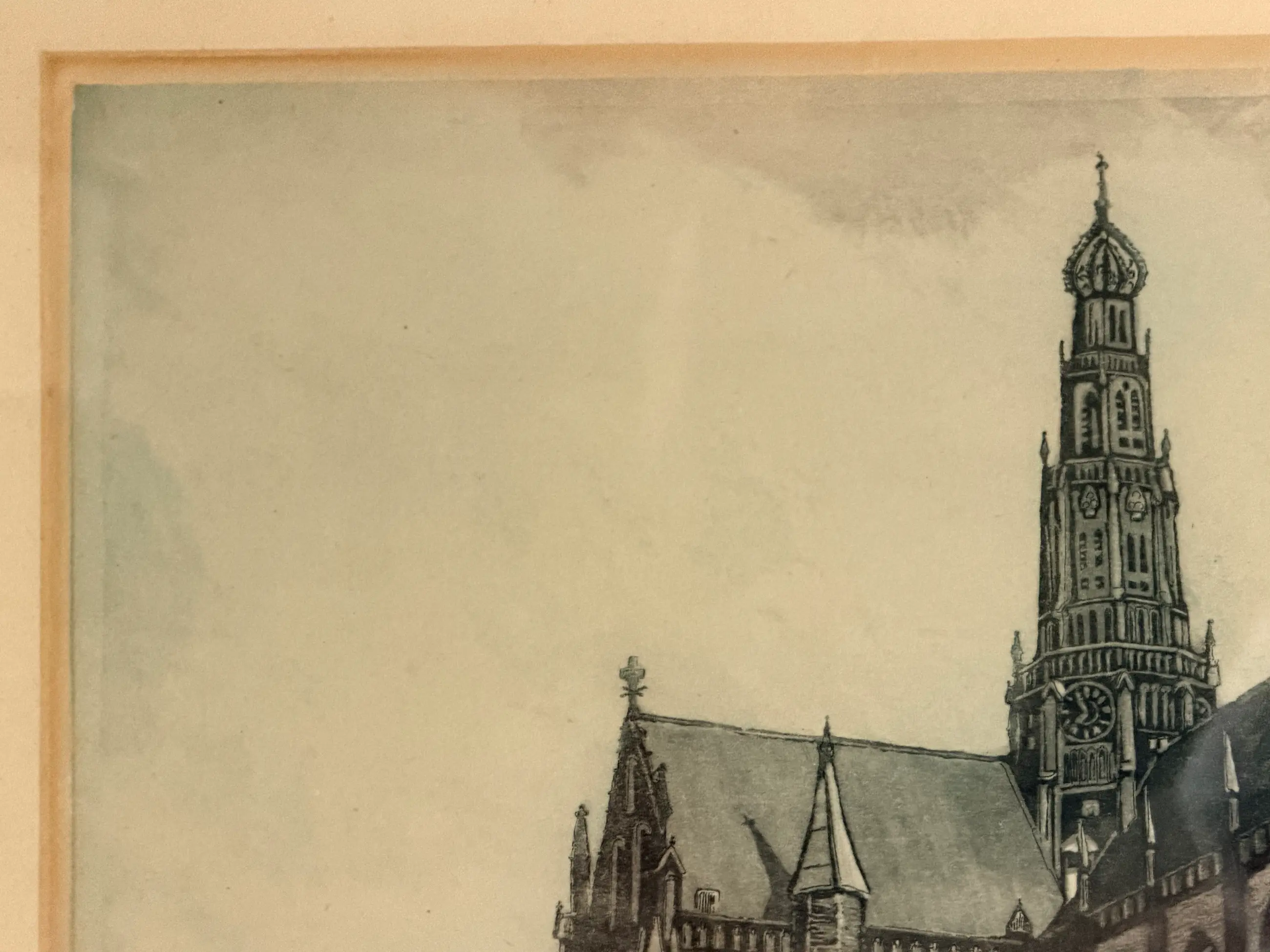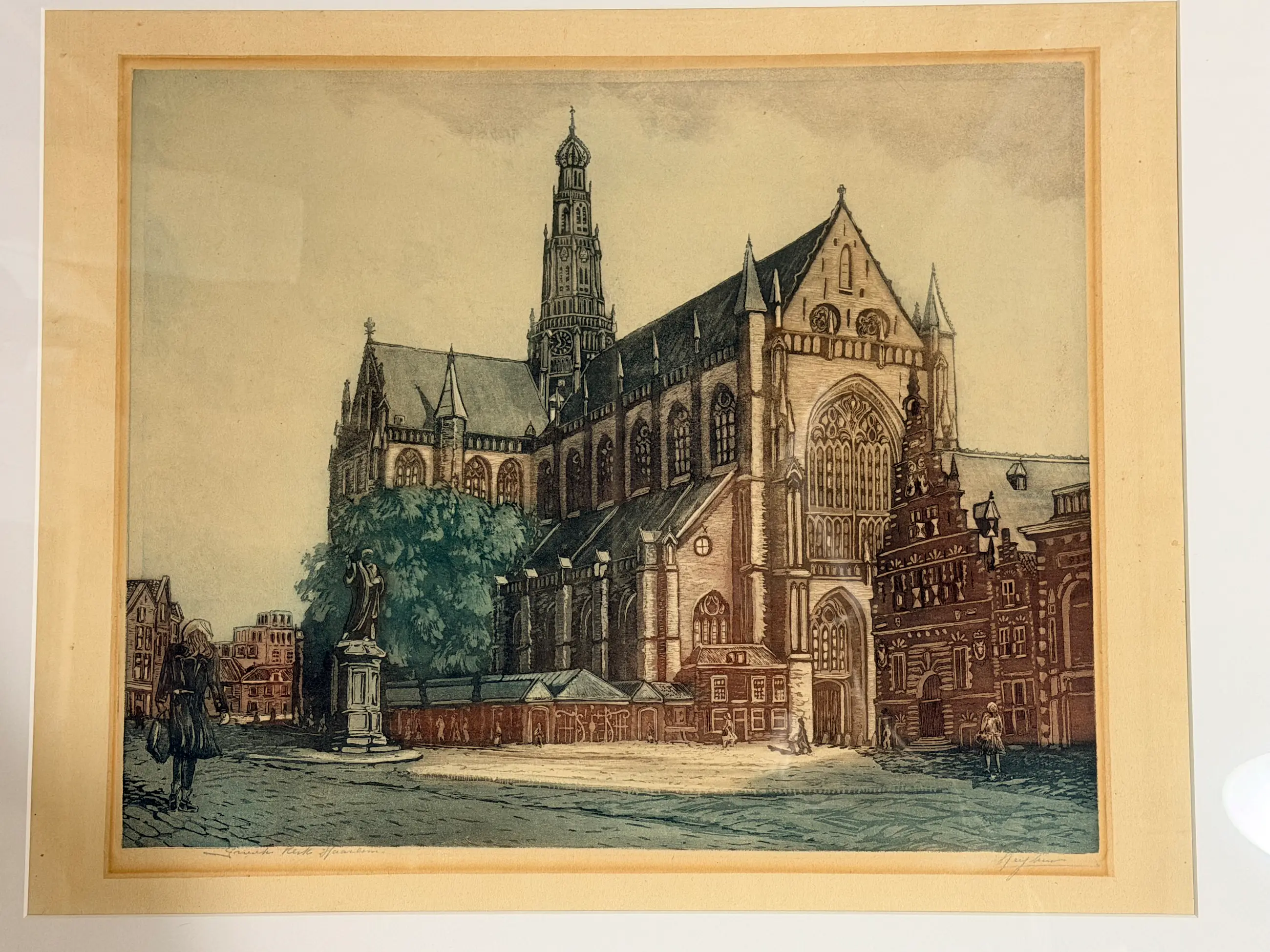 Anton Heyboer (1925 - 2005) Titel ets : Grote kerk te Haarlem Ets : Hand ingekleurde ets. Afmeting papier : 50 x 42 cm. Afmeting ets. : 41 x 34 cm. Gedateerd : 1948. Kunstenaar(s). : Anton Heyboer Signatuur ; rechts onder signatuur kunstenaar Naam ets. : links onder met potloot. wordt verzonden zonder lijst.