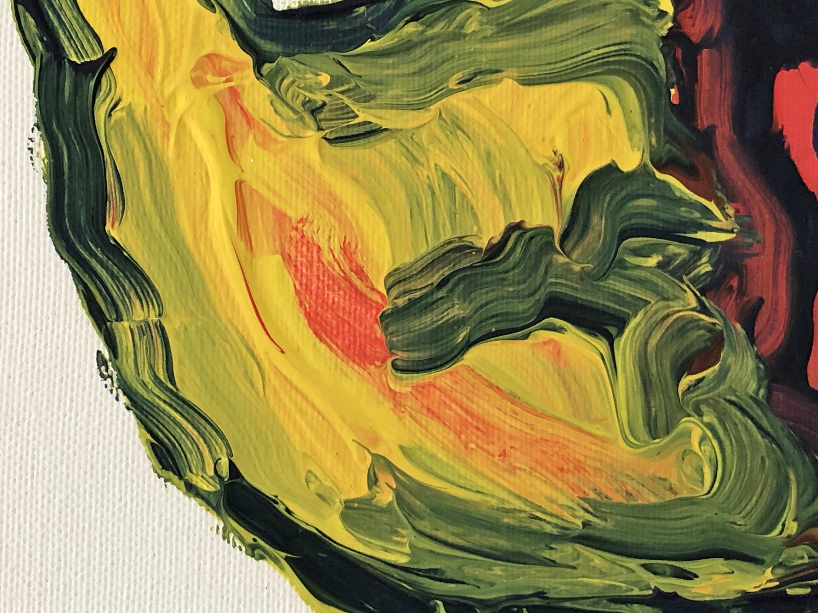 Acryl op doek, 24x30 cm. Te dateren 1970-1990. Energiek en kleurrijk werk in