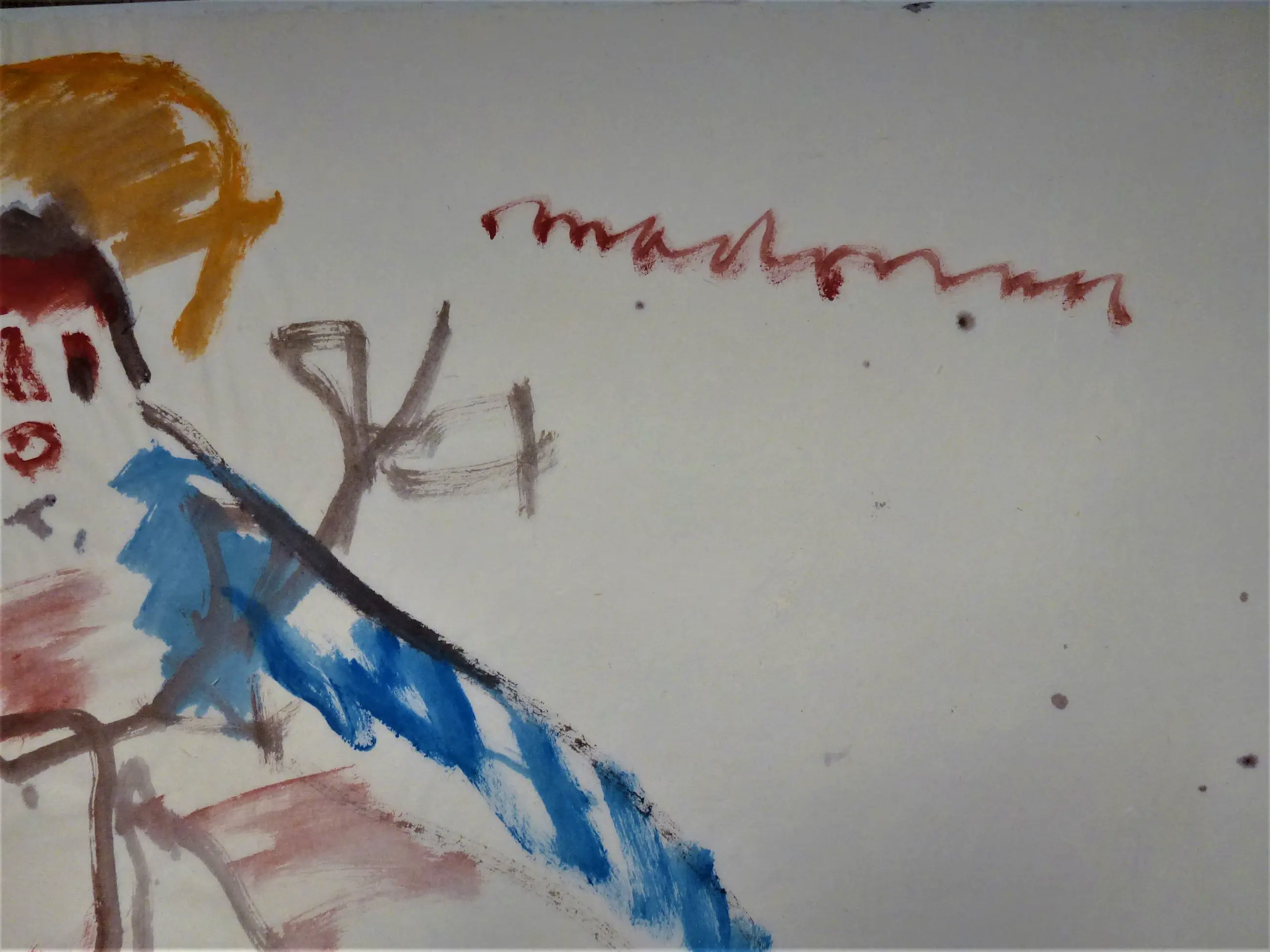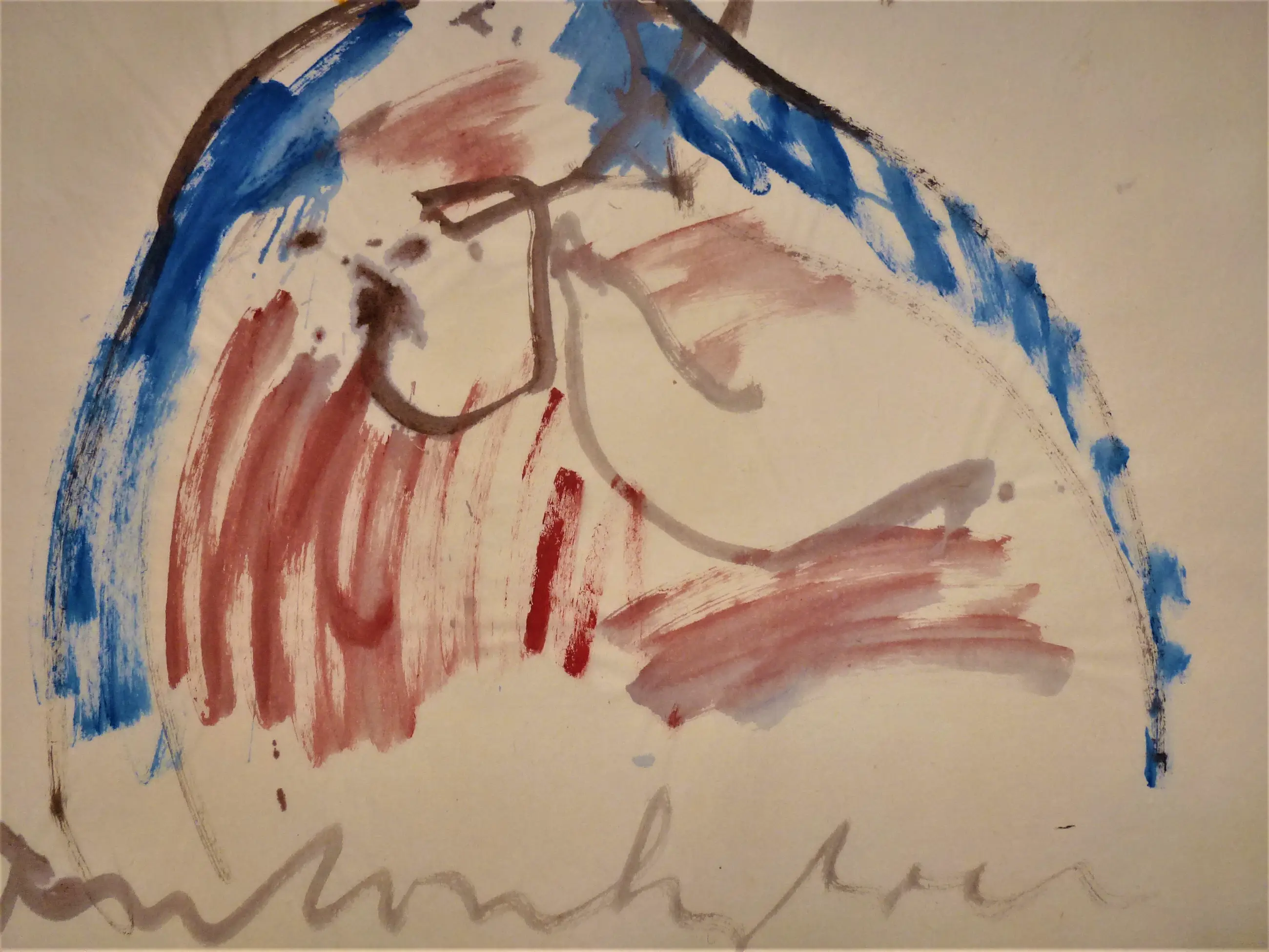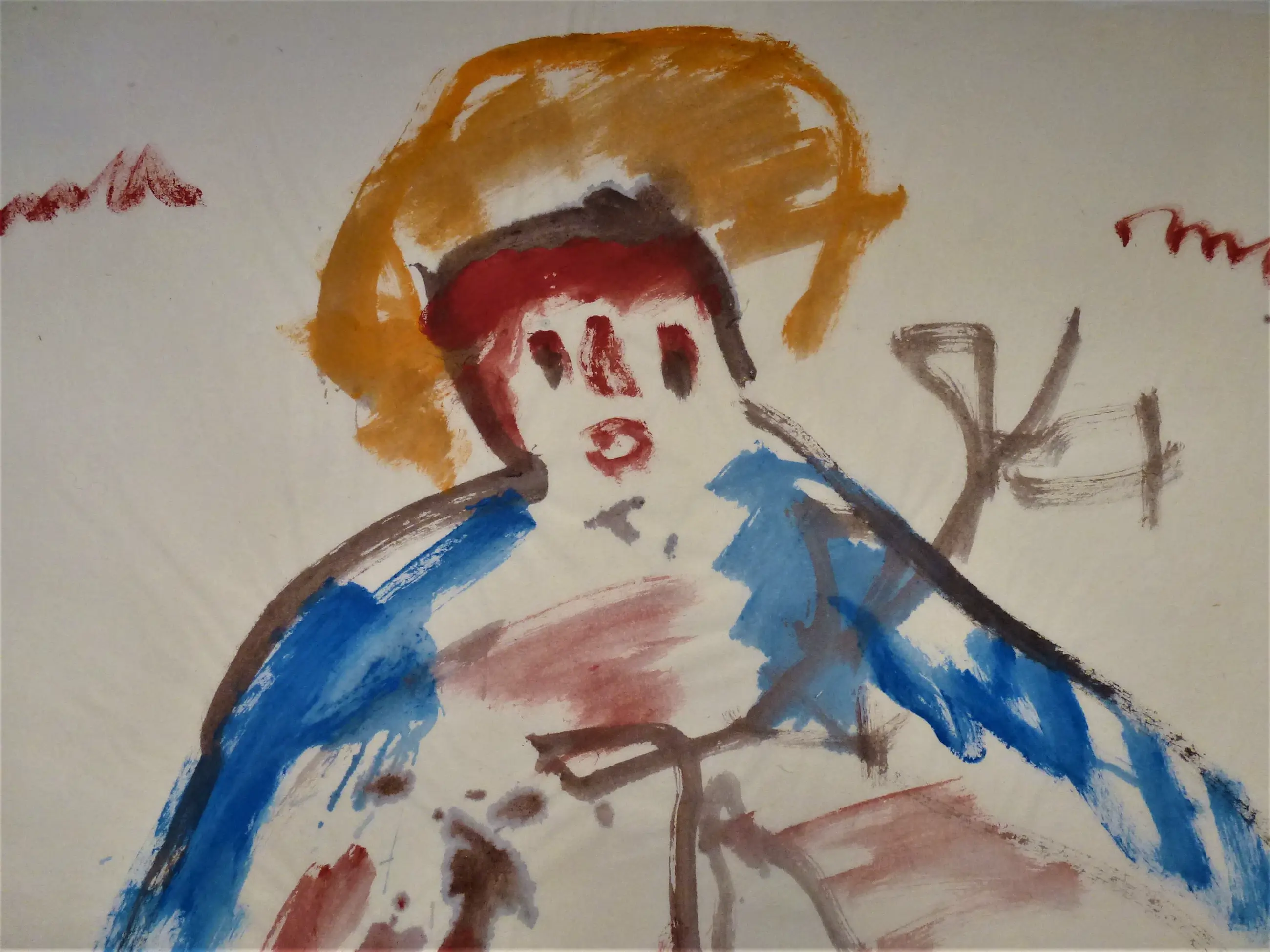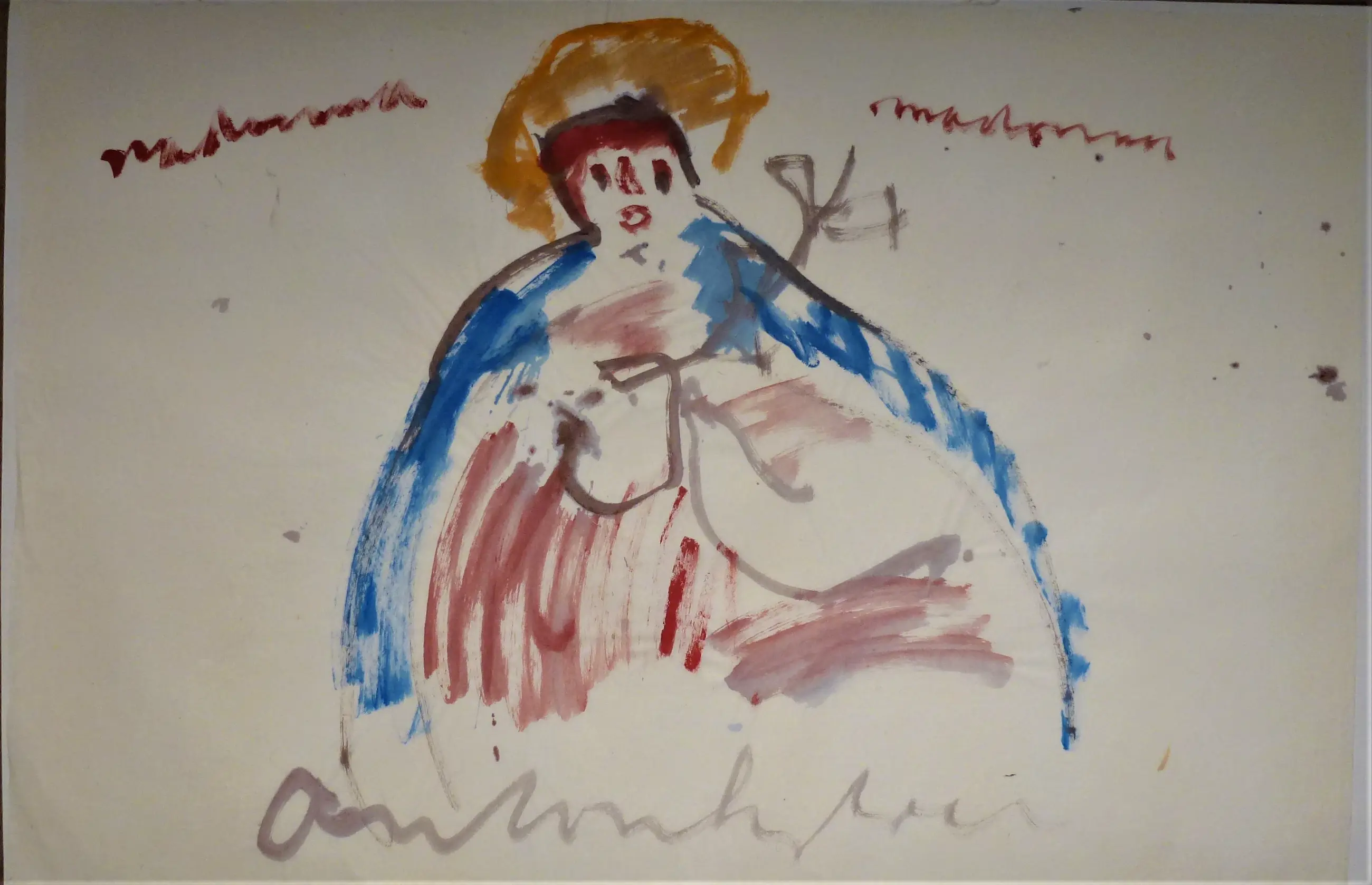 Geschilderd door Anton Heyboer in 1988 met acrylverf op Japans rijstpapier . Afmetingen : 64 cm x 97 cm . Voorstelling : De Madonna Conditie : Zo goed als nieuw . Herkomst : Gekocht in 1988 van Anton Heyboer