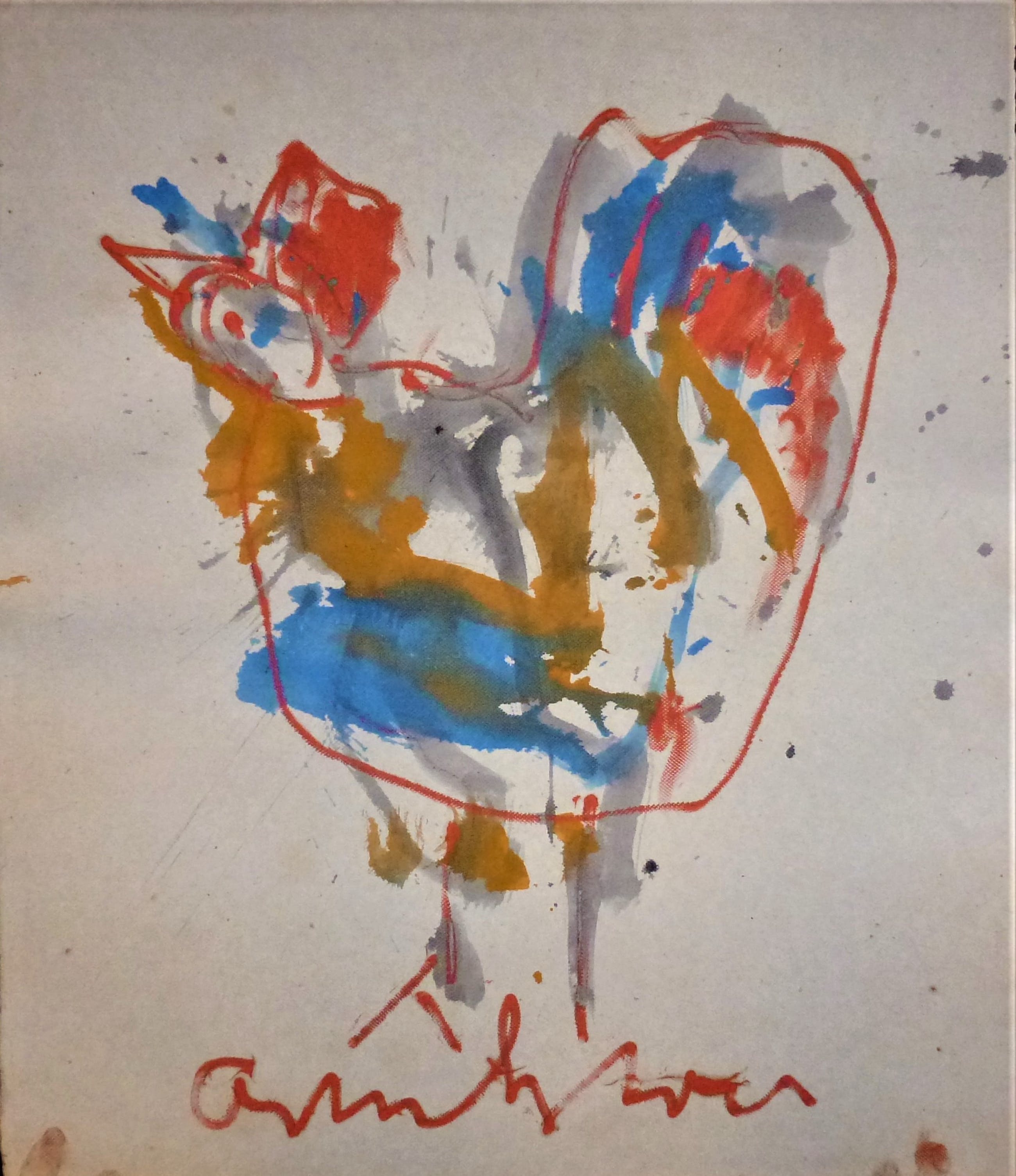 Geschilderd door Anton Heyboer in 1988 met acrylverf en olieverf op handgeschept papier . Papier gemaakt door papiermolen de Schoolmeester te Westzaan van lompen . Afmetingen ; 73 cm x 62 ,5 cm . Voorstelling : De oervogel . Conditie : Zo goed als nieuw . Herkomst : Gekocht in 1988 van Anton Heyboer . Wordt aangetekend verzonden.
