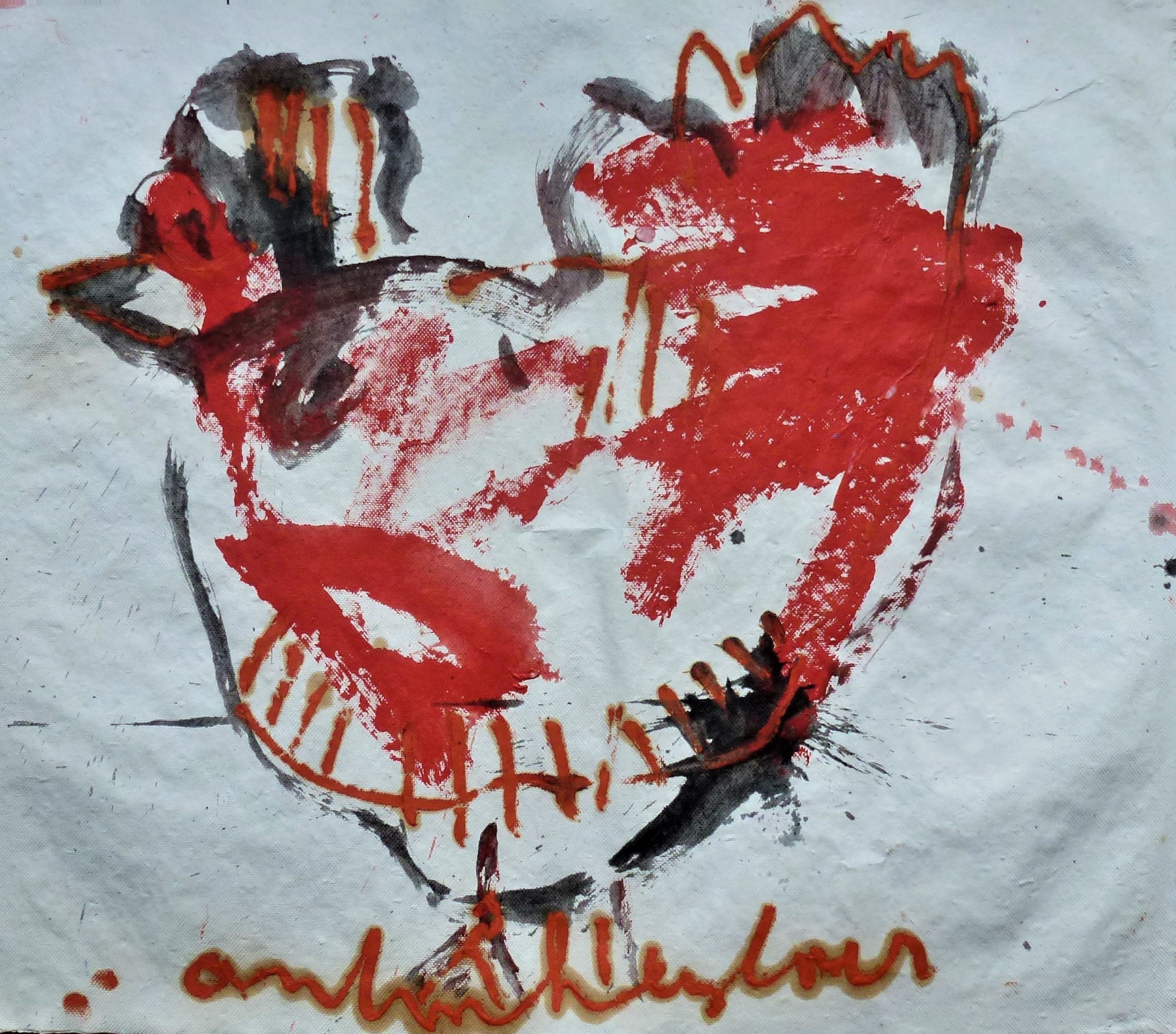 Geschilderd door Anton Heyboer in 1988 met olieverf acrylverf en oostindische inkt op hand geschept papier . Papier gemaakt door papiermolen de Schoolmeester te Westzaan van lompen . Afmetingen : 61 cm x 70 cm . Voorstelling : De oervogel . Conditie : Zo goed als nieuw . Herkomst : Gekocht in 1988 van Anton Heyboer . Wordt aangetekend verzonden .