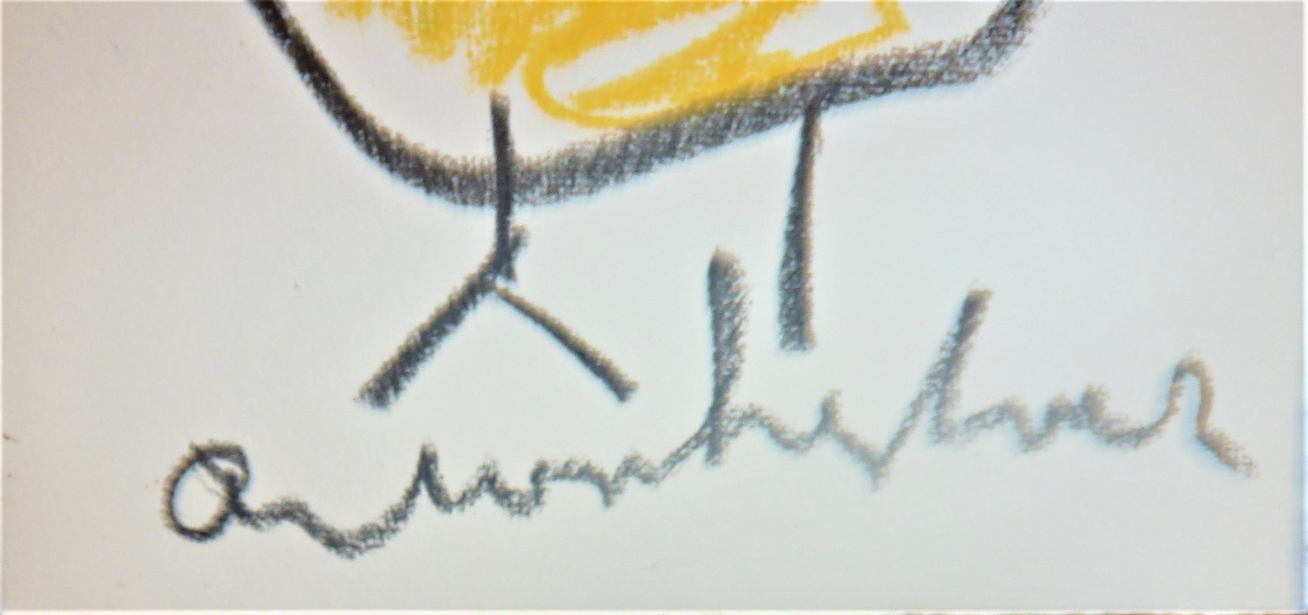 Getekend door Anton Heyboer in 1992 met wasco . Afmetingen 27 cm x 19,5 cm . Voorstelling : De oer vogel . Conditie : Zo goed als nieuw . Herkomst : Gekocht in 1992 van Anton Heyboer .