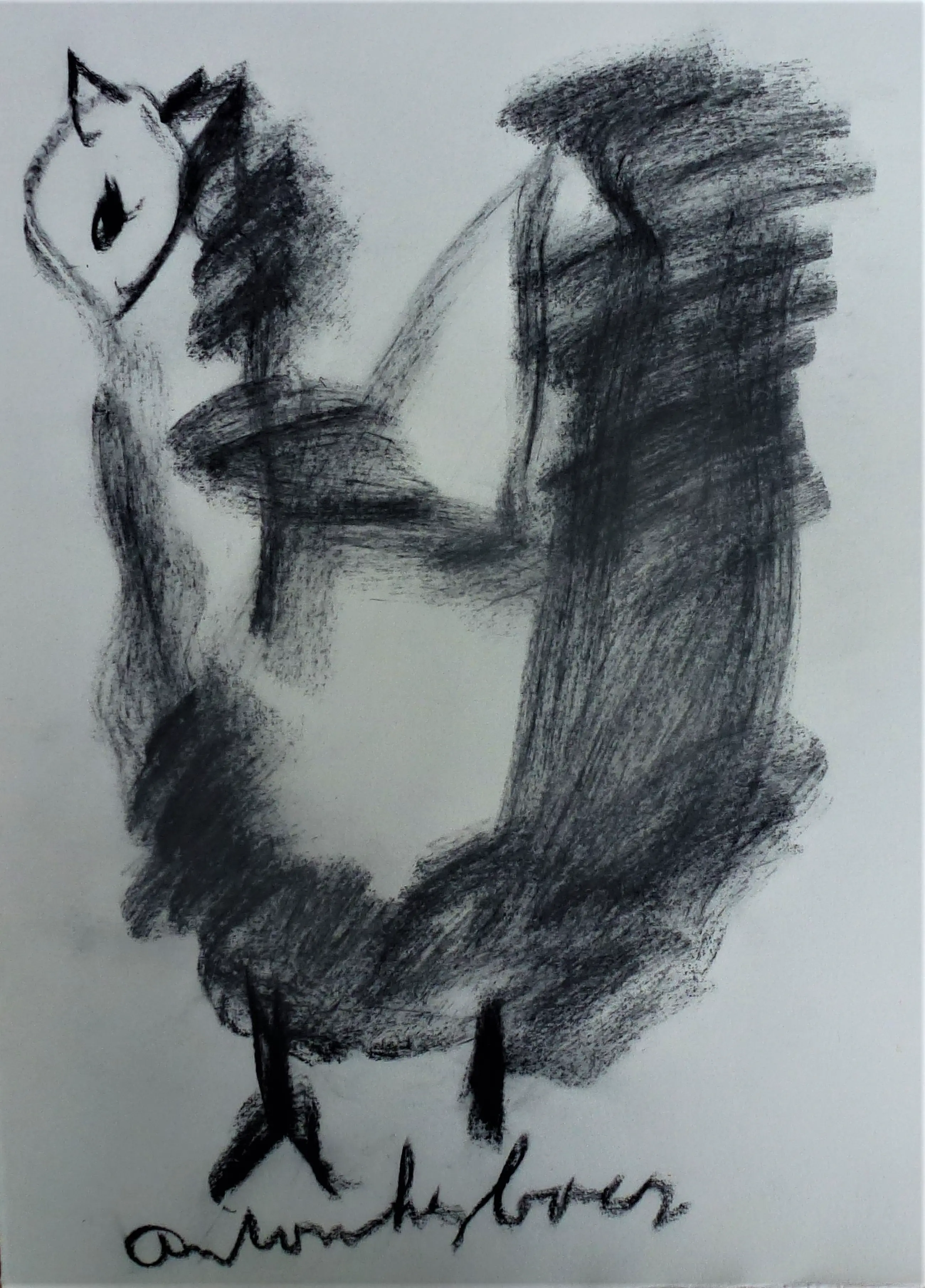 Getekend door Anton Heyboer in 1988 met houtskool op Hahnemühle papier . Afmetingen : 53,5 cm x 39,5 cm . Voorstelling : De oer vogel Conditie : Zo goed als nieuw . Herkomst : Gekocht in 1988 van Anton Heyboer .