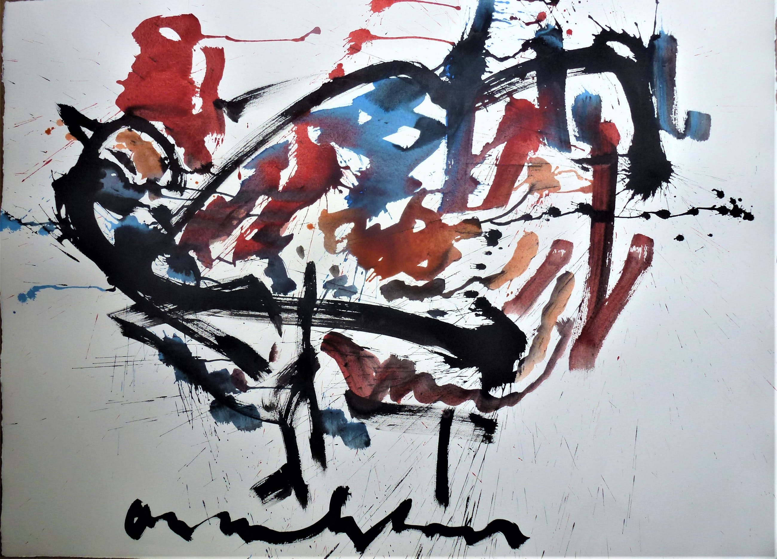 Geschilderd door Anton Heyboer in 1988 met acrylverf en oostindische inkt op Hahnemühle papier . Afmetingen : 78 cm x 108 cm . Voorstelling : De oervogel .Mooie krachtige schildering . Conditie : Zo goed als nieuw . Herkomst : Gekocht in 1988 van Anton Heyboer .