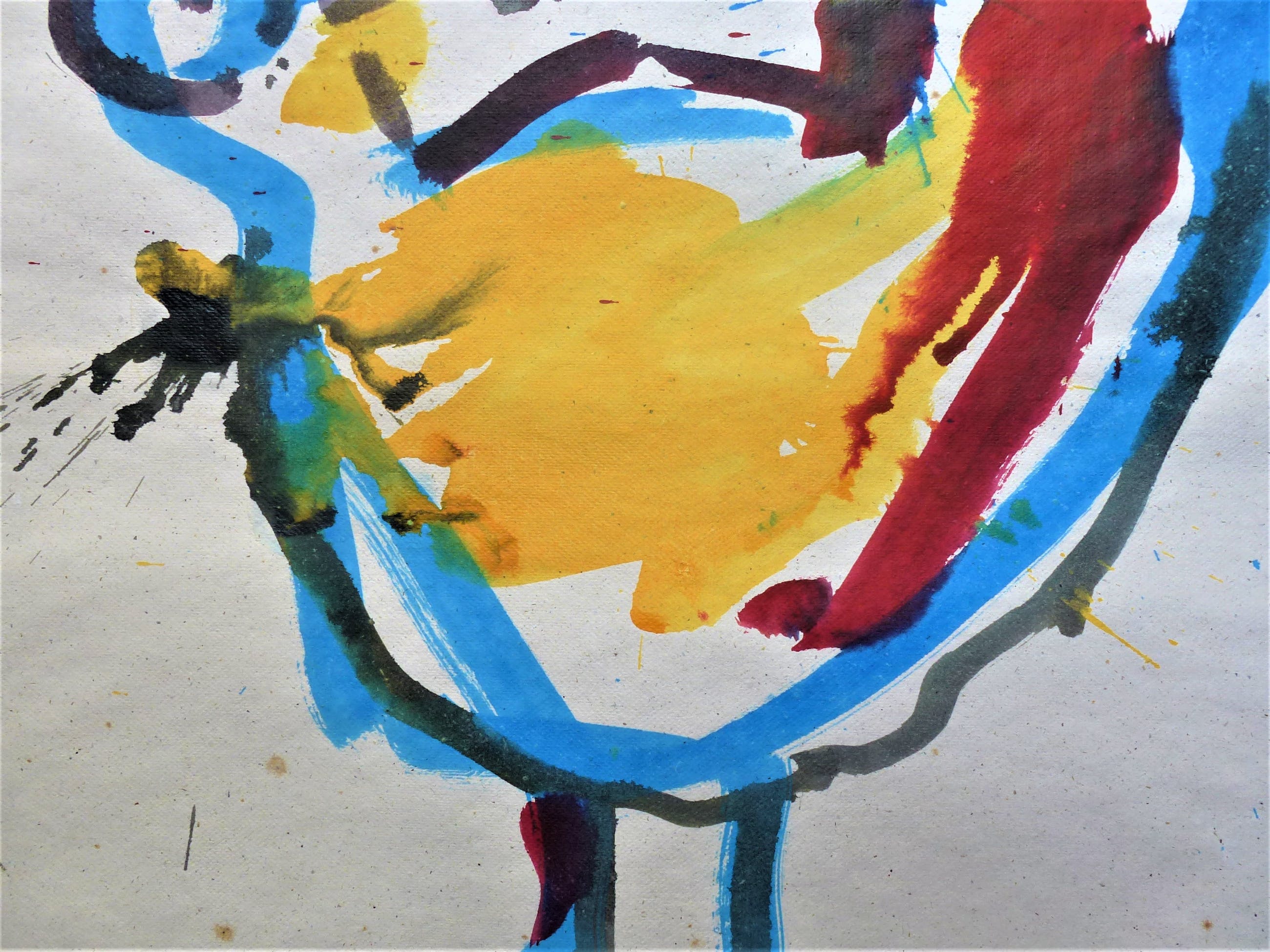 Geschilderd door Anton Heyboer in 1988 met acrylverf en oostindische inkt op hand geschept papier . Papier gemaakt door papiermolen de Schoolmeester te Westzaan van lompen . Afmetingen : 68 cm x 60 cm . Voorstelling ; De oervogel. Mooie krachtige kleurige schildering van de oervogel . Conditie : Zo goed als nieuw . Herkomst : Gekocht in 1988 van Anton Heyboer . Wordt aangetekend verzonden .
