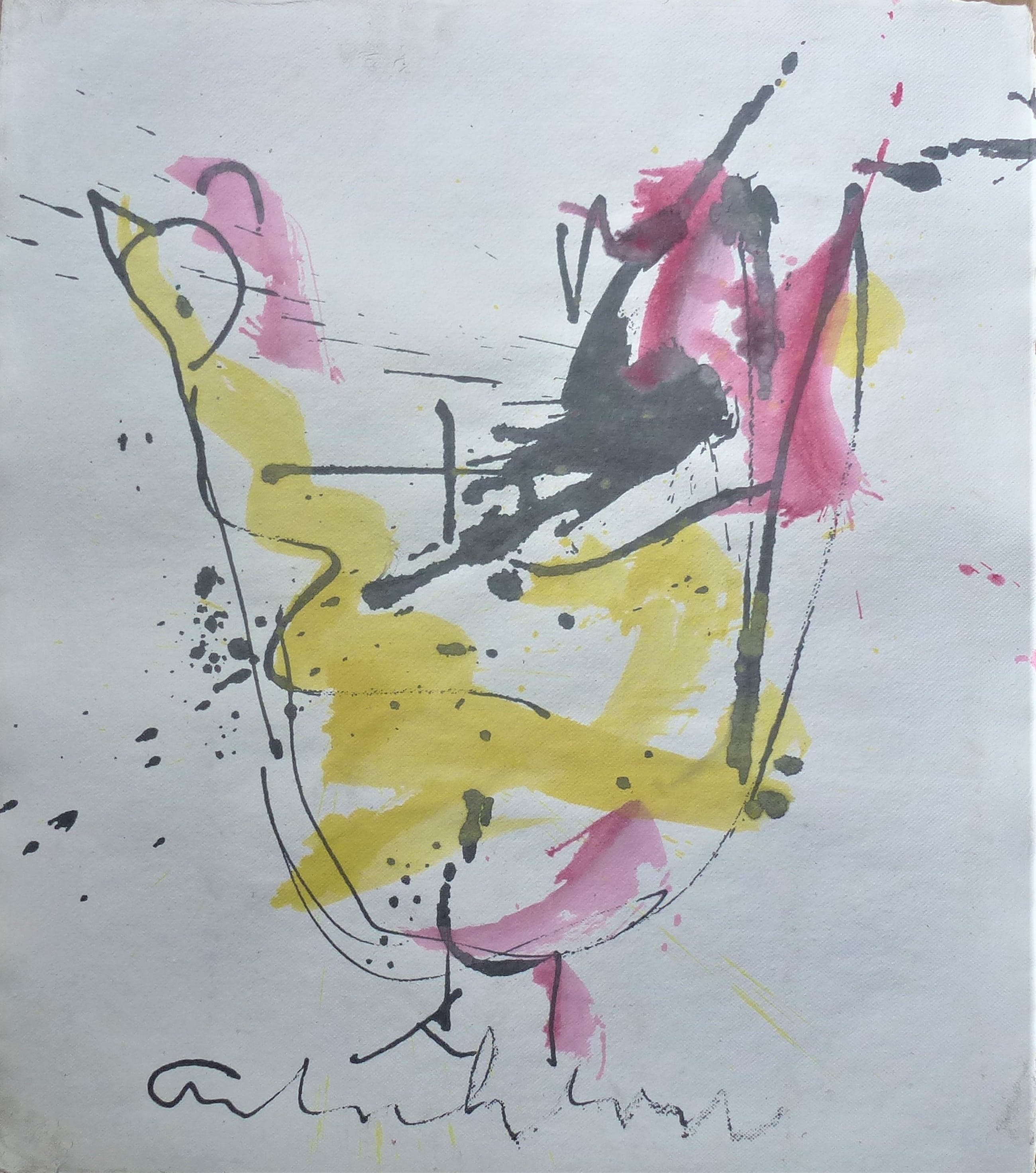 Geschilderd door Anton Heyboer in 1988 met acrylverf en oostindische inkt op hand geschept papier . Papier gemaakt door papiermolen de Schoolmeester te Westzaan van lompen . Afmetingen : 69,5 cm x 60,5 cm . Voorstelling ; De oervogel. Mooie sierlijke kleurige schildering van de oervogel . Conditie : Zo goed als nieuw . Herkomst : Gekocht in 1988 van Anton Heyboer . Wordt aangetekend verzonden .