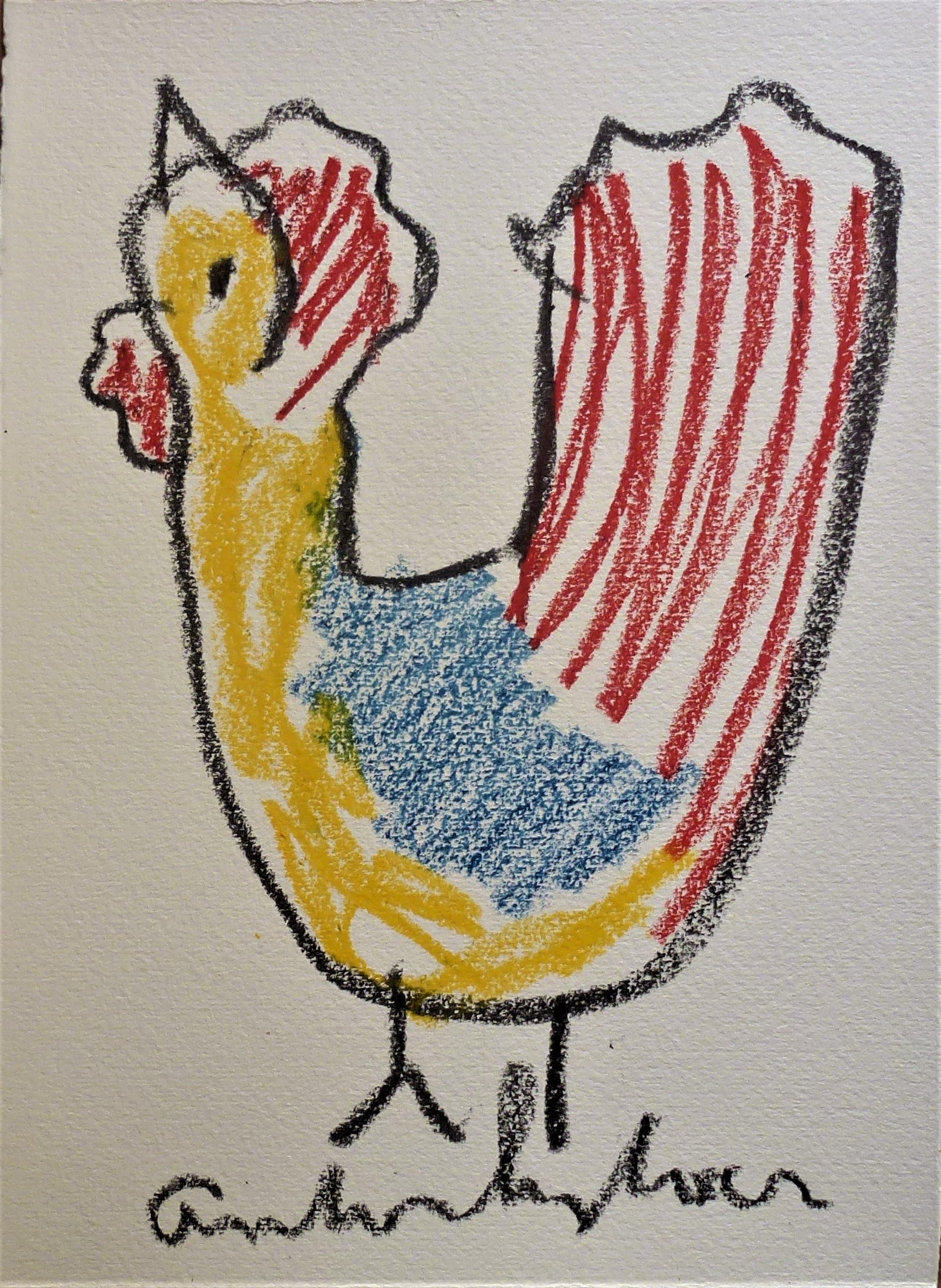 Getekend door Anton Heyboer in 1992 met Wasco . Afmetingen : 27 cm x 19,5 cm . Voorstelling : De oervogel . Conditie : Als nieuw . Herkomst : Gekocht in 1992 van Anton Heyboer .