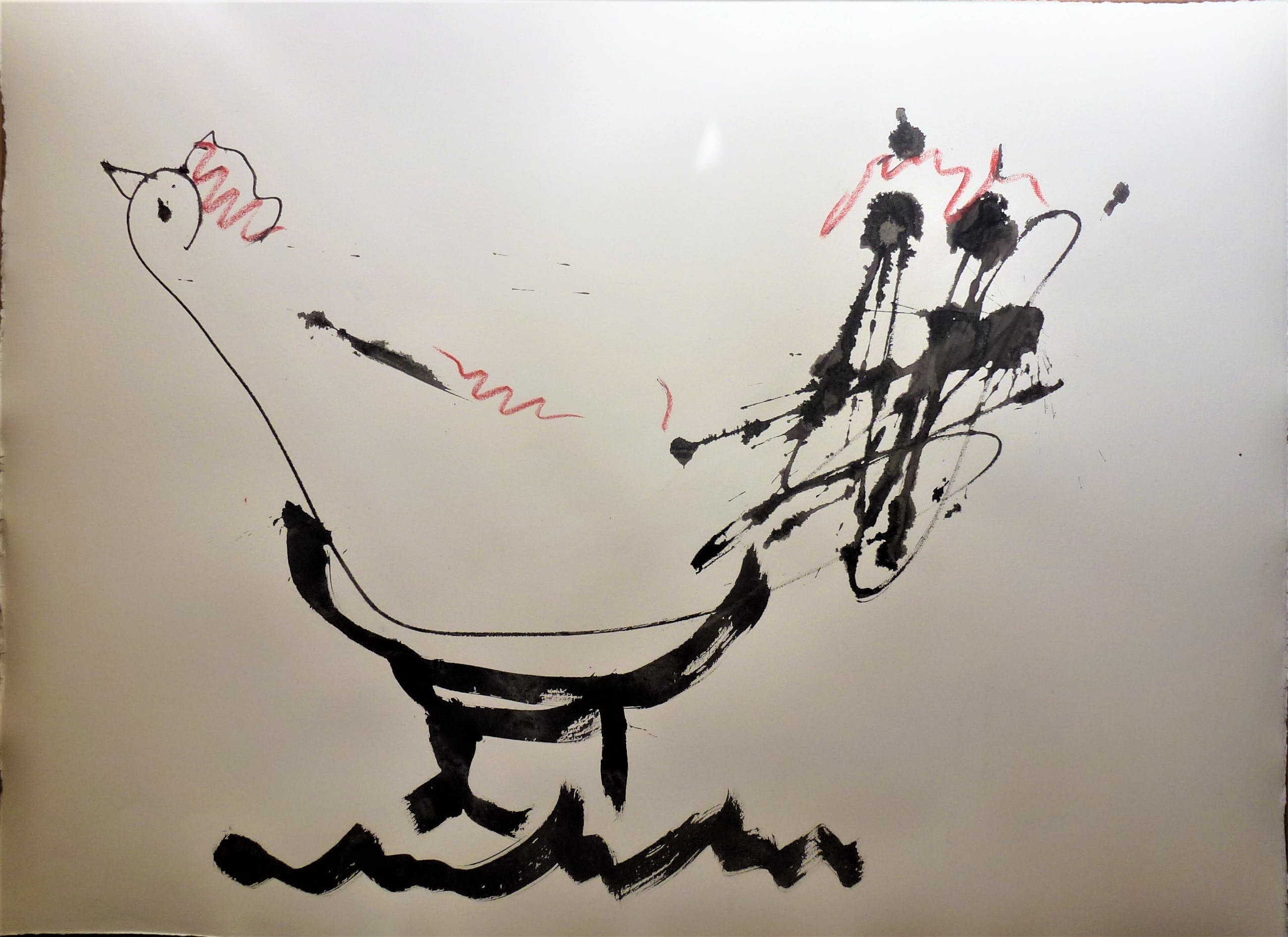 Geschilderd door Anton Heyboer in 1989 met oostindische inkt en getekend met wasco op Hahnemühle papier . Afmetingen : 78 cm x 108 cm . Voorstelling : De oervogel . Conditie : Zo goed als nieuw . Herkomst : Gekocht in 1989 van Anton Heyboer . Wordt aangetekend verzonden .