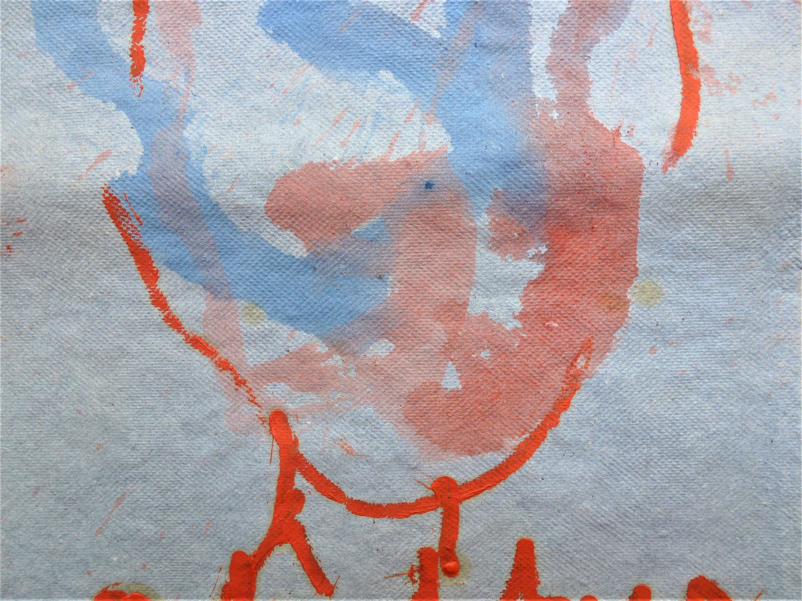 Geschilderd door Anton Heyboer in 1988 met olieverf en acrylverf op handgeschept papier . Papier gemaakt door papiermolen de Schoolmeester te Westzaan van spijkerbroeken stof. Afmetingen : 37,5 cm x 29,5 cm . Voorstelling : De oer vogel . Conditie : Zo goed als nieuw . Herkomst : Gekocht in 1988 van Anton Heyboer . Wordt aangetekend verzonden .