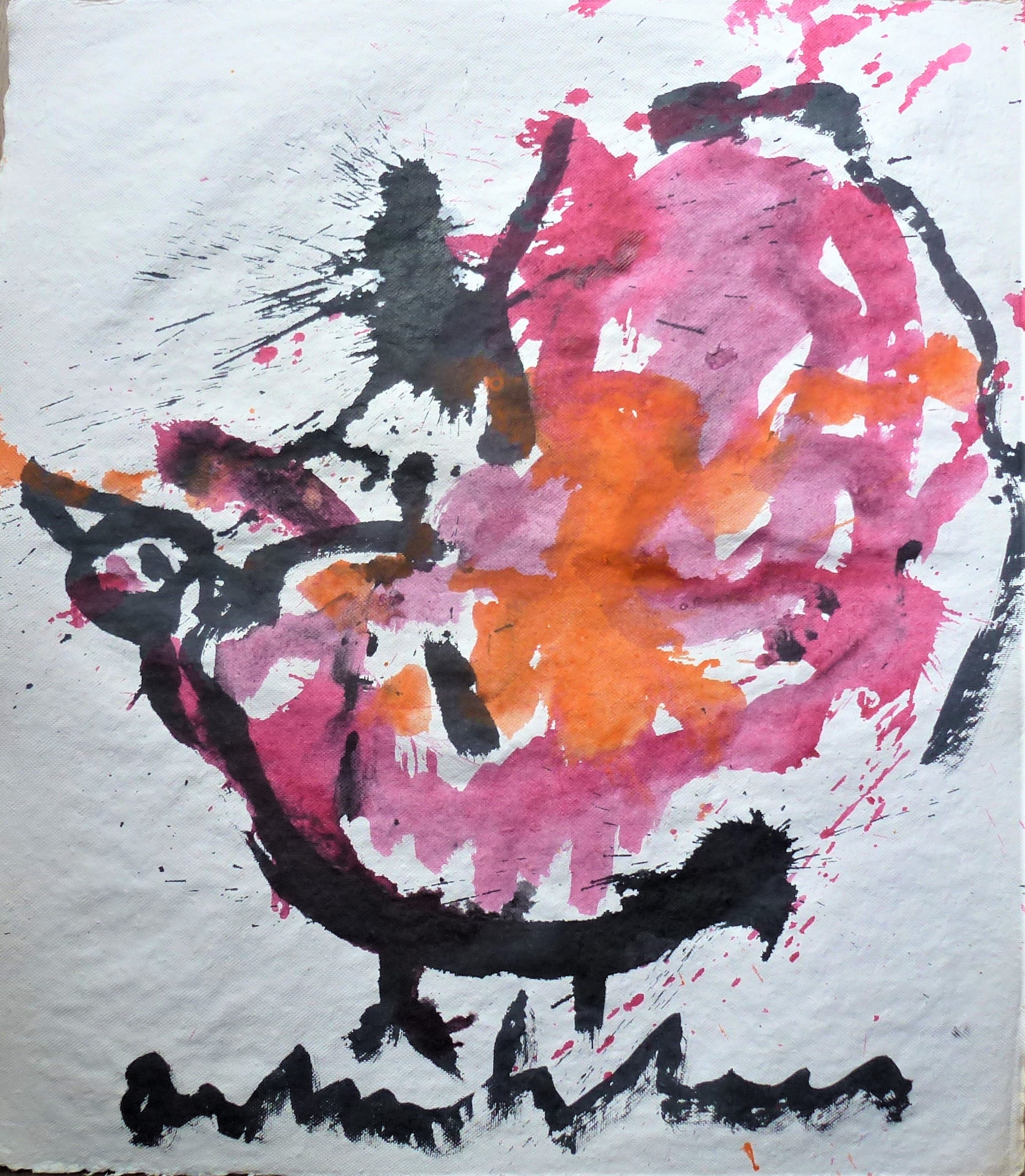 Geschilderd door Anton Heyboer in 1988 met Acrylverf en oostindische inkt op handgeschept papier. Papier gemaakt door papiermolen de Schoolmeester te Westzaan van lompen . Afmetingen : 68,5 cm x 62 cm . Voorstelling : De oervogel . Conditie : Zo goed als nieuw . Herkomst : Gekocht in 1988 van Anton Heyboer . Wordt aangetekend verzonden .