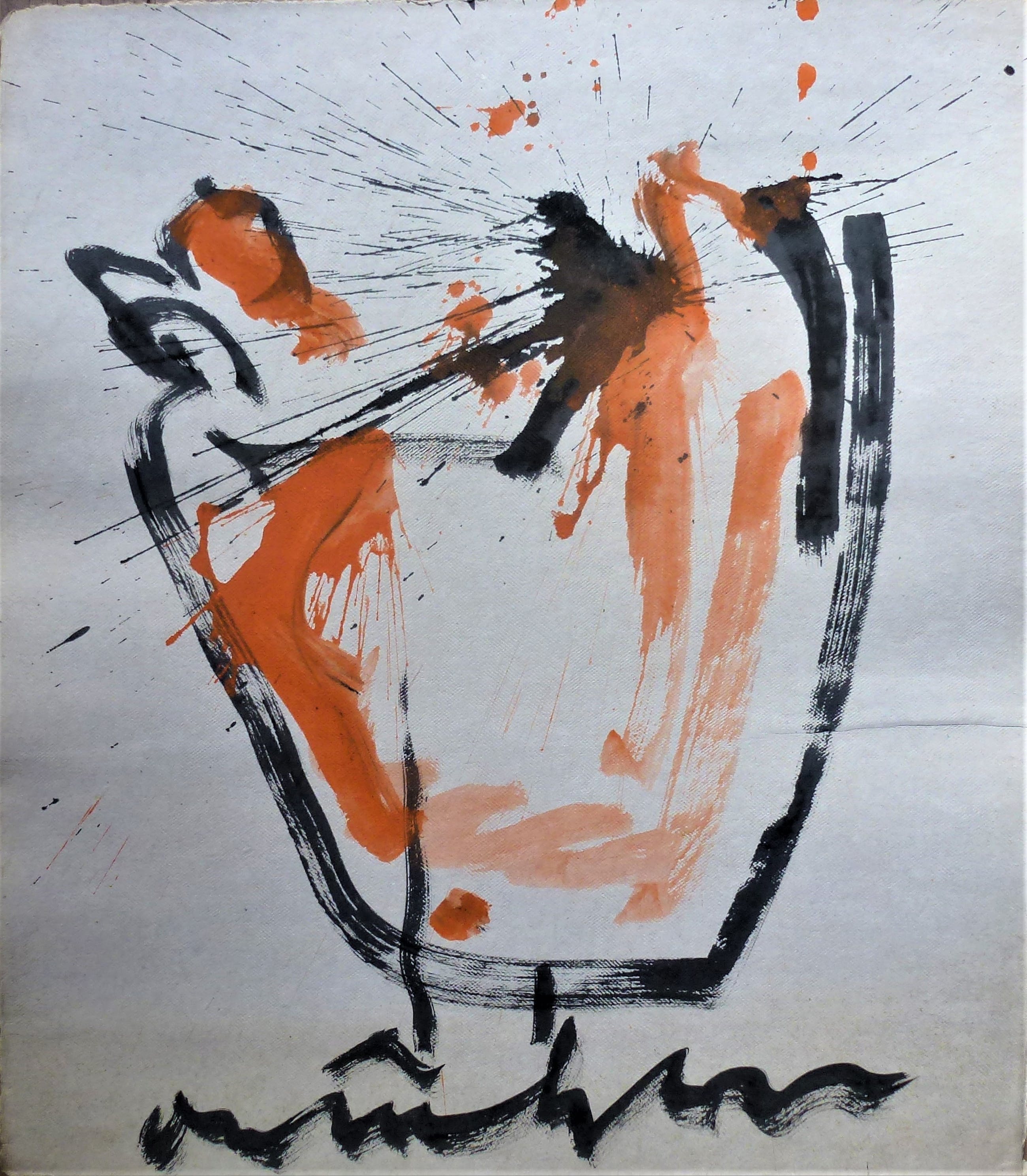 Geschilderd door Anton Heyboer in 1988 met acrylverf en oostindische inkt op hand geschept papier , Papier gemaakt door papier molen de Schoolmeester te Westzaan van lompen . Afmetingen : 72 cm x 62 cm . Voorstelling : De oervogel . Conditie : Als nieuw . Herkomst : Gekocht in 1988 van Anton Heyboer . Wordt aangetekend verzonden .