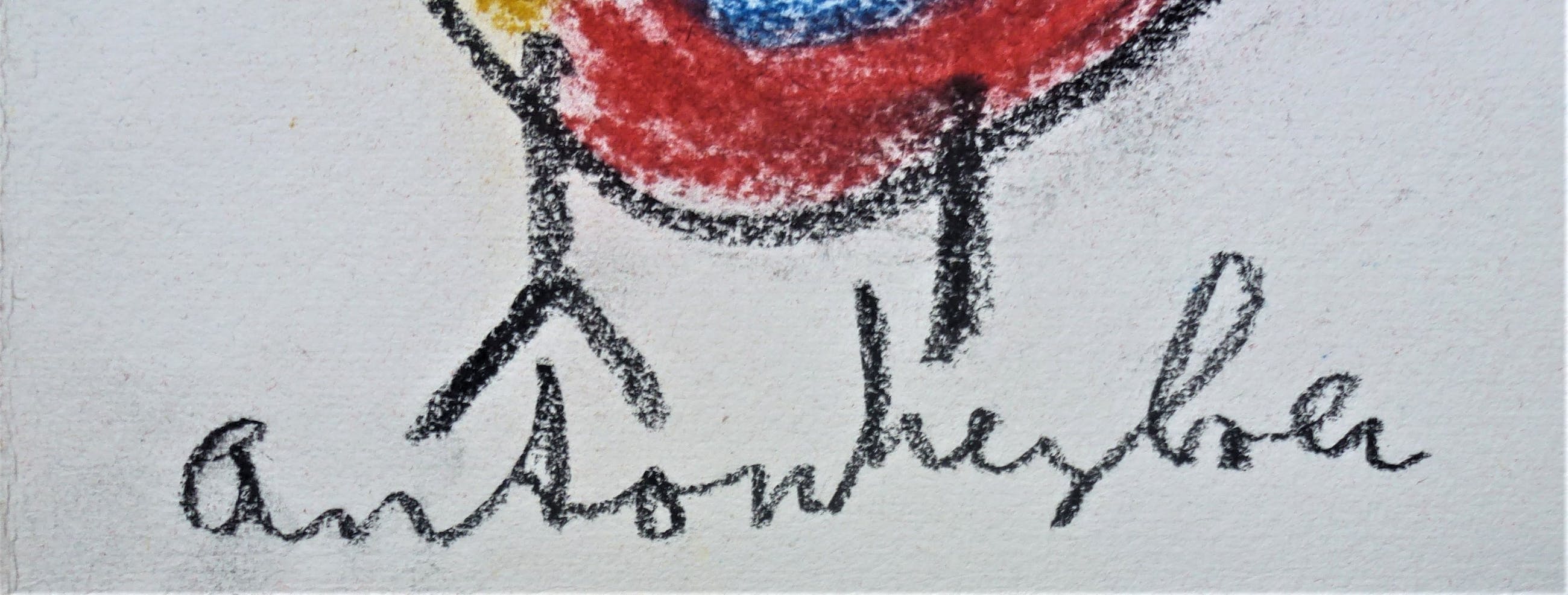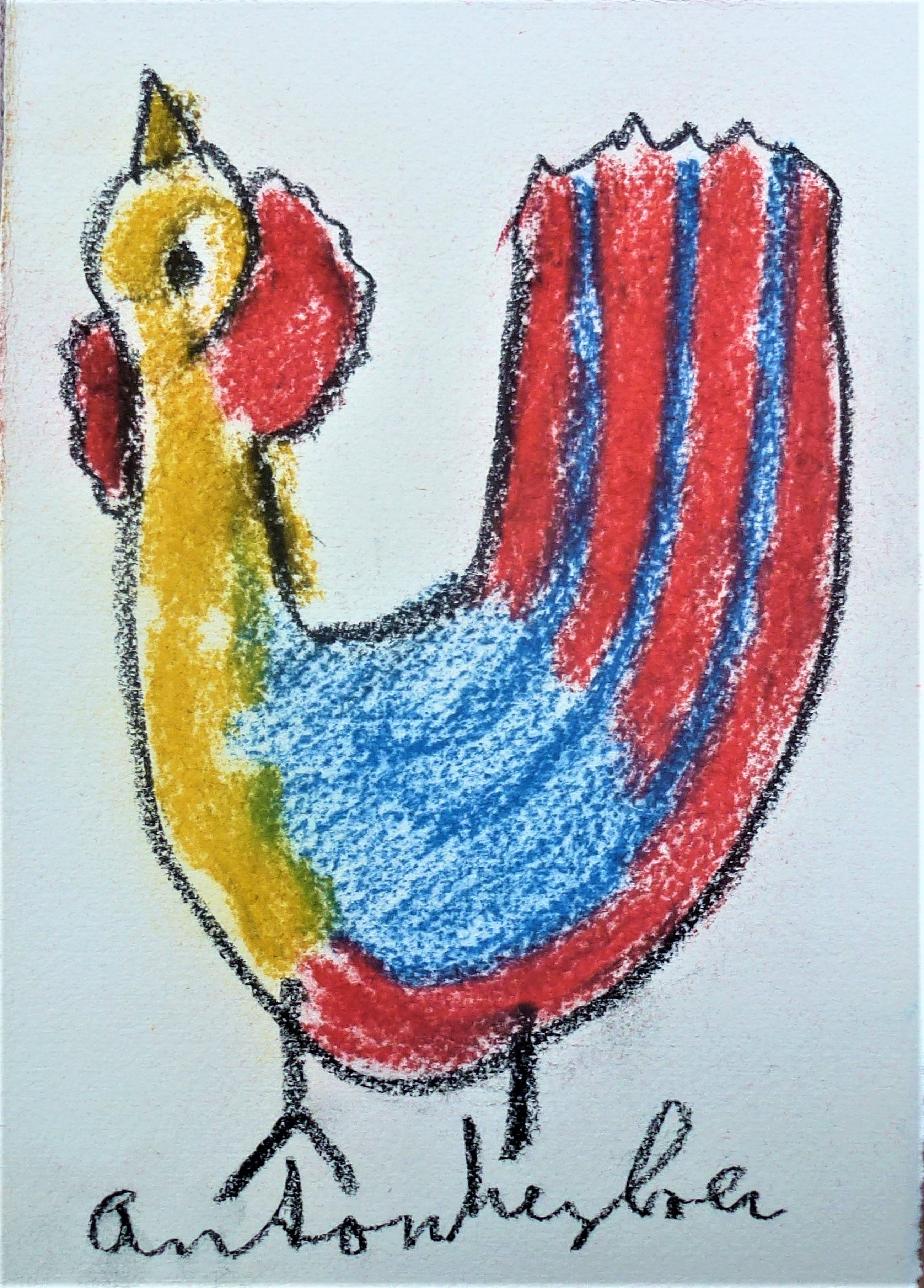 Getekend door Anton Heyboer in 1988 met pastel . Afmetingen 27 cm x 19,5 cm . Voorstelling : De oervogel . Conditie : Zo goed als nieuw . Herkomst : Gekocht in 1988 van Anton Heyboer .