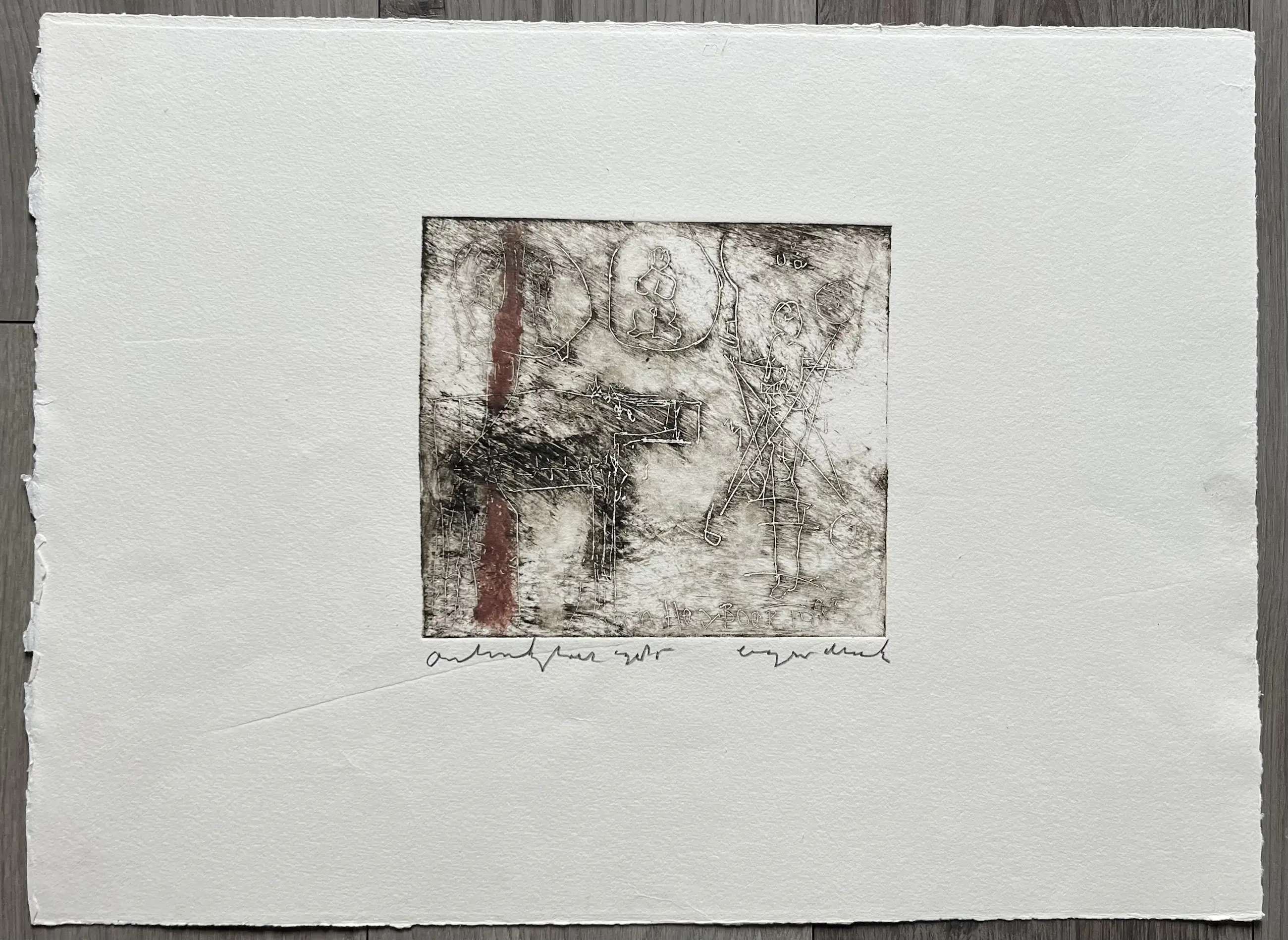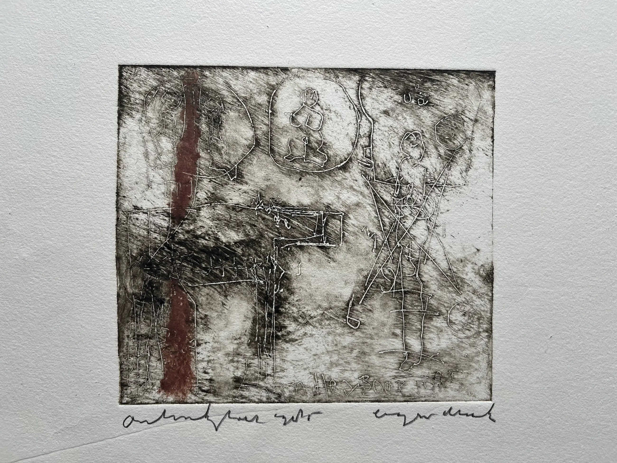 Ets van Anton heyboer uit 1985, eigen druk. Met een streep rode kleur.